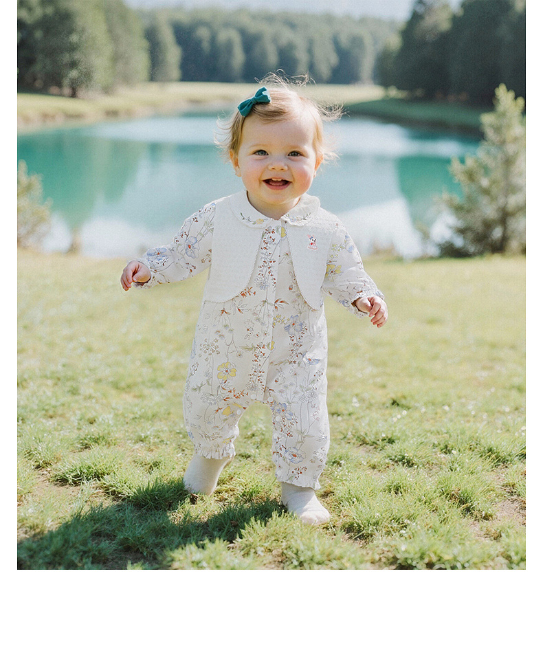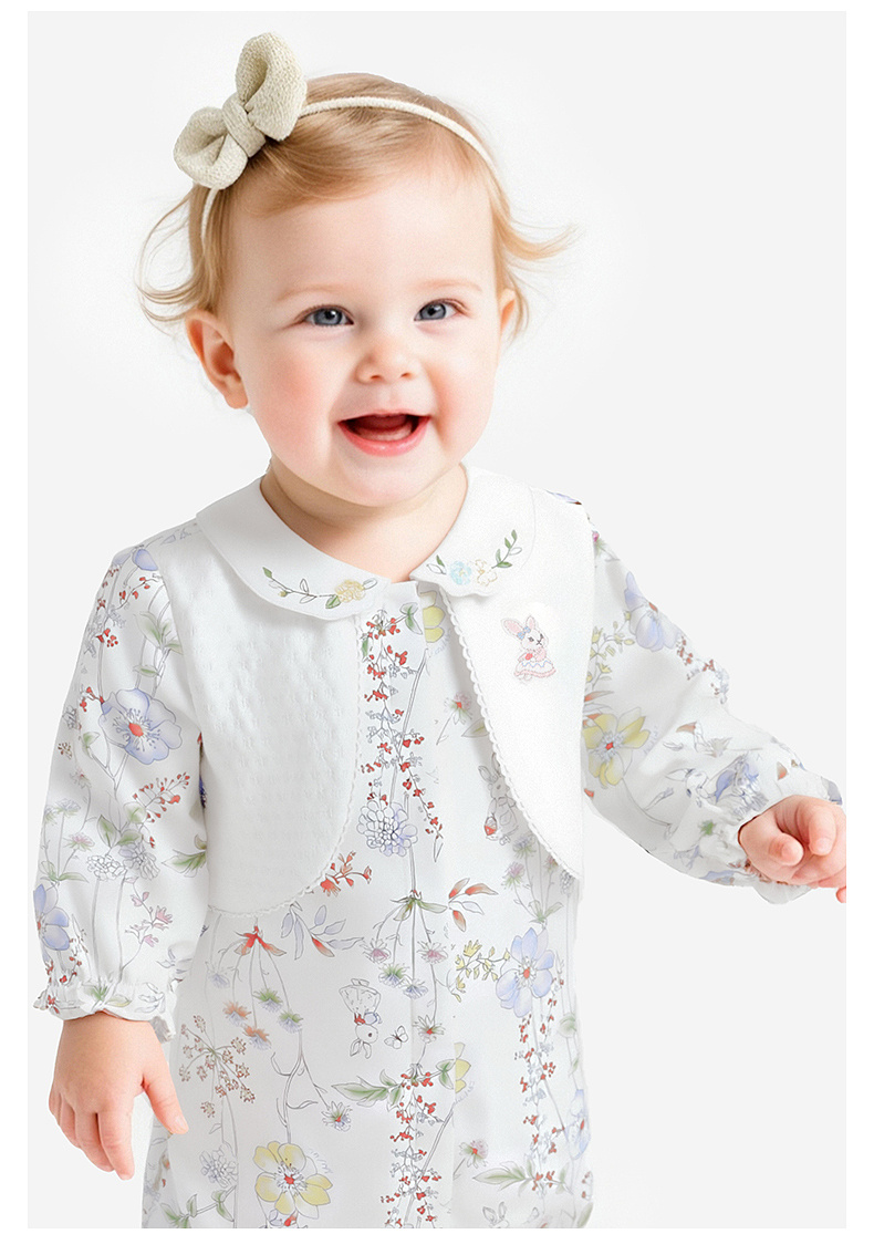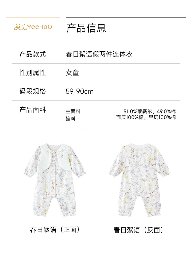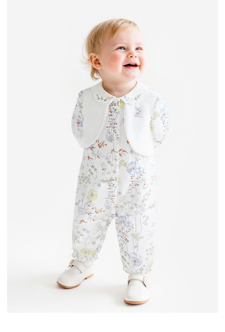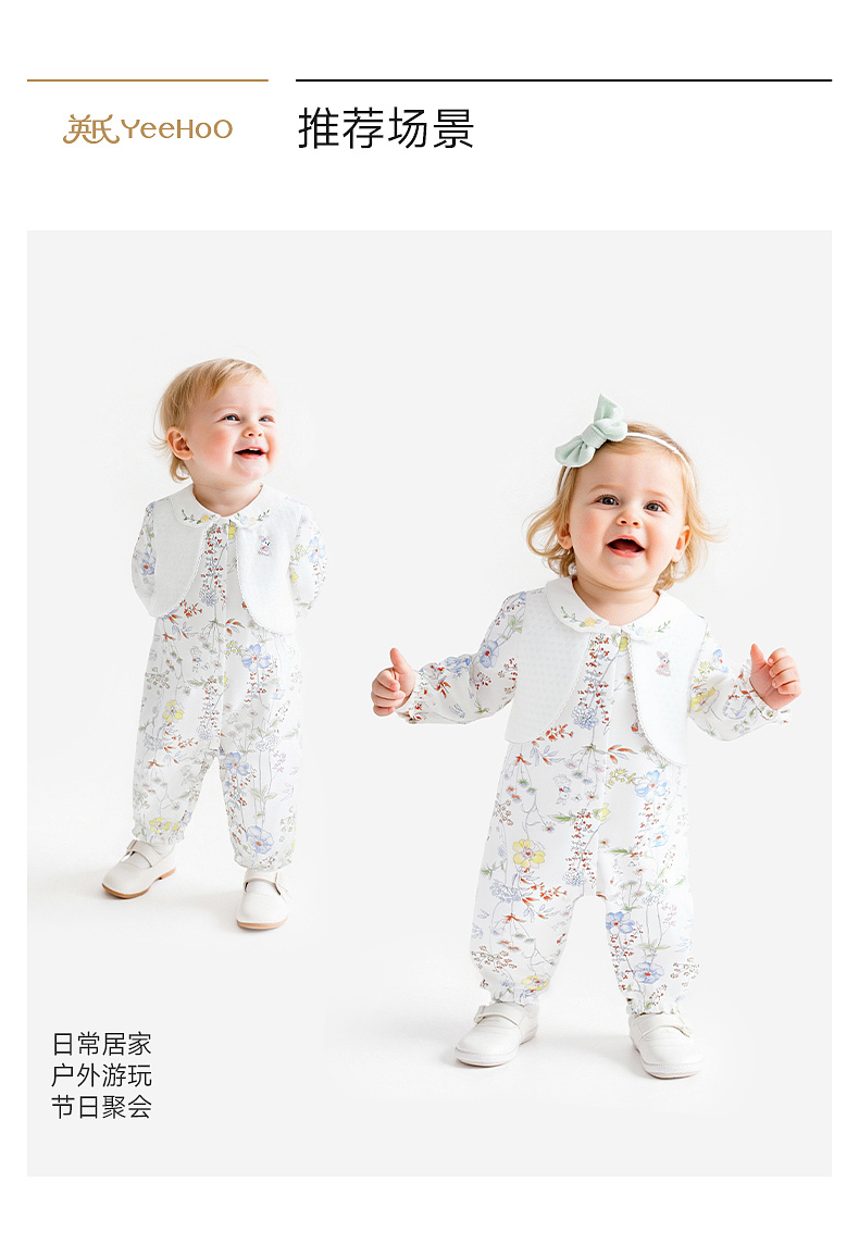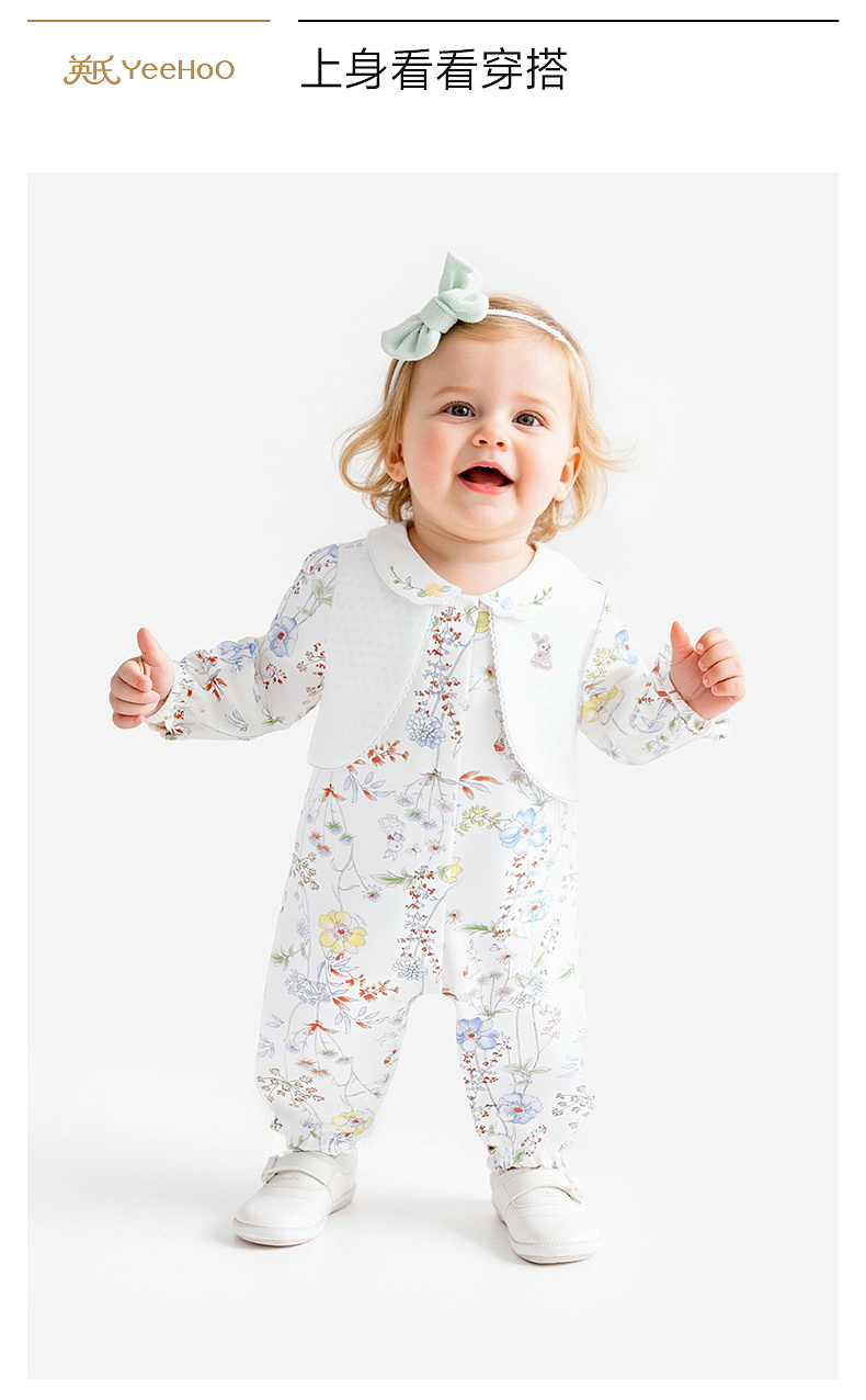 【商场同款】英氏婴儿衣服长袖女宝宝大碎花假背心假两件外出服