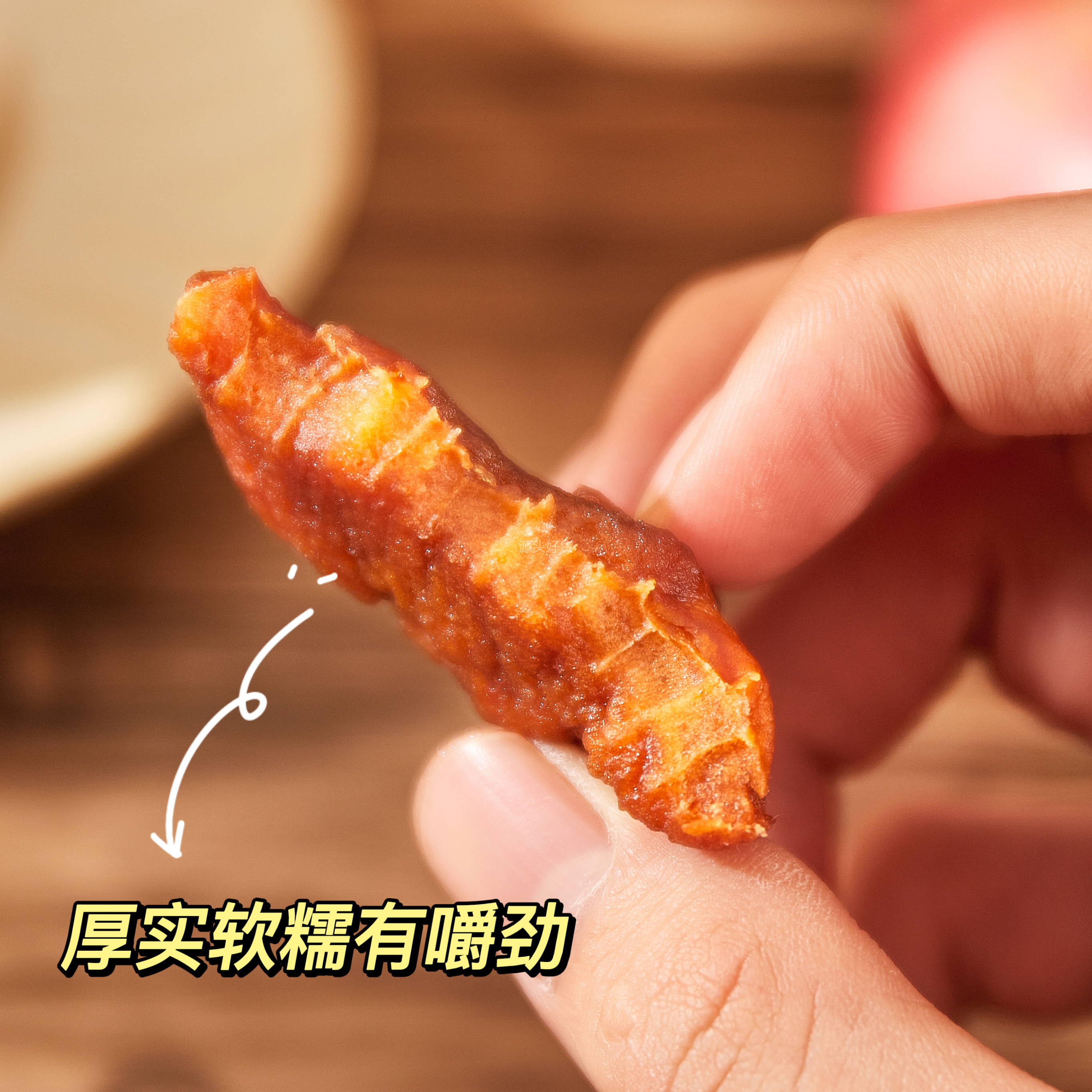软糯柔韧,双重口感,果肉厚实,酸甜软糯有嚼劲!!而且连果肉纤维都能完整看到,没有人工添加的糖分那种腻感,也不会齁嗓子,舒舒服服的~