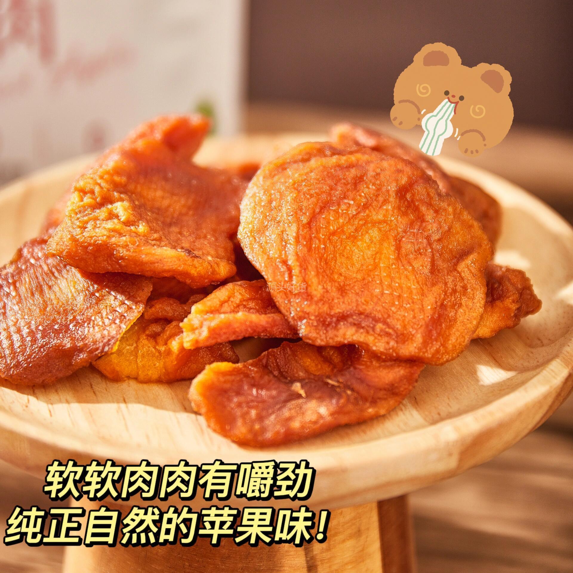 苹果干坚守严格的品控,选果优中选优,按照大小,颜色,糖度标准化分级,甜味足,无缺损,无腐烂的优质达标苹果。