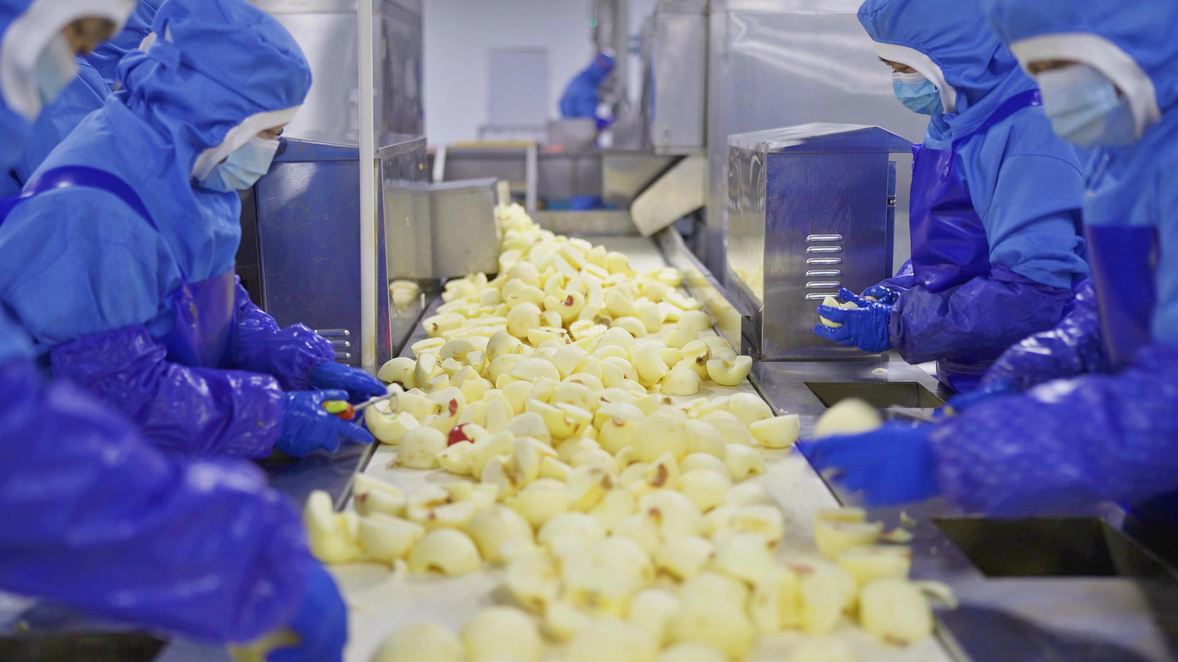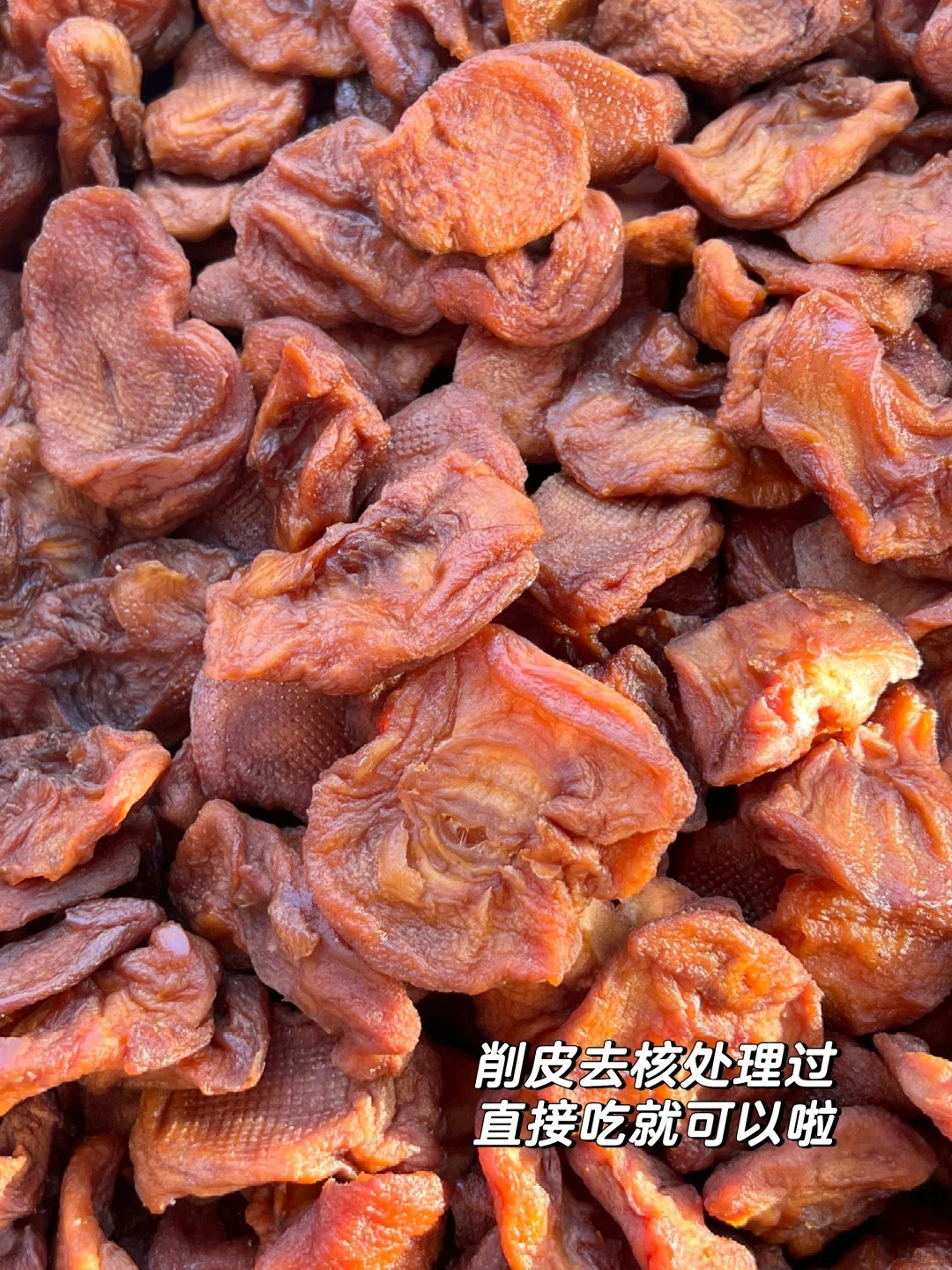 去皮,切块,去核,烘烤,蒸煮,18小时低温烘烤,果干柔韧不硬,果香更浓郁。