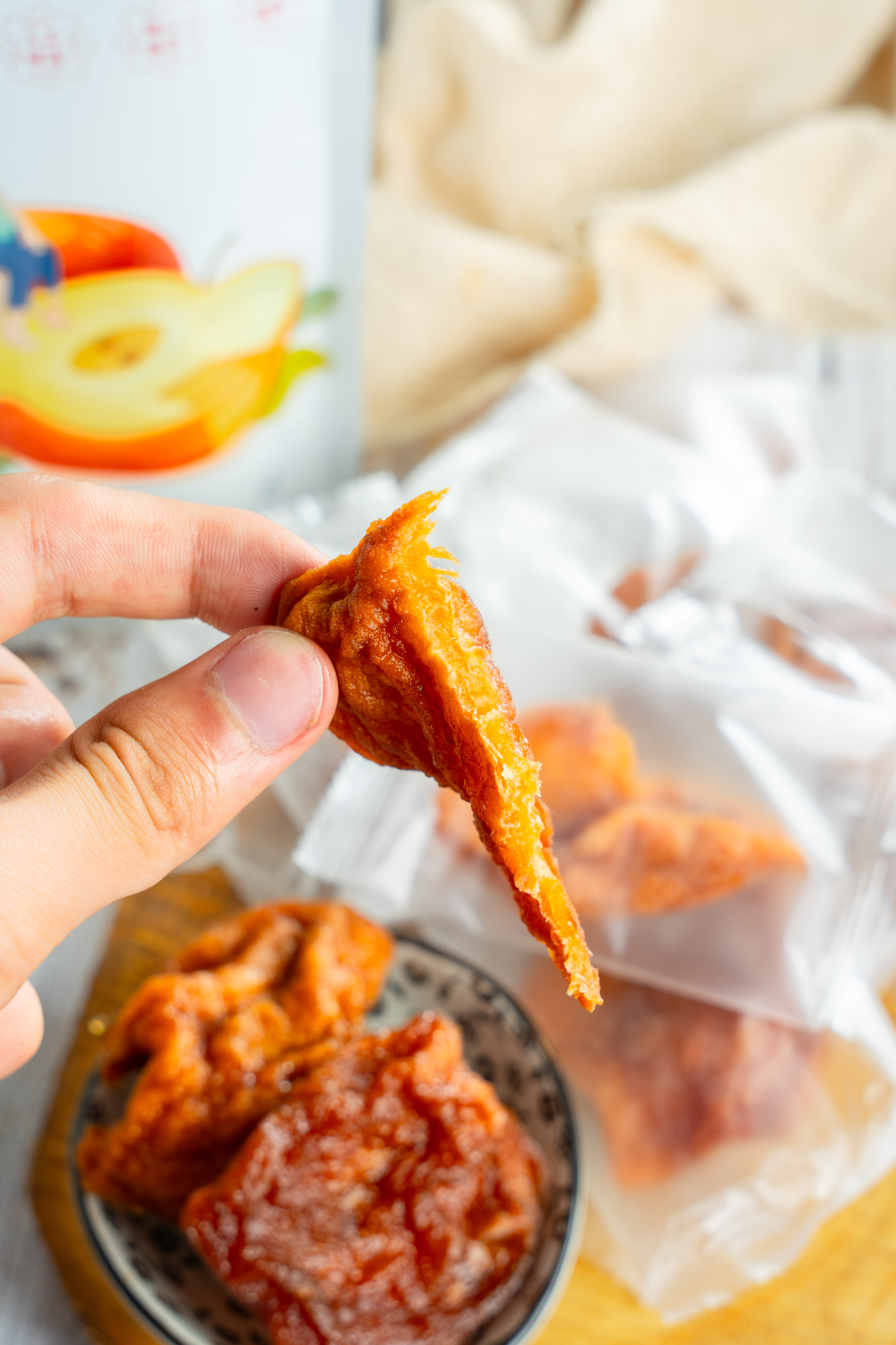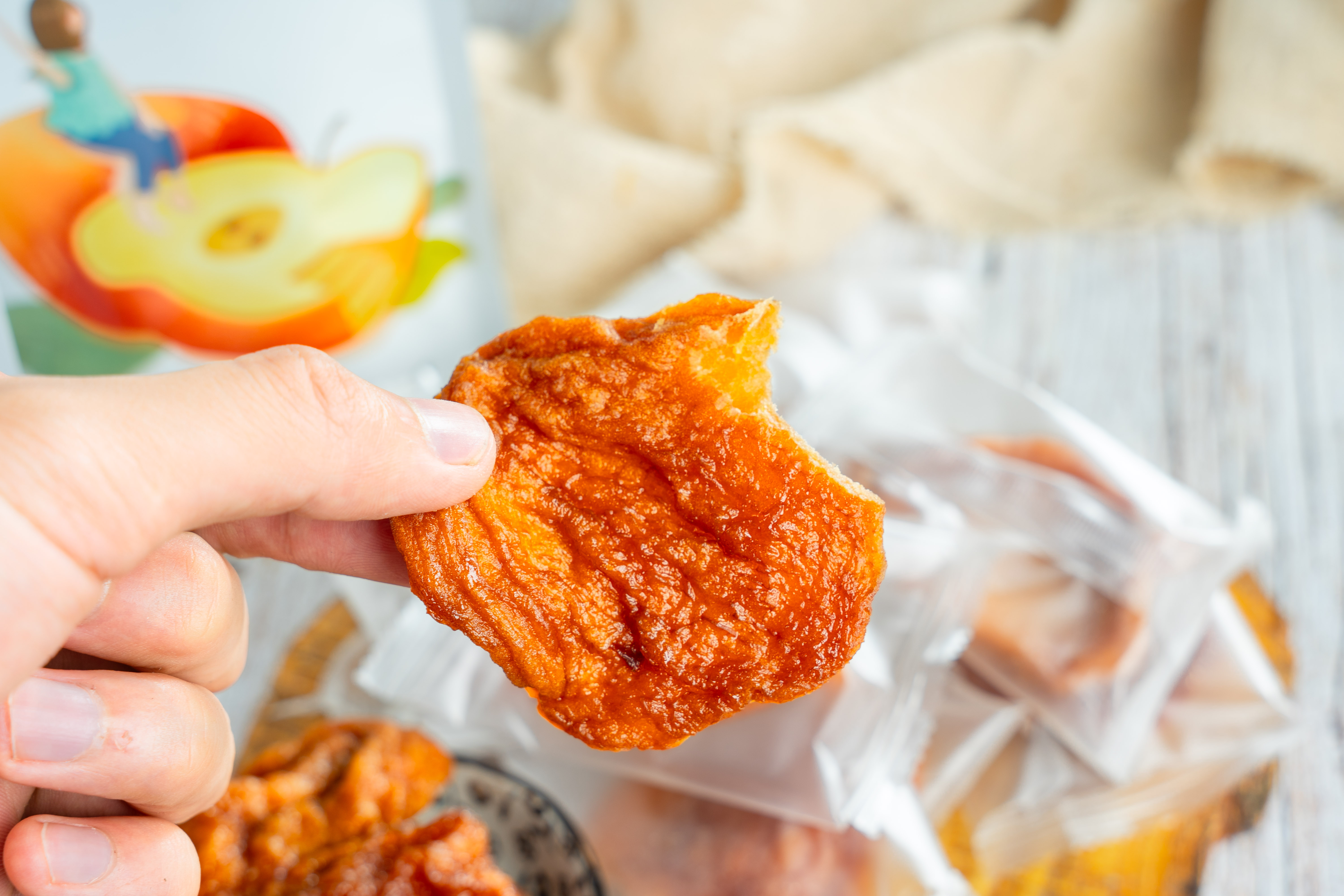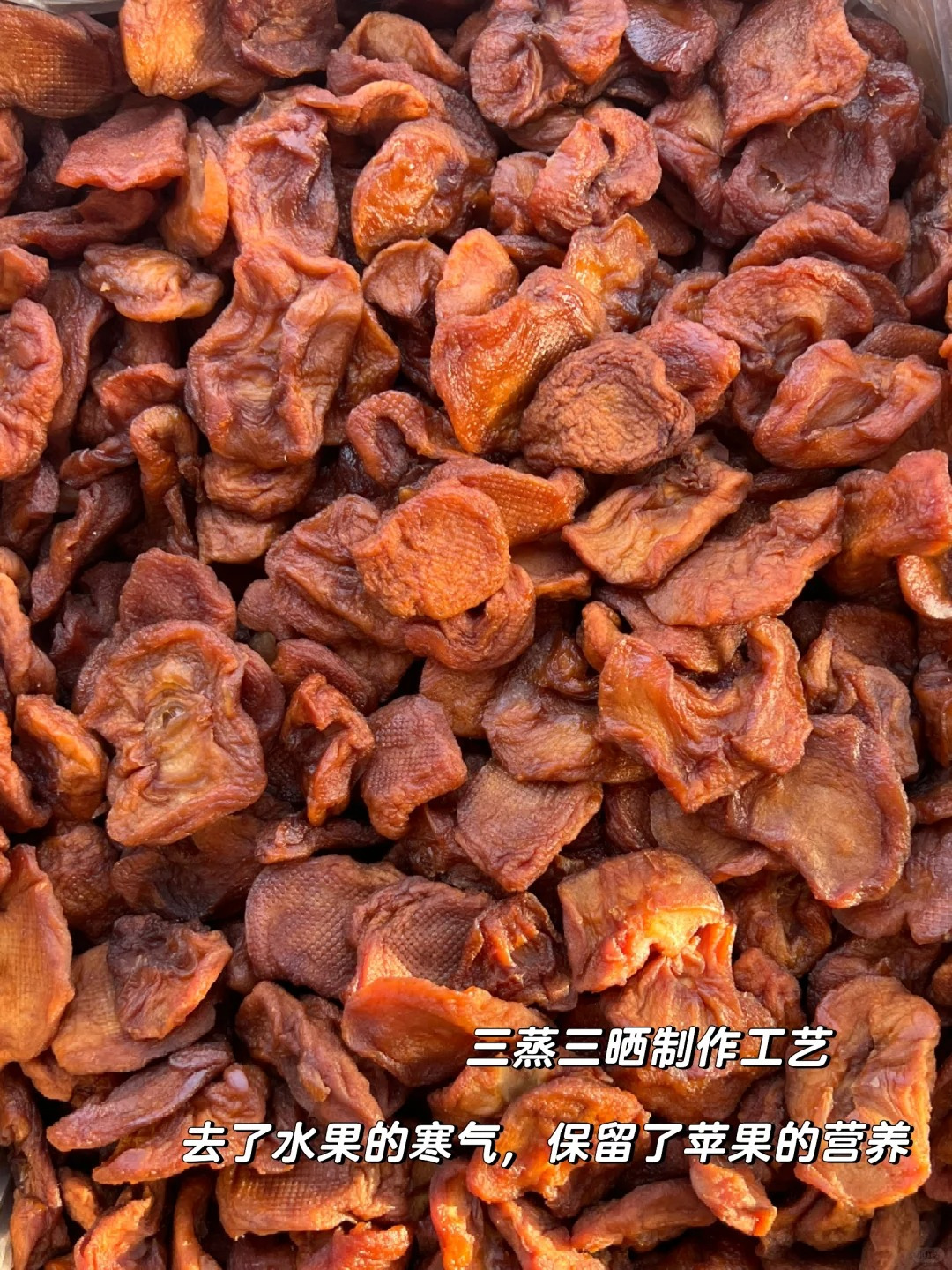由新鲜苹果制成的苹果干,自然也不是一般的甜,再加上三蒸三晒的脱水,甜味更加集中和突出。