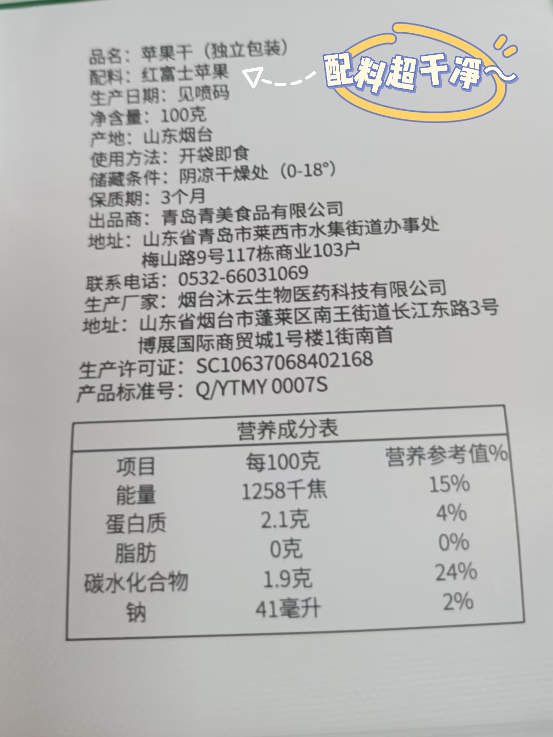 【产品亮点】配料只有苹果,没有任何添加