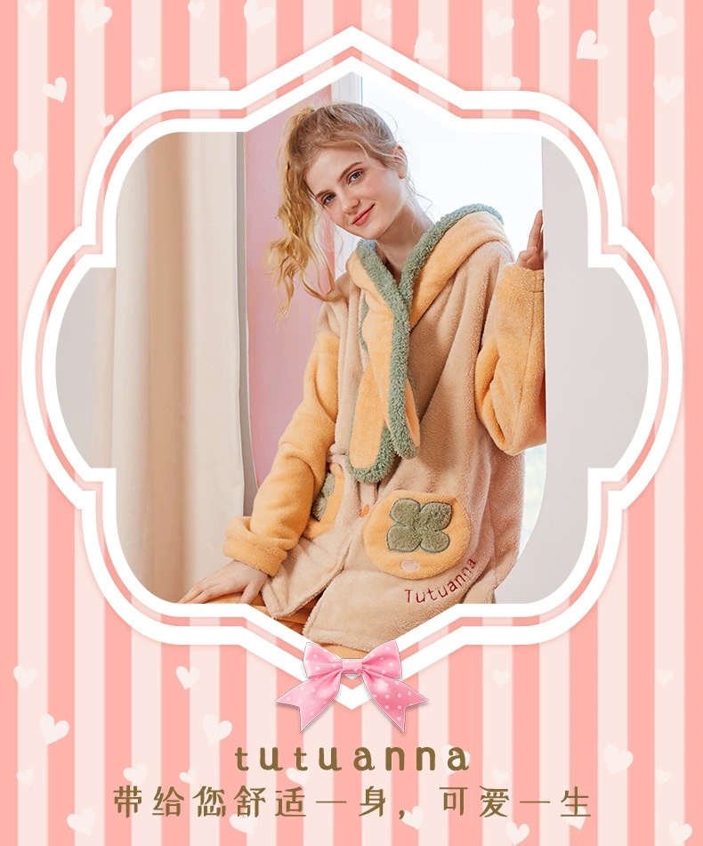 Tutu Anna立体水果连帽羊羔衫加厚保暖两件套睡衣