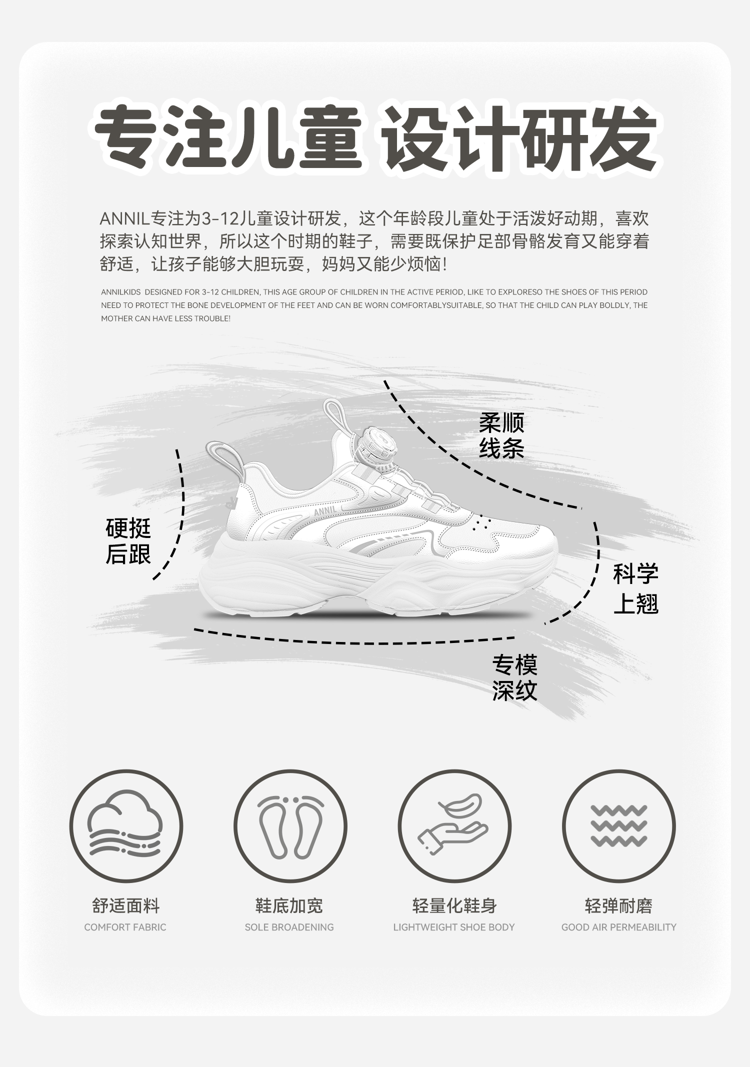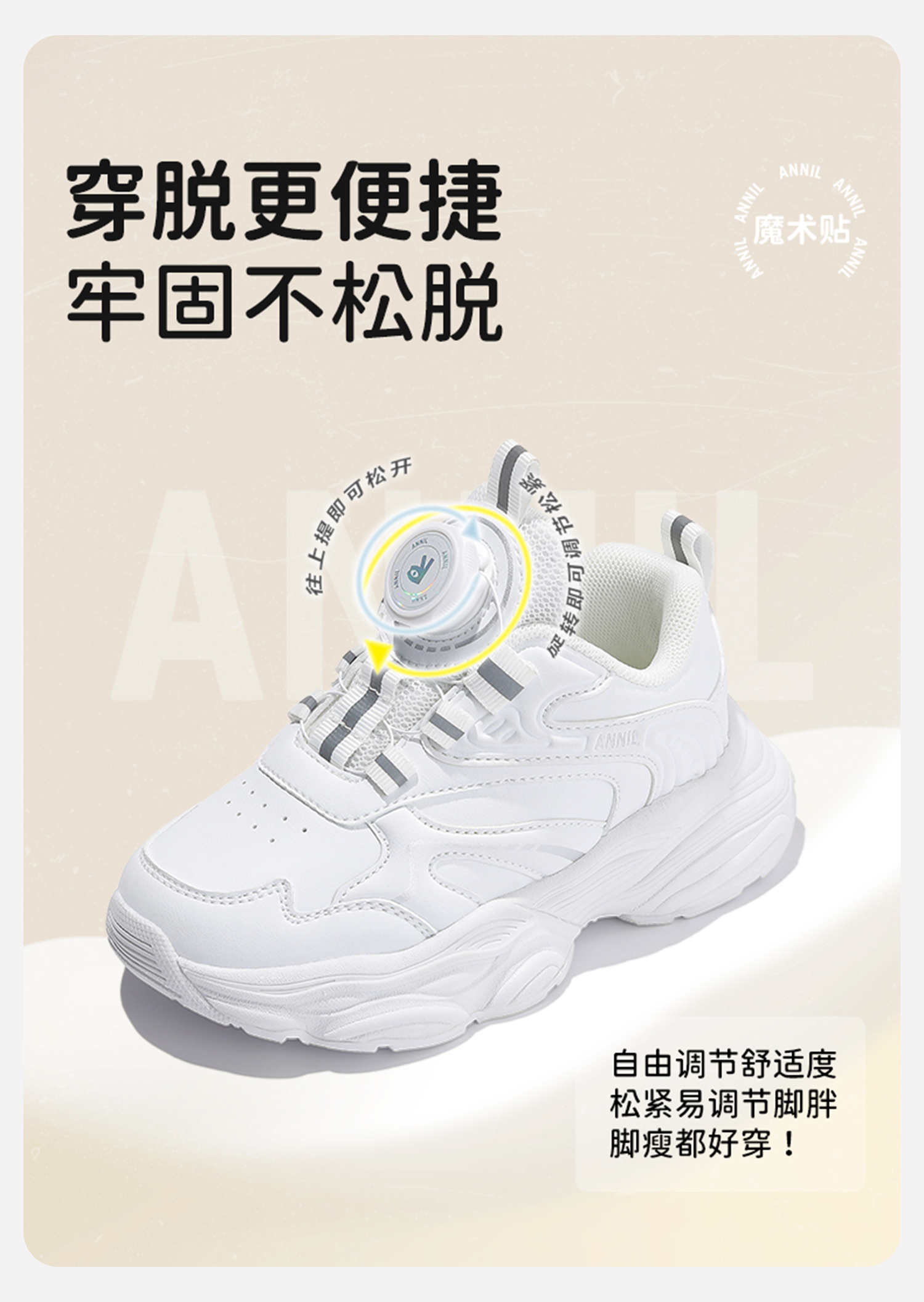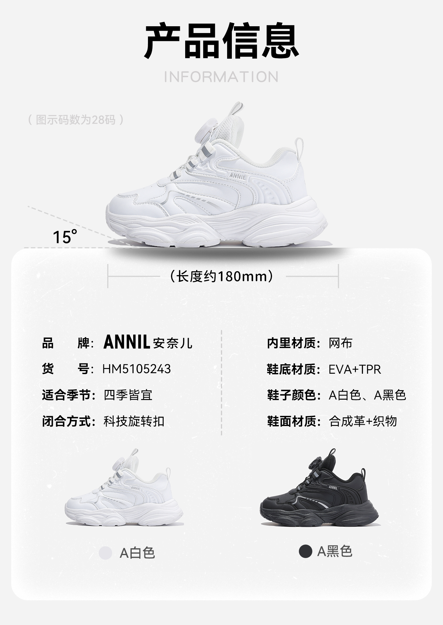 ANNIL/安奈儿儿童运动鞋春季学生校园男童小白鞋女童鞋老爹跑步鞋子HM5105243