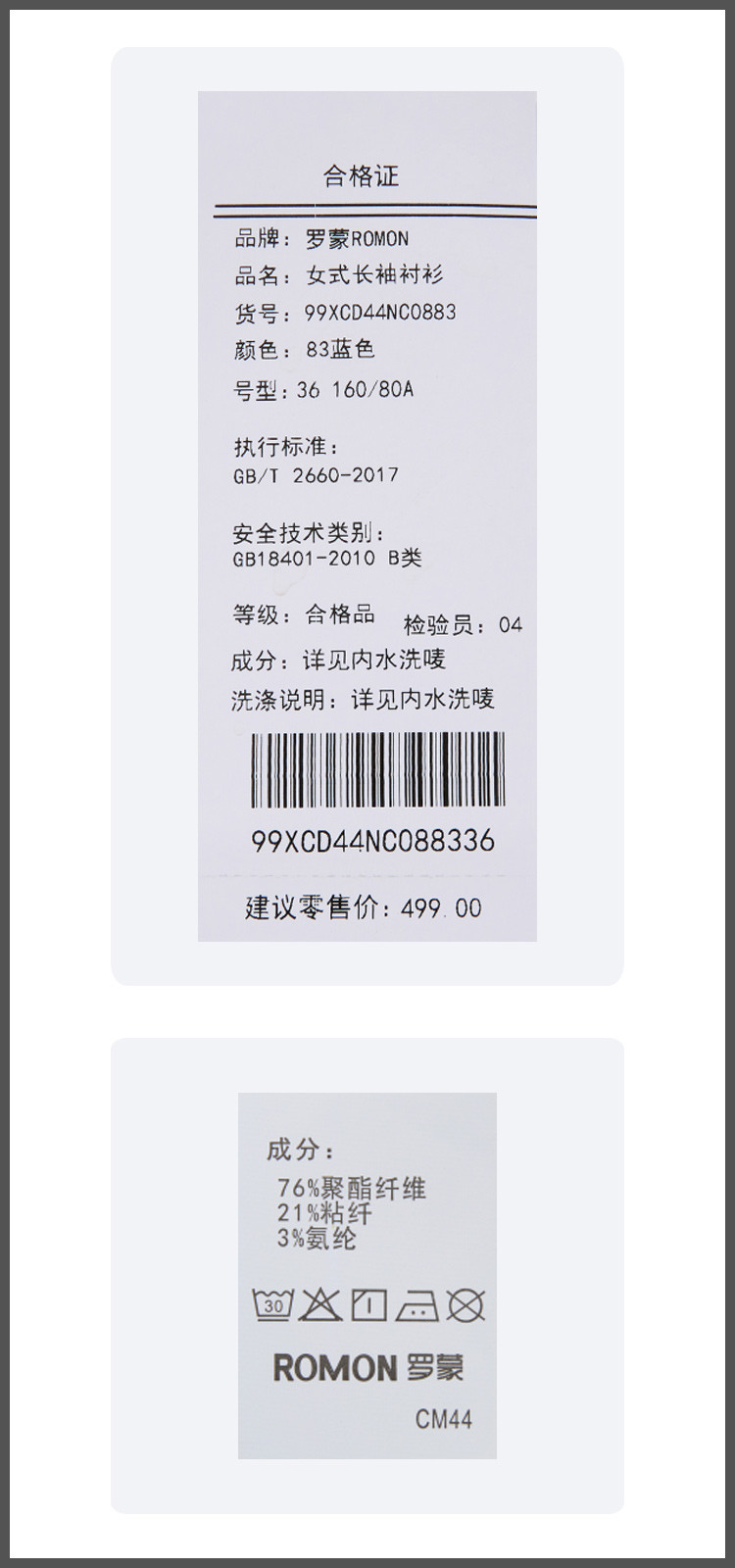 面料:76%聚酯纤维 21%粘纤 3%氨纶