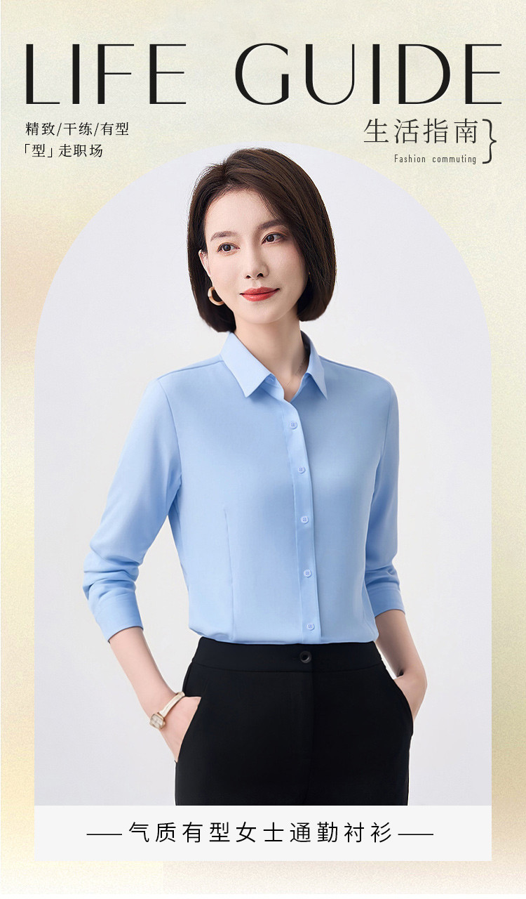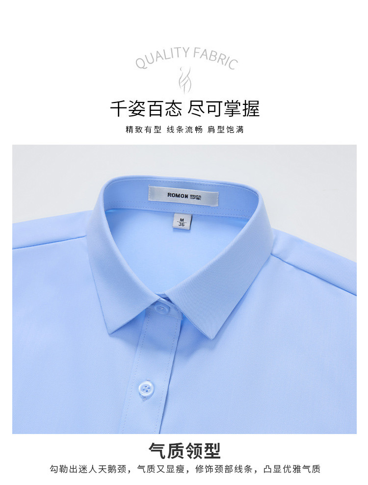 【弹力好穿】罗蒙春秋长袖衬衫女士商务正装通勤职业上班纯色衬衣女上衣