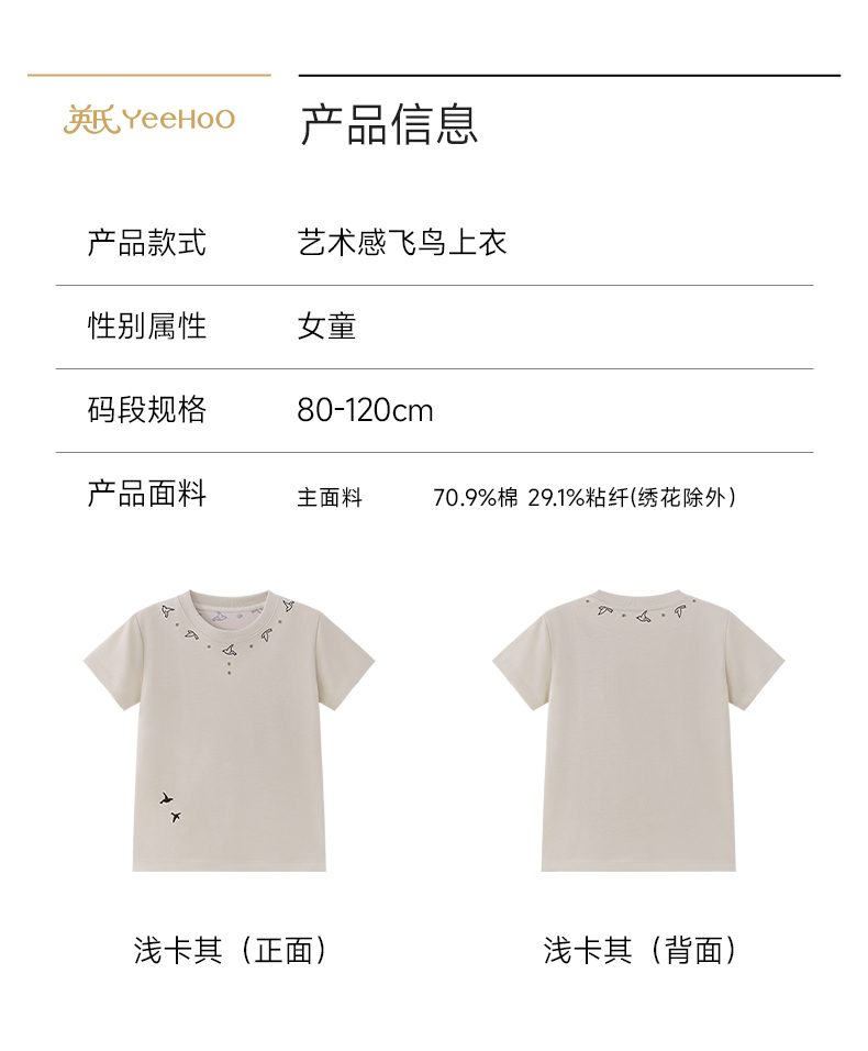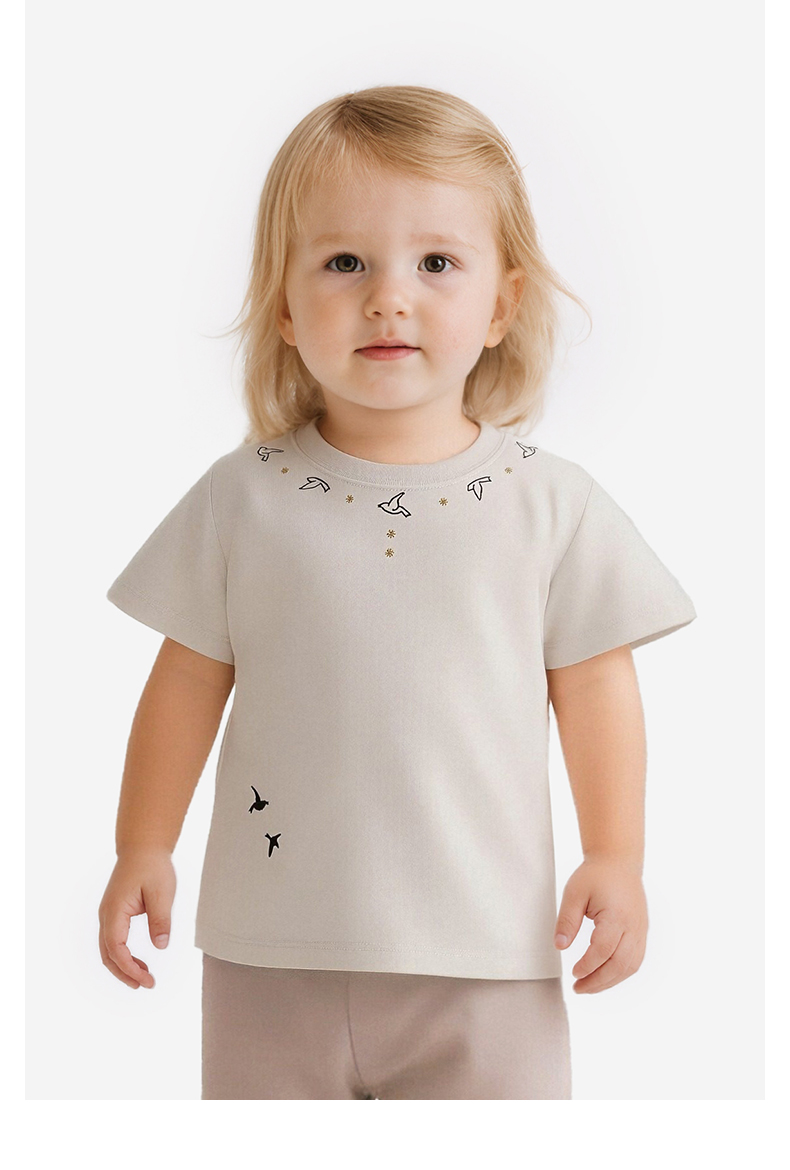 【高定系列】英氏儿童衣服女童夏季百搭短袖休闲圆领套头衫26新款