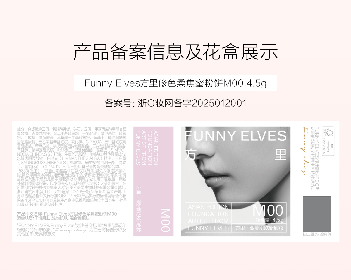 Funny Elves方里修色柔焦蜜粉饼4.5g修色细腻清透提亮补妆自然哑光