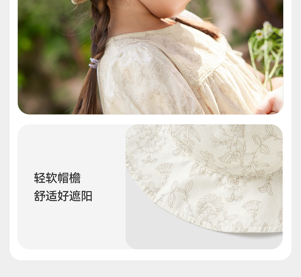 【商场同款】英氏儿童帽子夏季防晒遮阳渔夫帽女童可折叠太阳帽