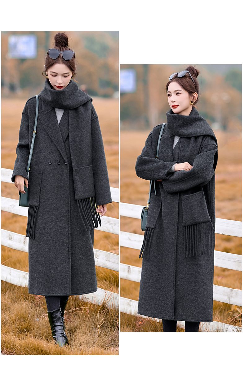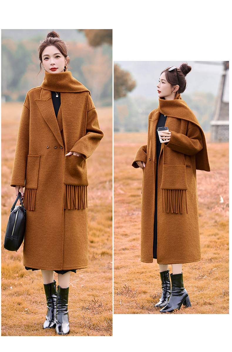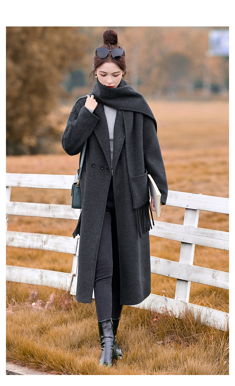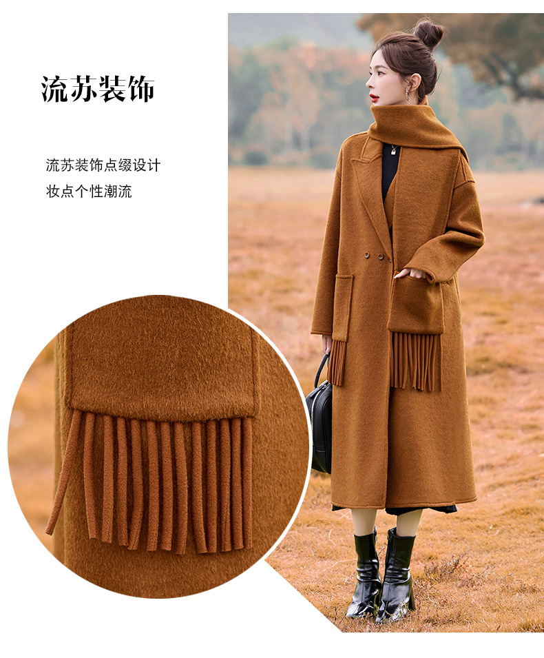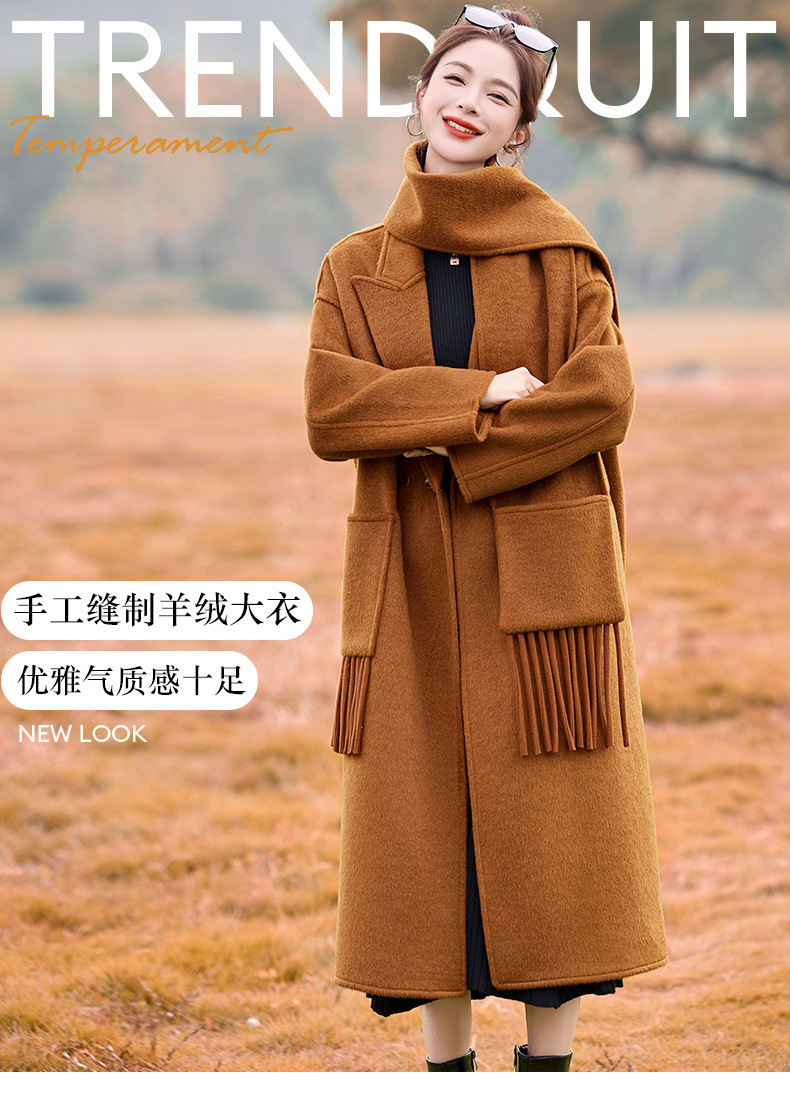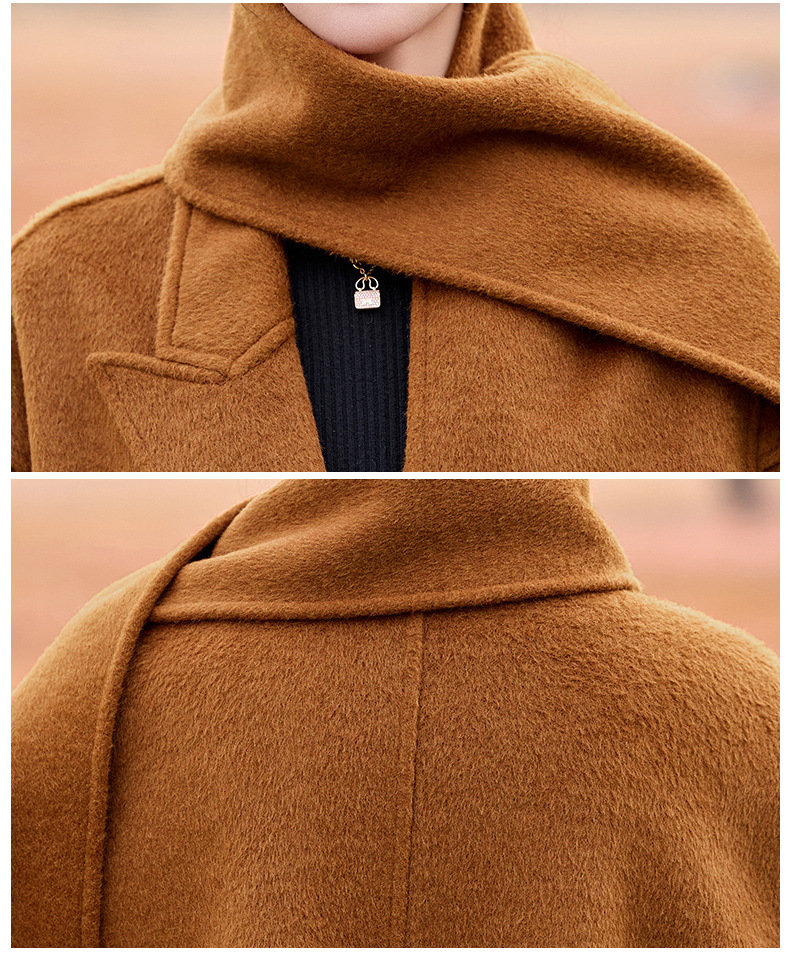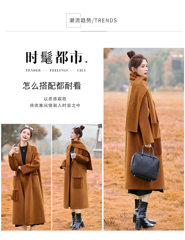 简约时尚休闲气质大翻领,手工缝制羊绒大衣HR-MLJL19011