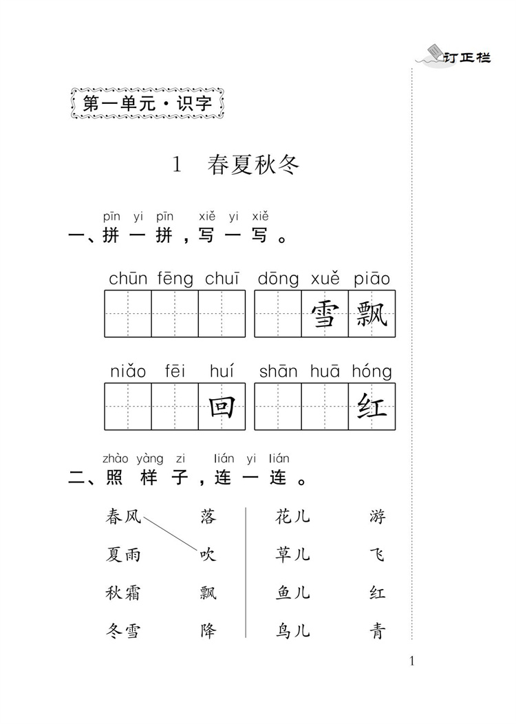2025春 小学语文补充习题 一年级下册 1下 小学教辅