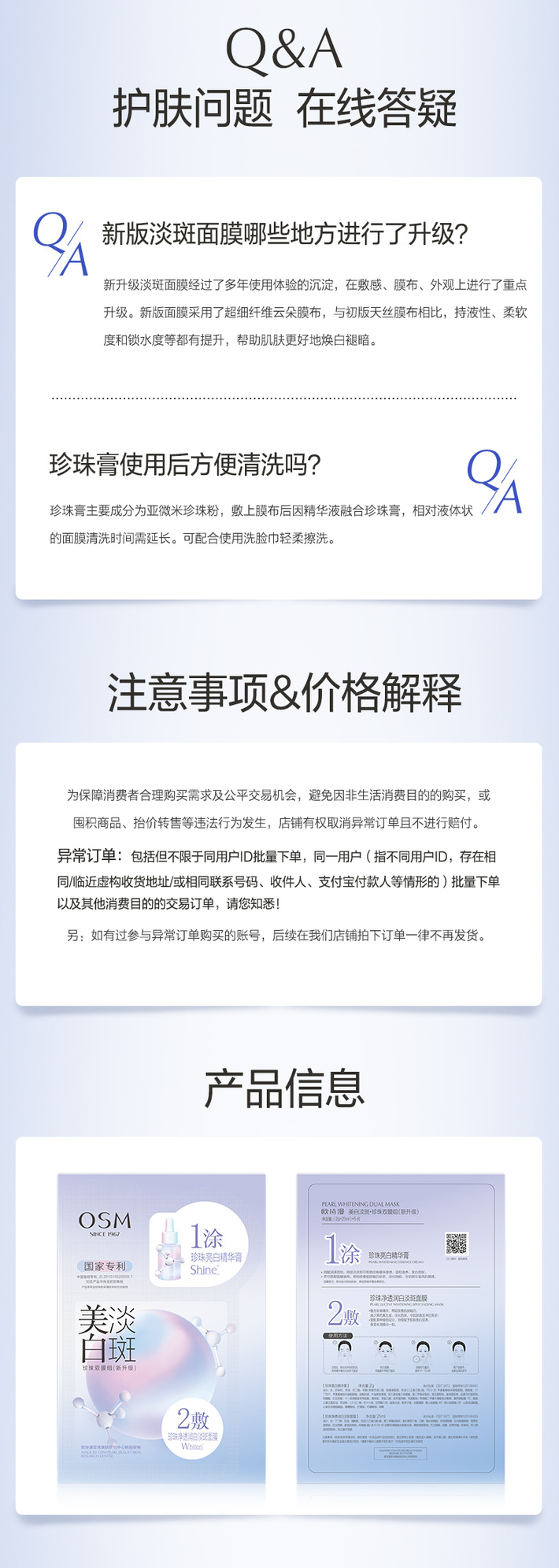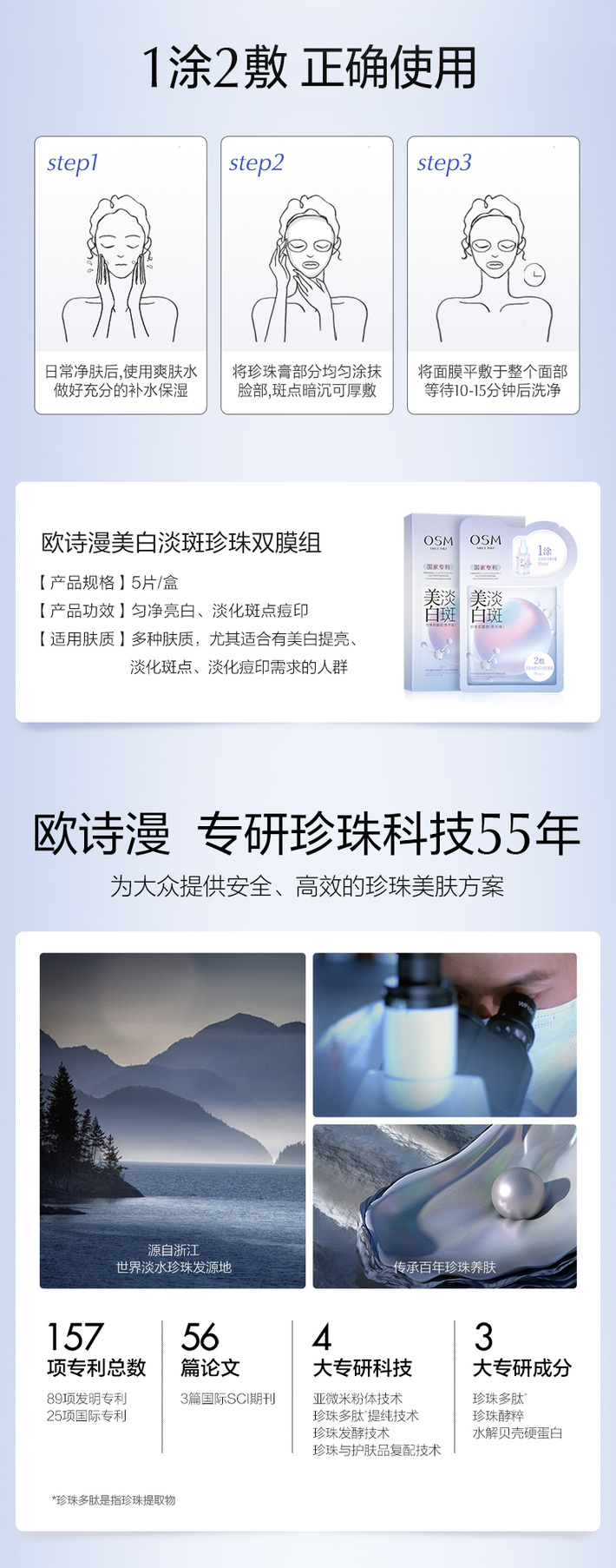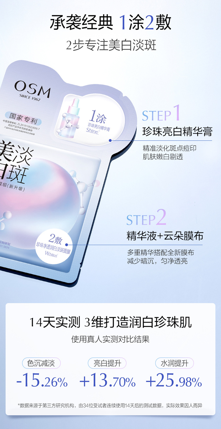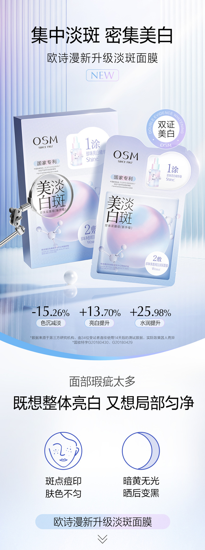 【门店直发】欧诗漫美白淡斑面膜补水保湿烟酰胺提亮淡痘印双重密集淡斑5片/盒
