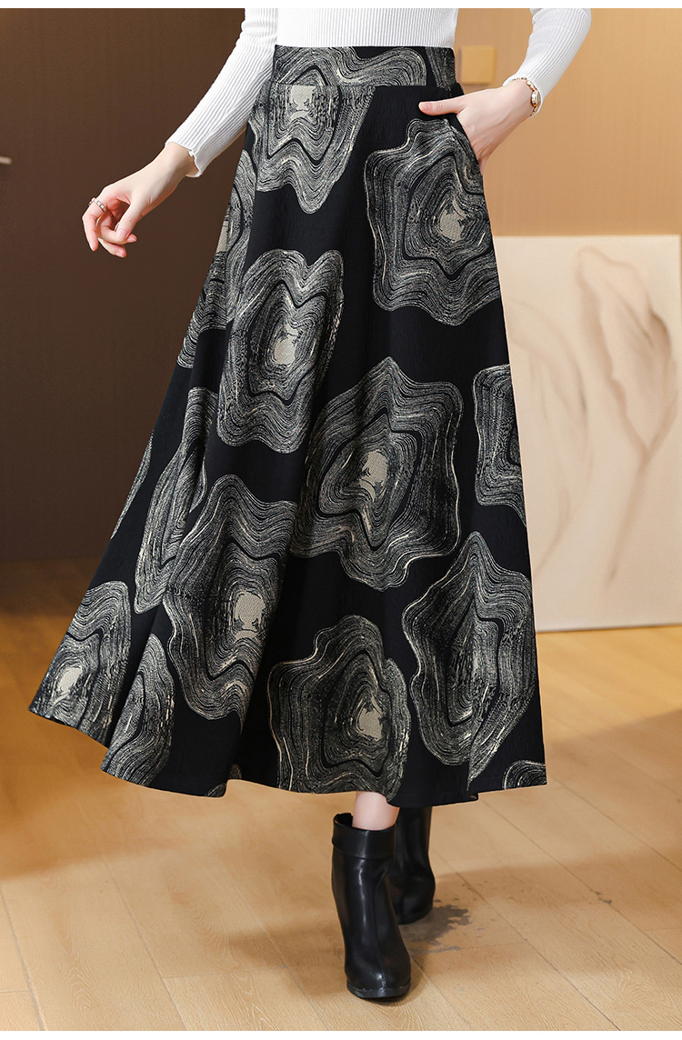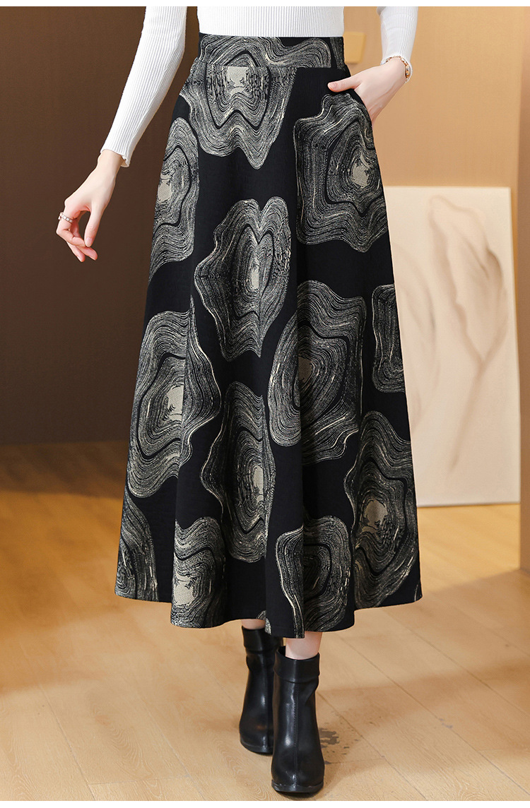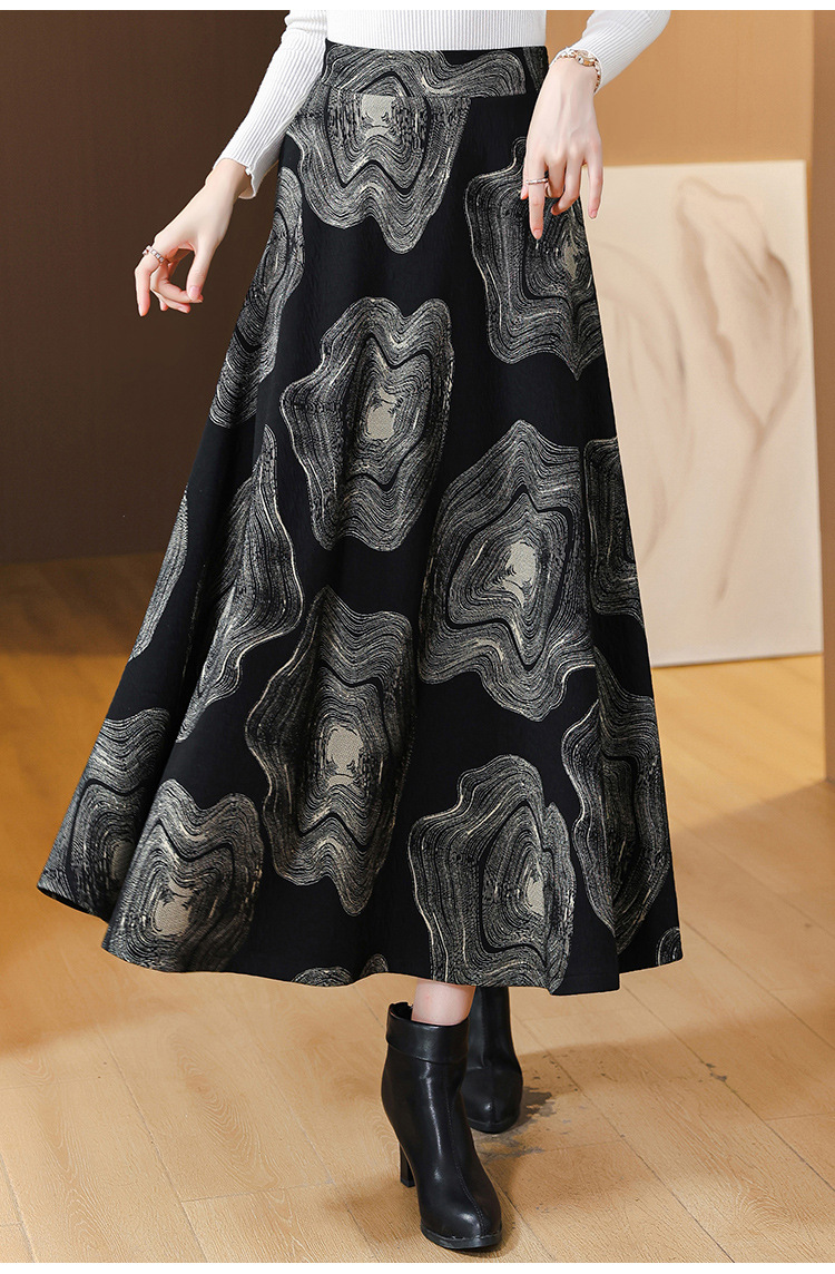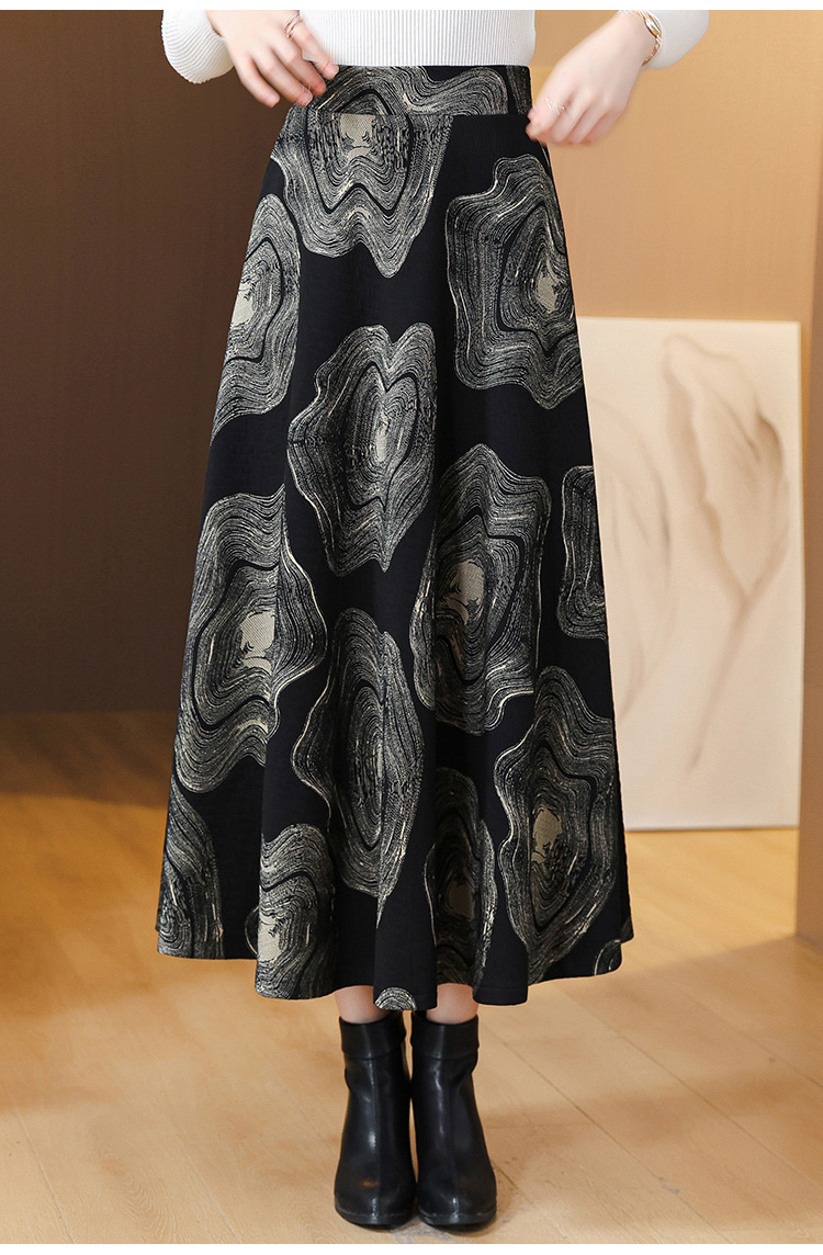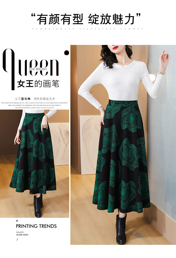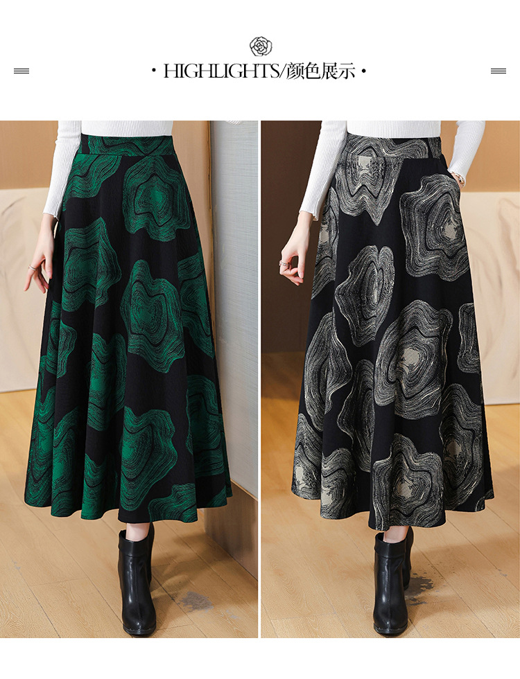 MZ 12436加厚半身裙气质大摆裙高腰显瘦a字伞裙