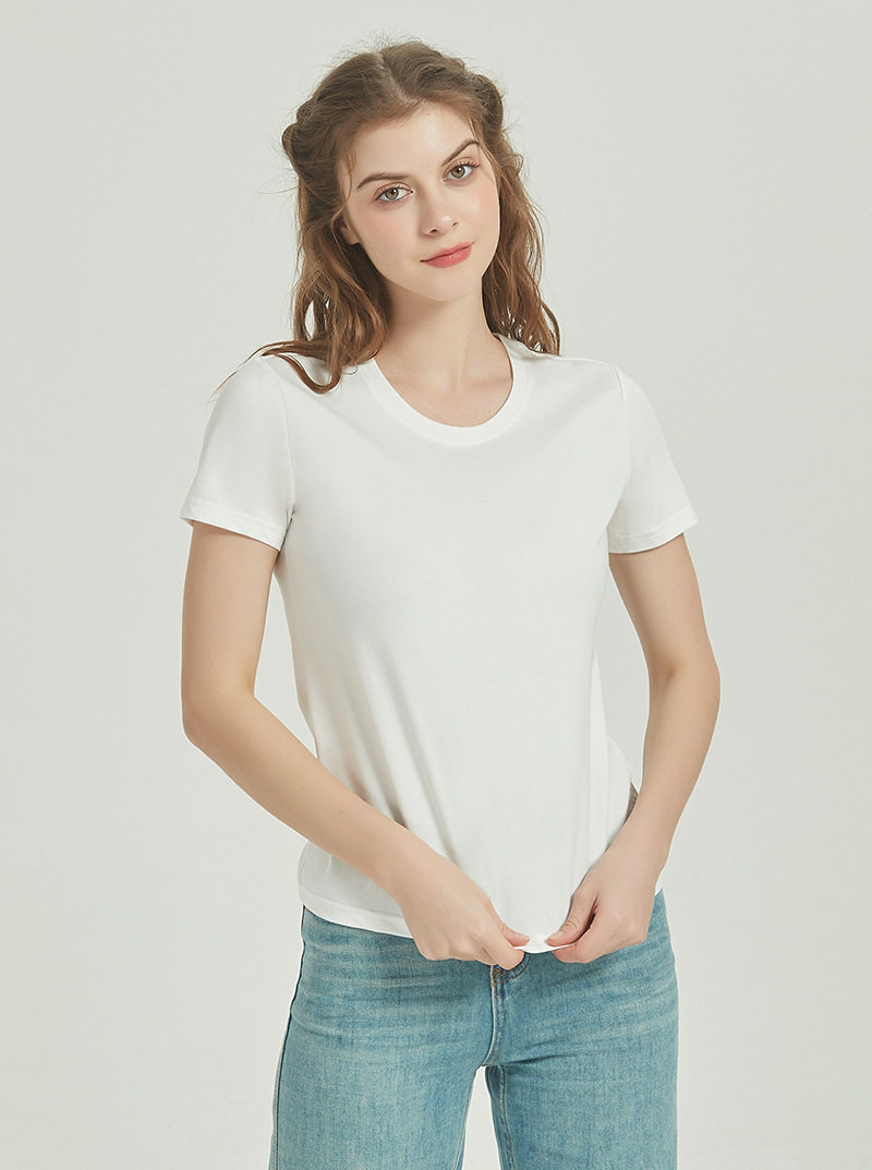新款高端棉t恤女短袖纯色半袖圆领套头免烫新疆棉索罗娜t恤女 RSFZ-T1228W