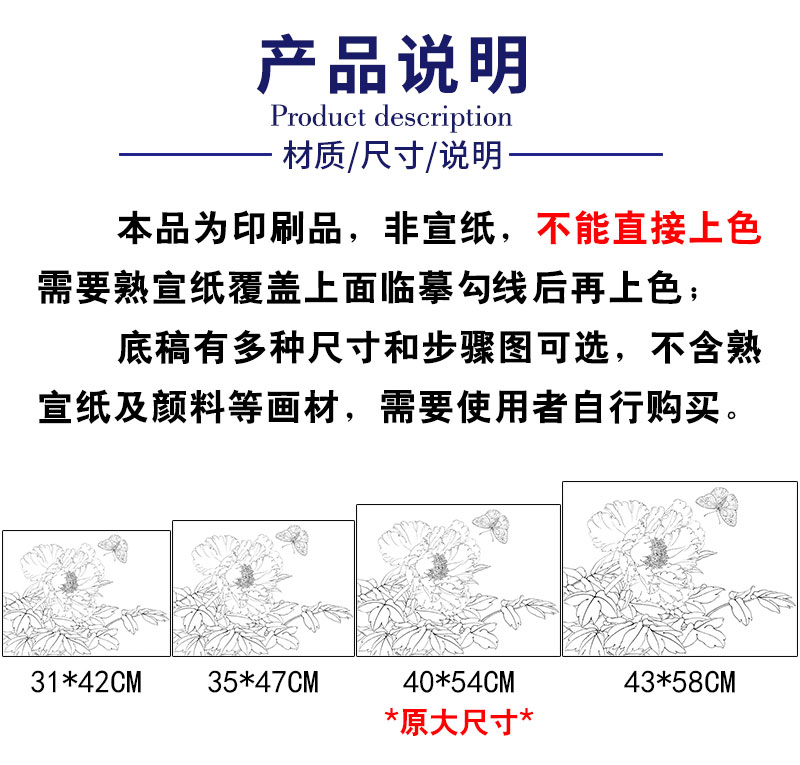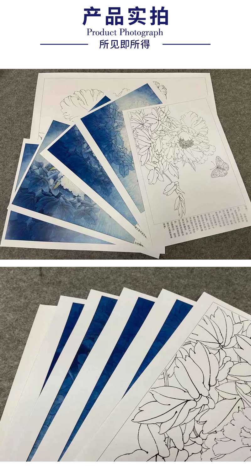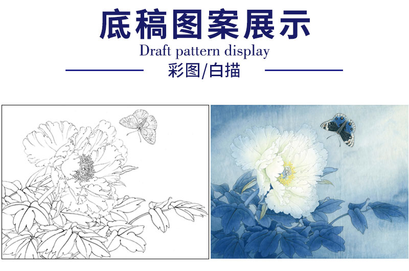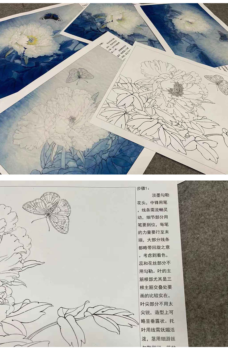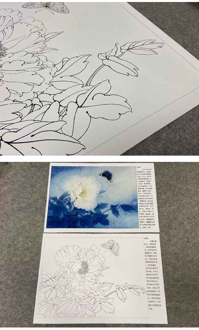 【有步骤、大彩图】李晓明工笔画白描稿底小品《凤丹白蛱蝶》牡丹蝴蝶初学者临摹花鸟线稿KD35
