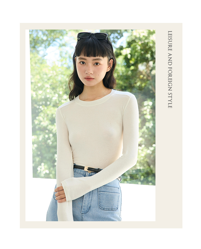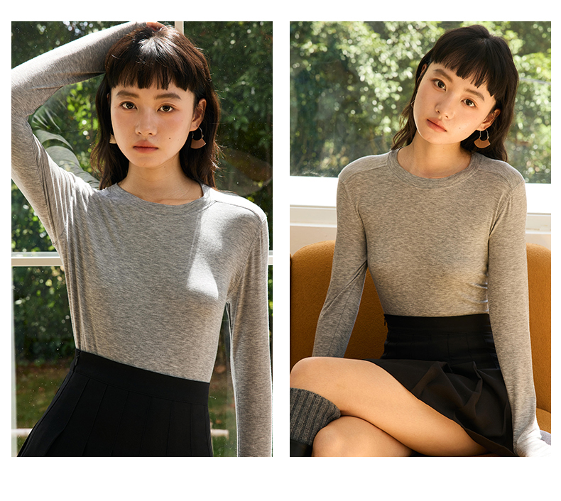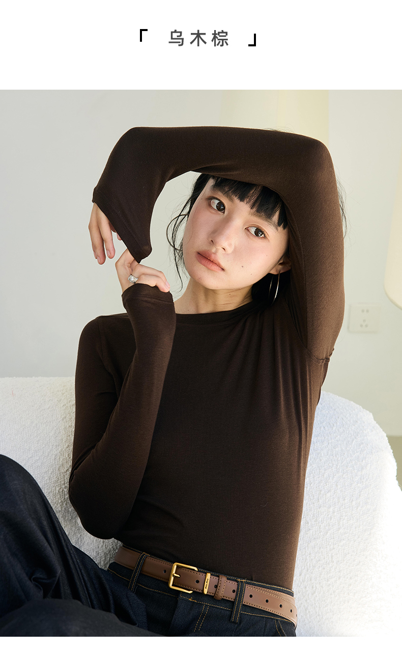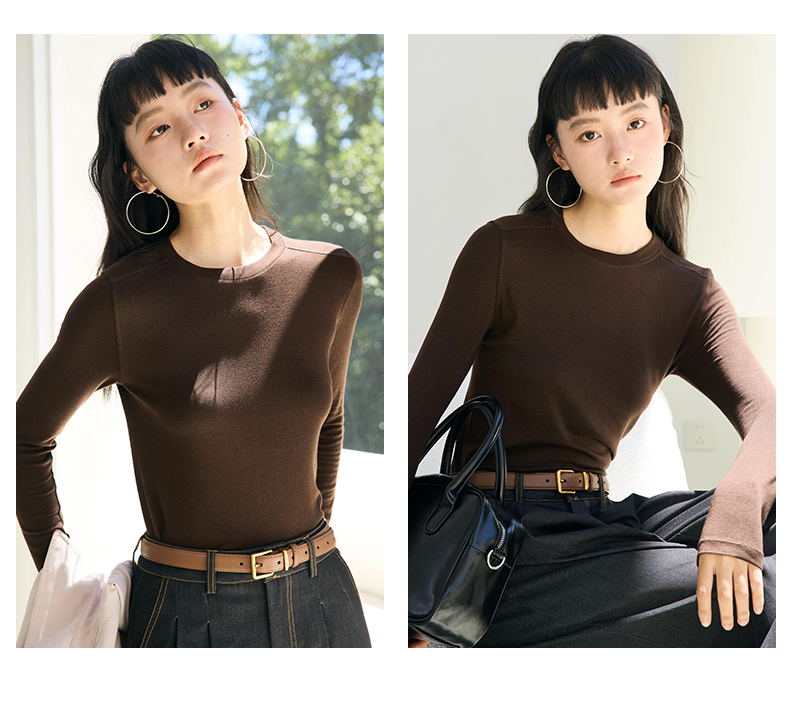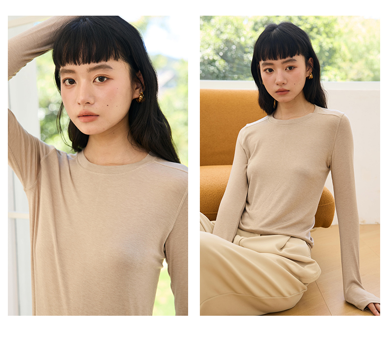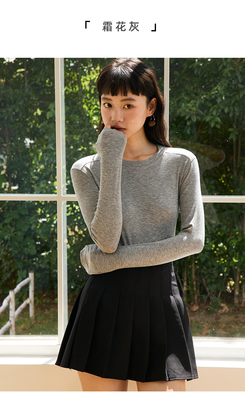 线下专柜品质【KEMU】羊毛天丝打底衫, 添加醋酸纤维,顺滑亲肤保暖,羊毛纯色圆领内搭长袖