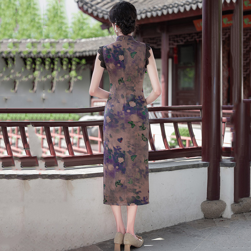 SC21780紫色显瘦国风新中式长款改良旗袍2025新款少女老上海复古修身夏季 商品图3