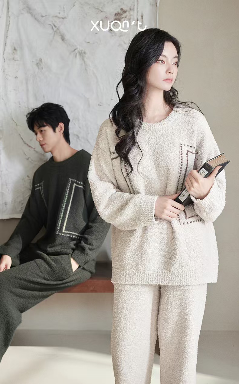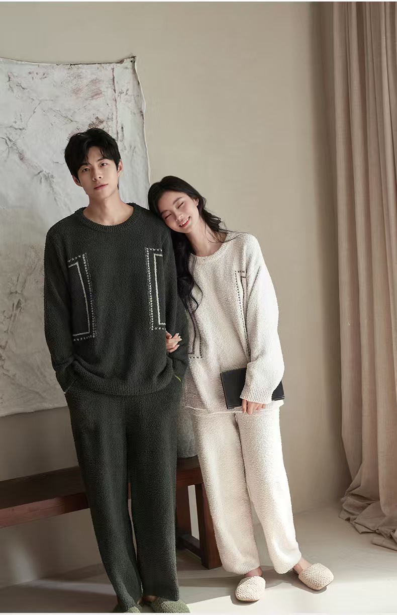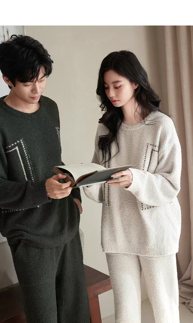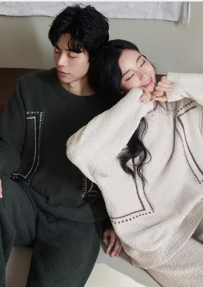【暖阳】2025冬季珊瑚绒睡衣情侣装可外穿舒适半边绒加厚家居服秋季小众