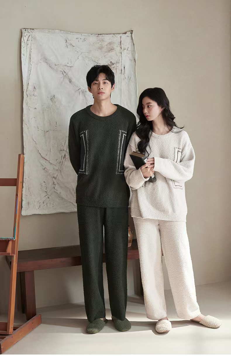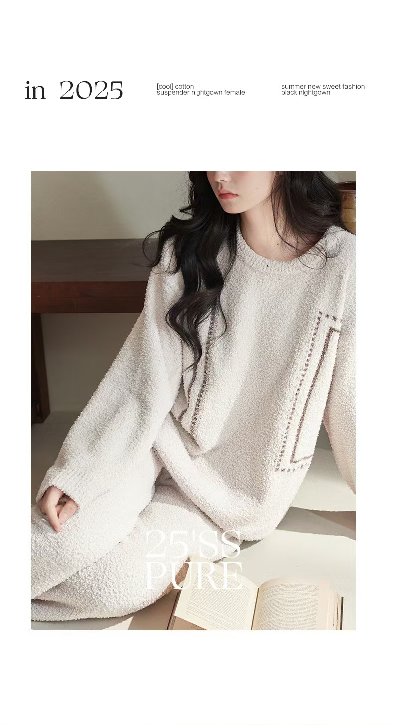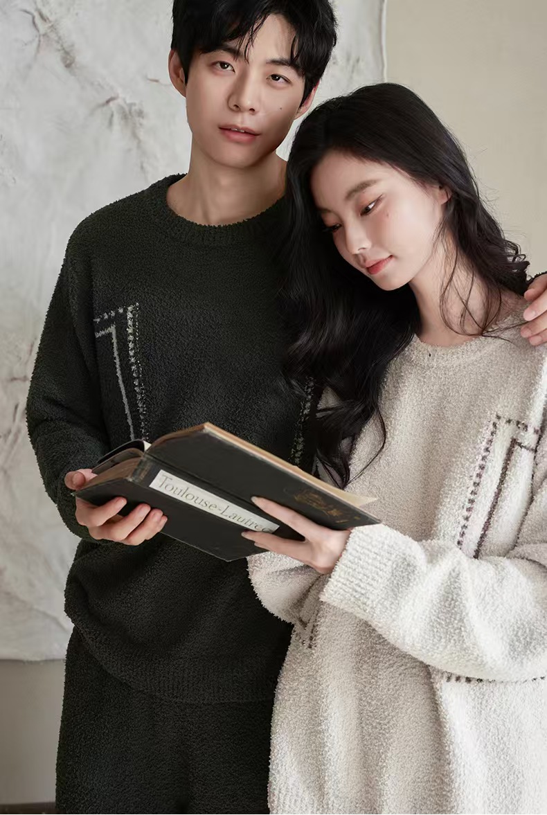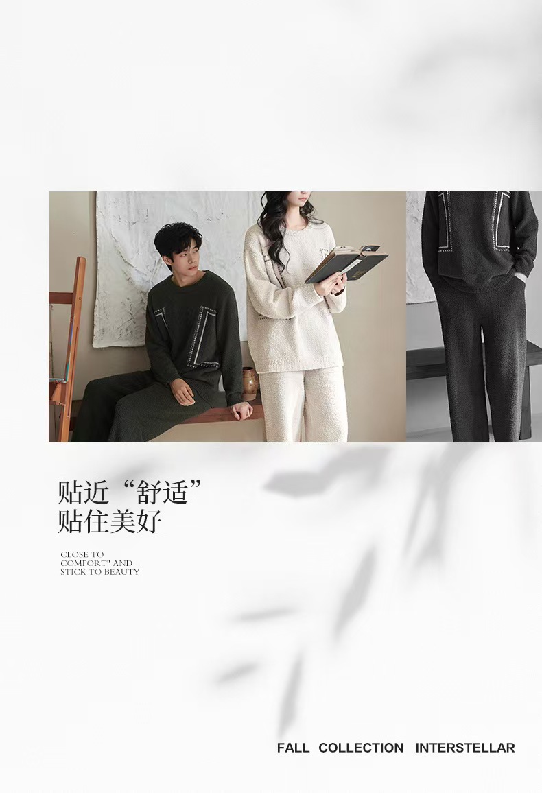 【暖阳】2025冬季珊瑚绒睡衣情侣装可外穿舒适半边绒加厚家居服秋季小众