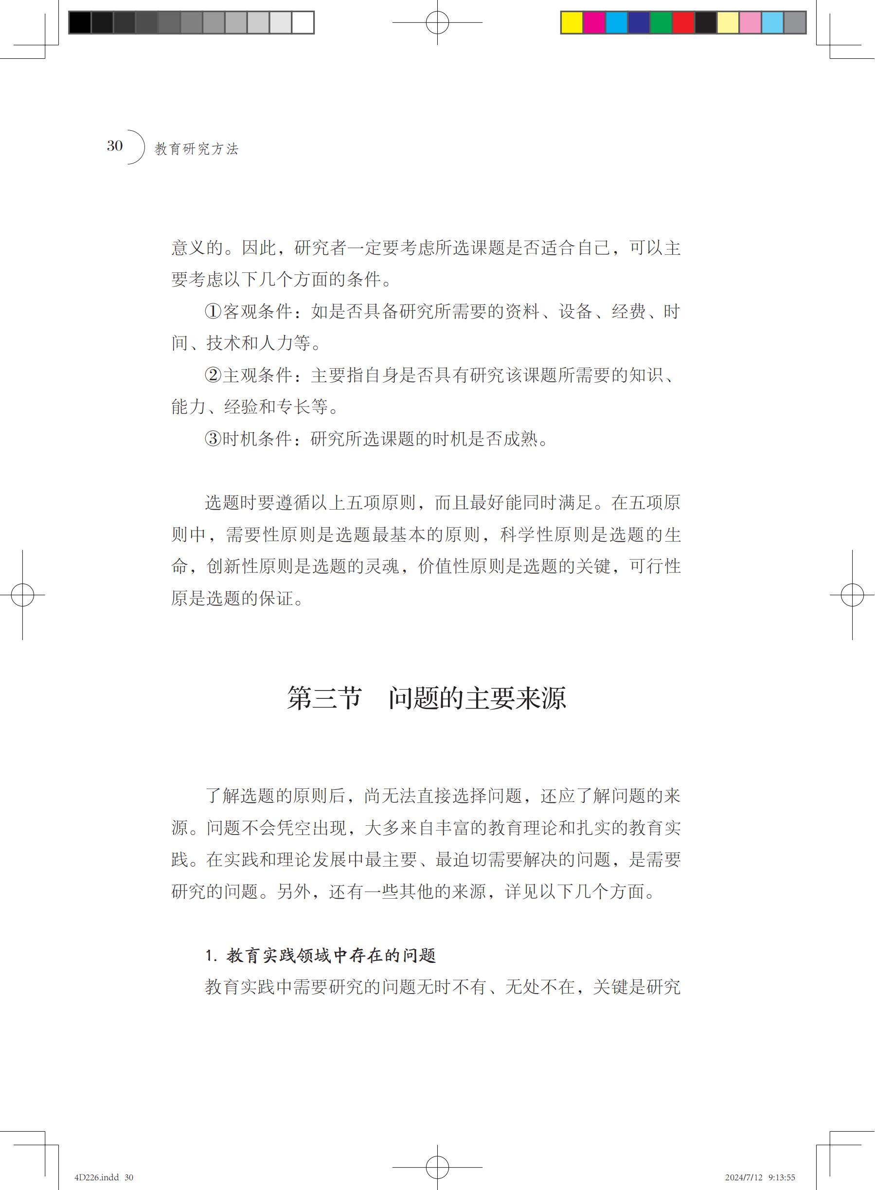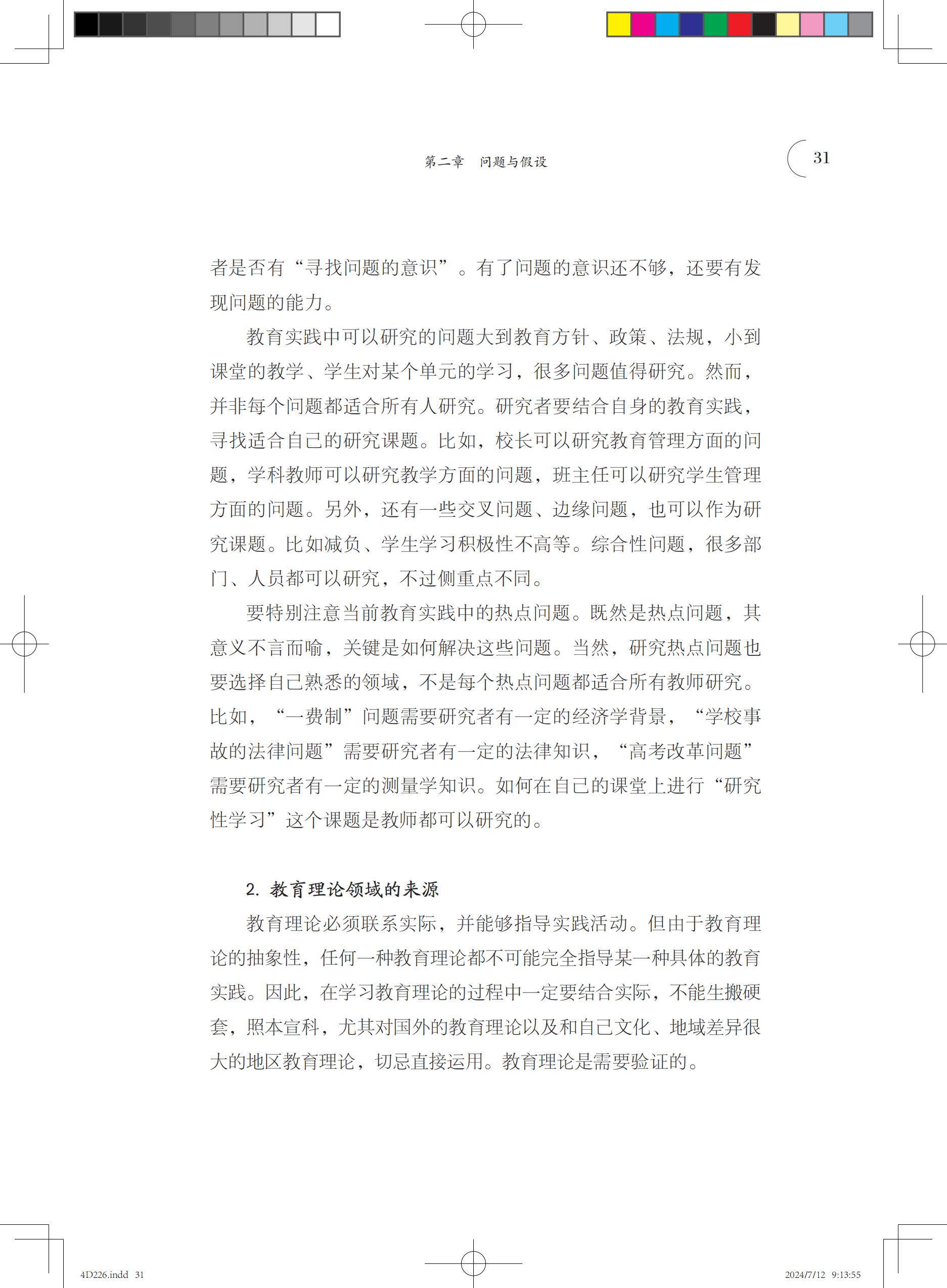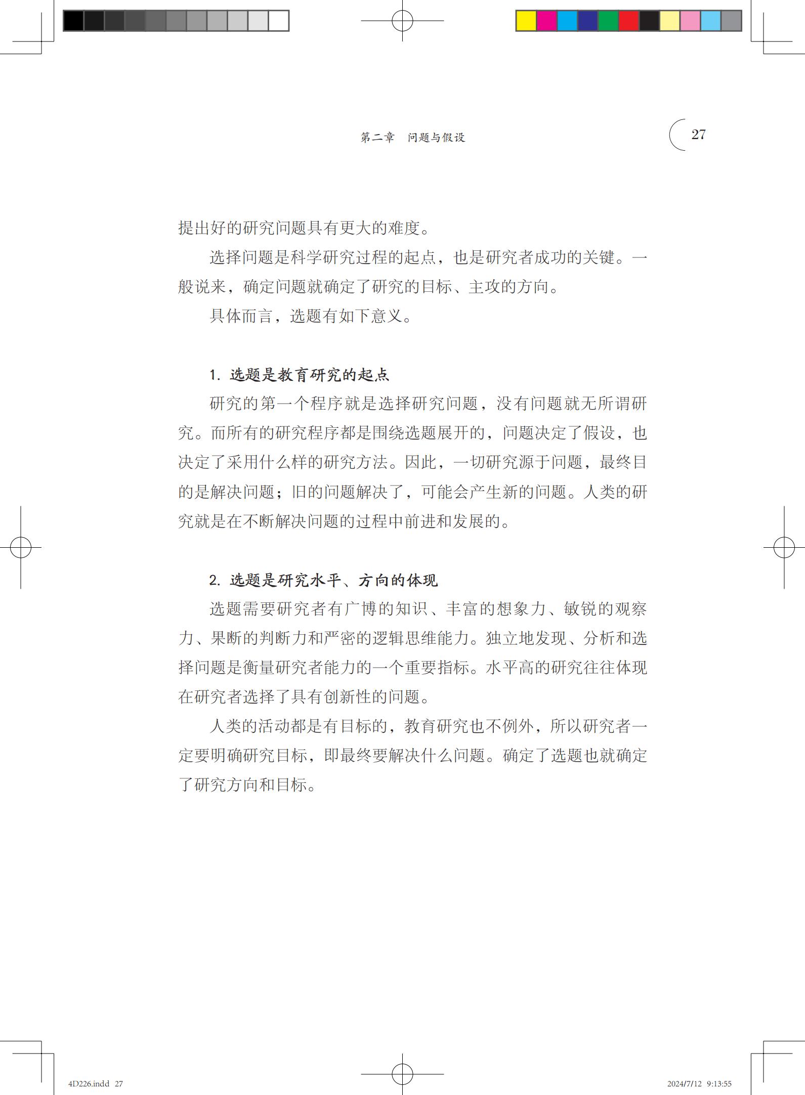 本书分为四大部分。第一部分,主要介绍中小学教育科研的基本知识和基本理论,包括教育科研概论、教育科研的特点与程序、问题的选择与假设的提出、文献的查阅与分析、样本的选择、数据的处理与分析等;第二部分主要介绍各种具体的在中小学教育科研中常用的研究方法,其中有些还是比较新的研究方法,比如质的研究法、行动研究法、叙事研究法等;第三部分是关于如何进行研究设计与撰写学术论文;第四部分是附录以及参考文献等,这一部分附上了采用几种研究方法的研究论文,以及研究设计的案例和一些常用的问卷等。