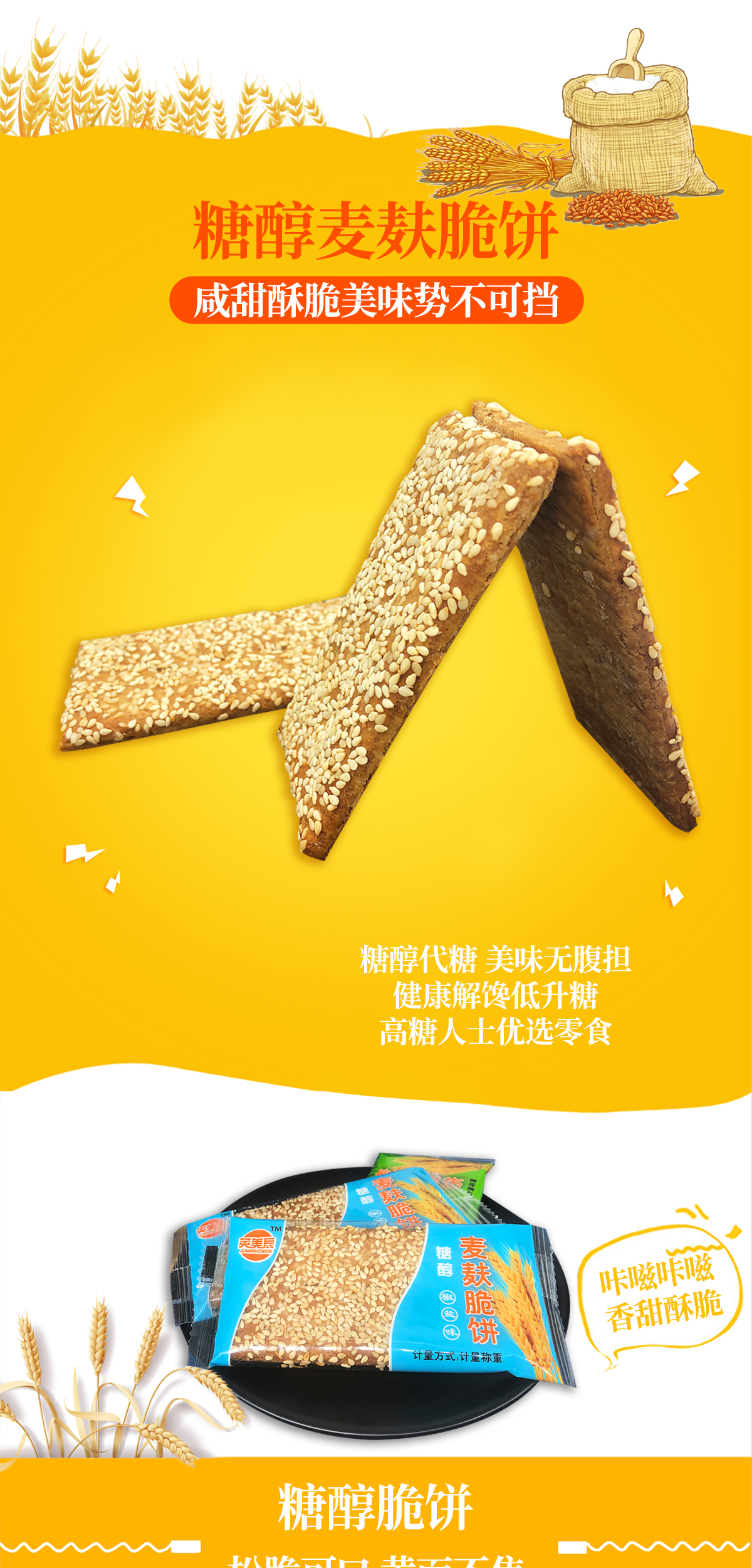 YP 糖醇麦麸脆饼(原味190g/袋*8袋+椒盐味190g袋/*8袋,赠品:糖醇藜麦代餐棒250g/盒*1盒)
