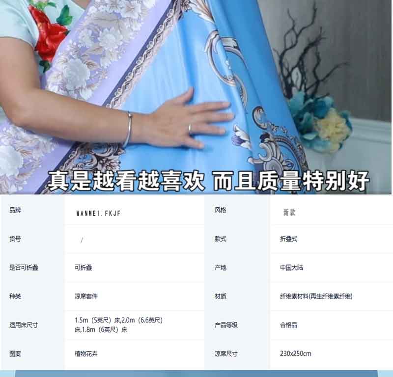 WANMEI-FKJF完美富康家纺冰凉因子驱蚊席三件套(凉席(230cm*245cm±5)*1