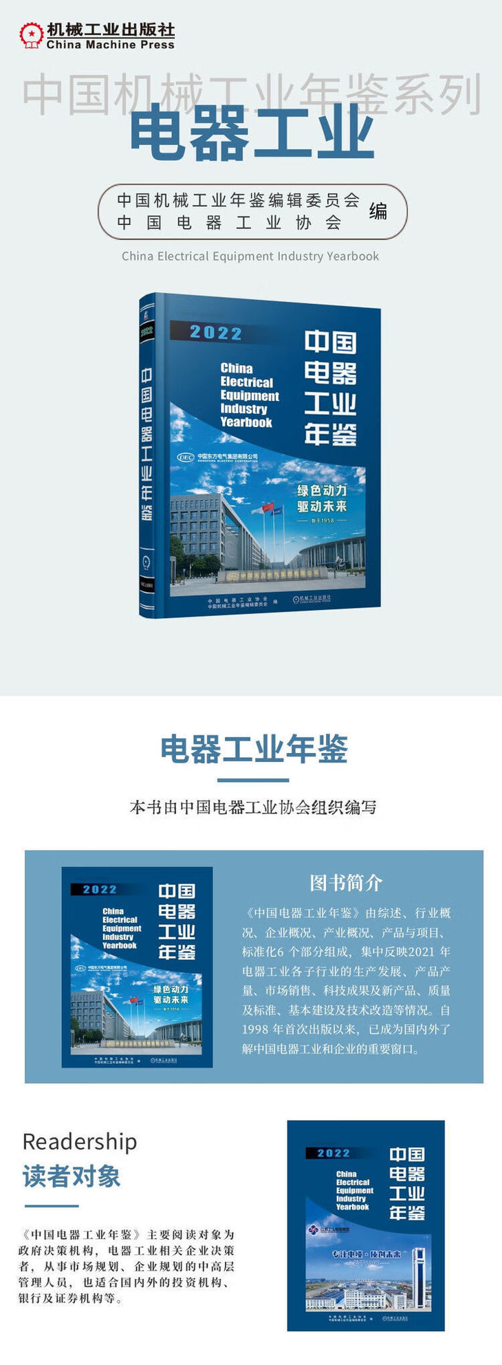 《中国电器工业年鉴》由综述、行业概况、企业概况、产业概况、产品与项目、标准化6 个部分组成,集中反映2021 年电器工业各子行业的生产发展、产品产量、市场销售、科技成果及新产品、质量及标准、基本建设及技术改造等情况。自1998 年首次出版以来,已成为国内外了解中国电器工业和企业的重要窗口。