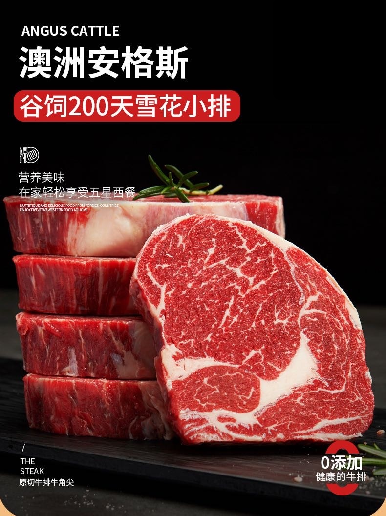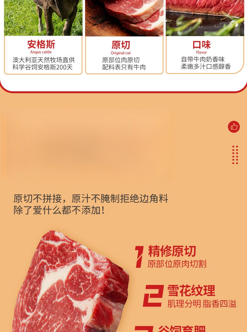 谷饲200天【精修原切脂香四溢❗️纤维细致肉嫩多汁】澳洲进口安格斯谷饲牛排原切眼肉雪花小排130g家用牛扒牛肉。jb