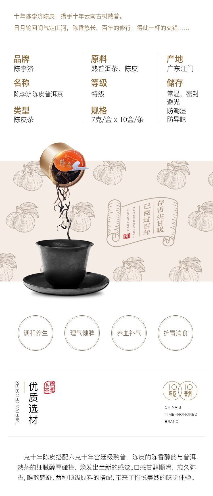 陈李济陈皮普洱熟茶1010