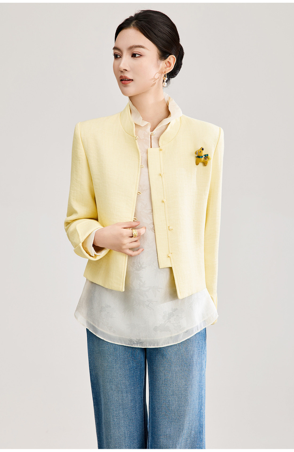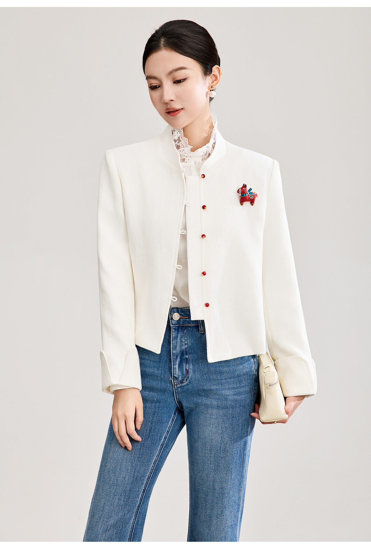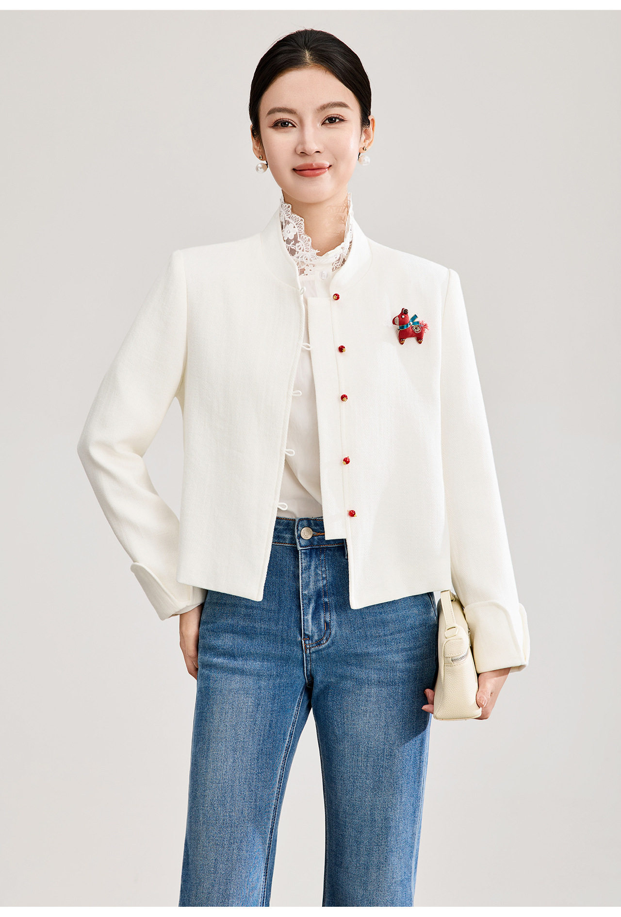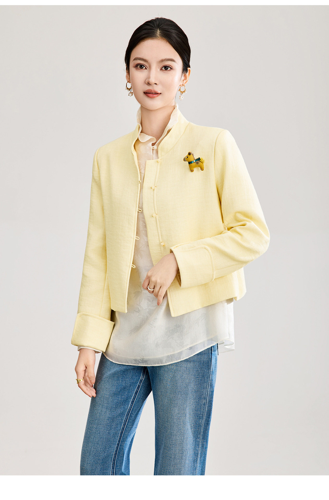 「高货wl」全新升级【铂金会员339/天猫459/差价120】(53807)洛诗琳气质人字纹立领外套2026春季国风小马胸针短外套
