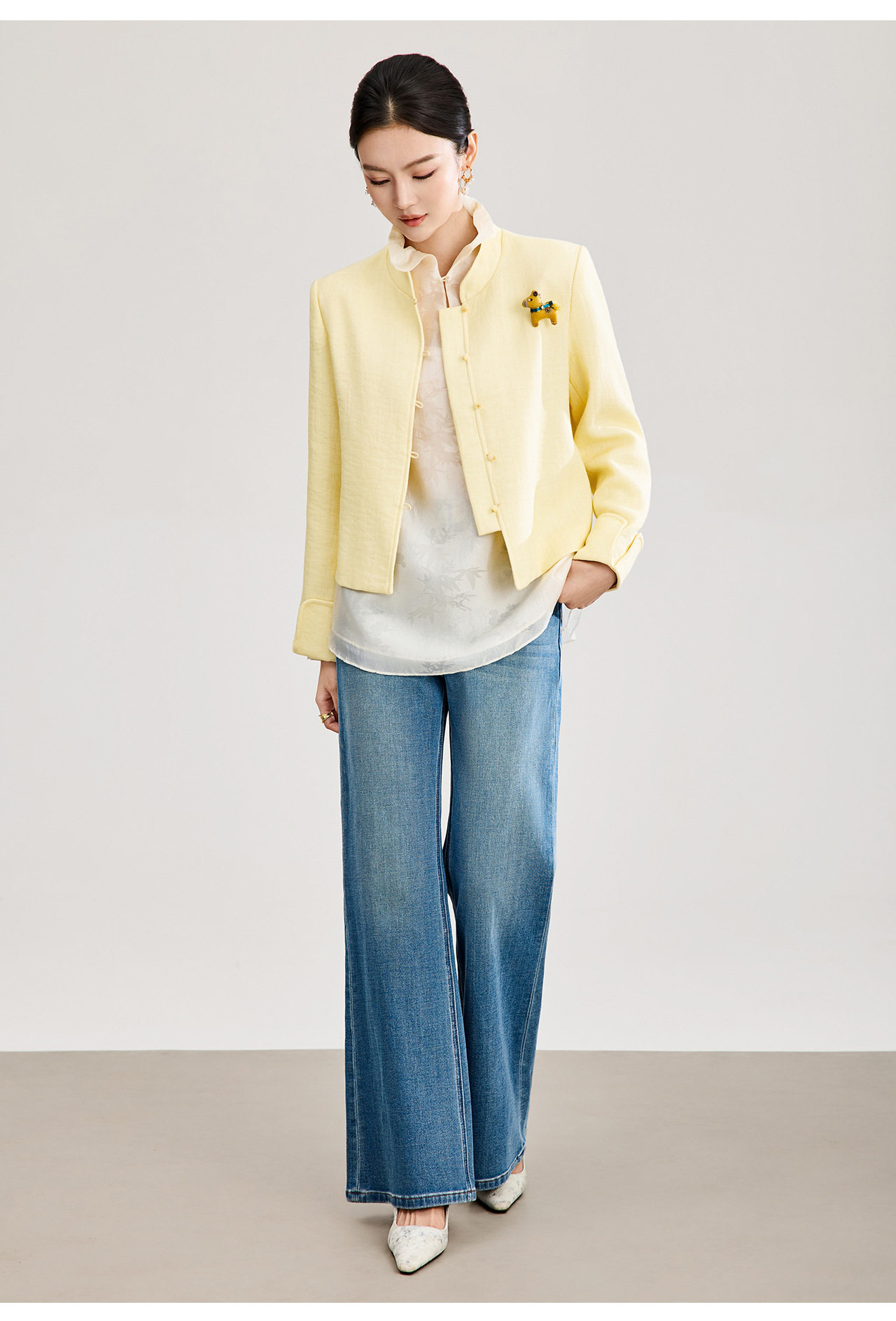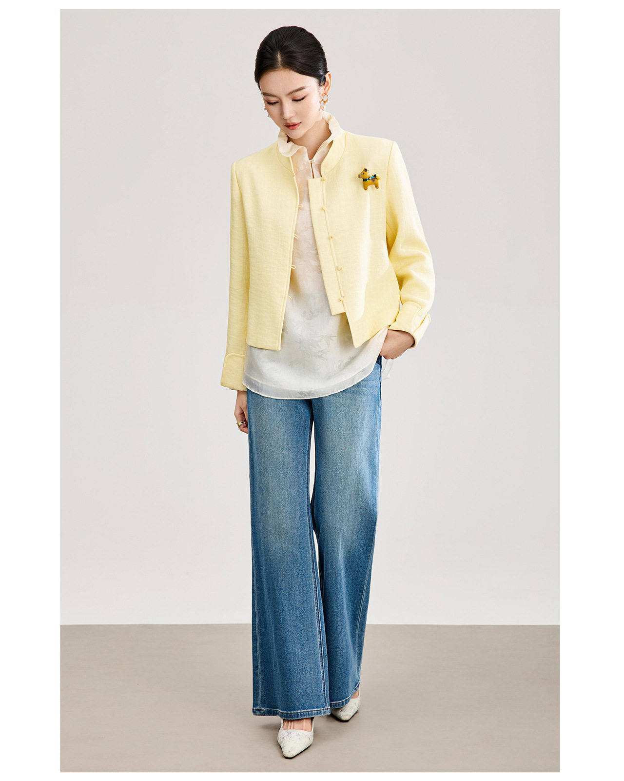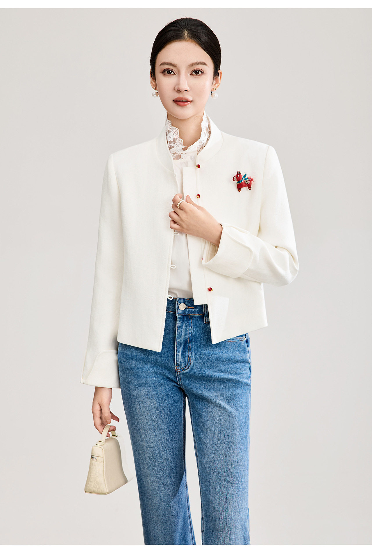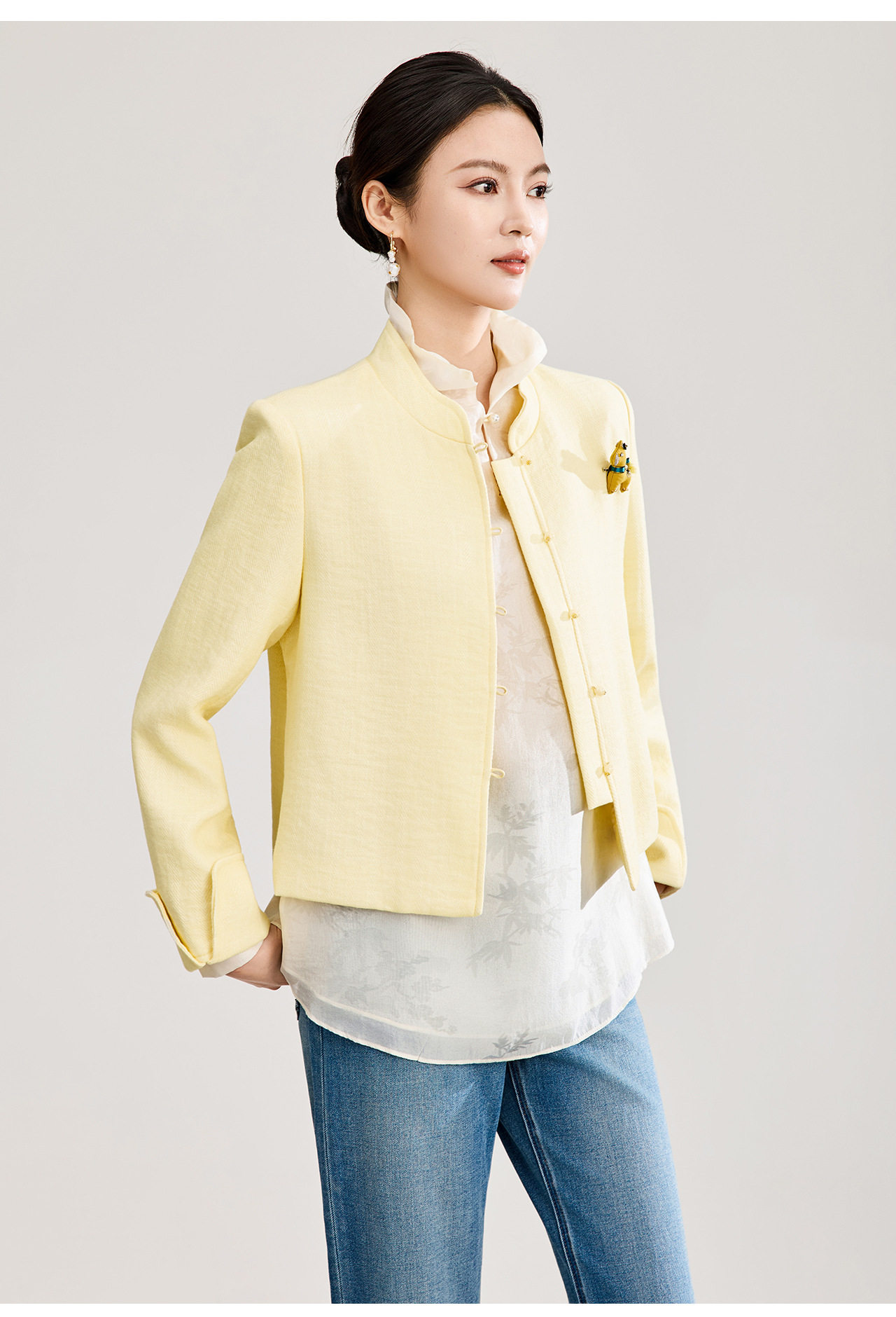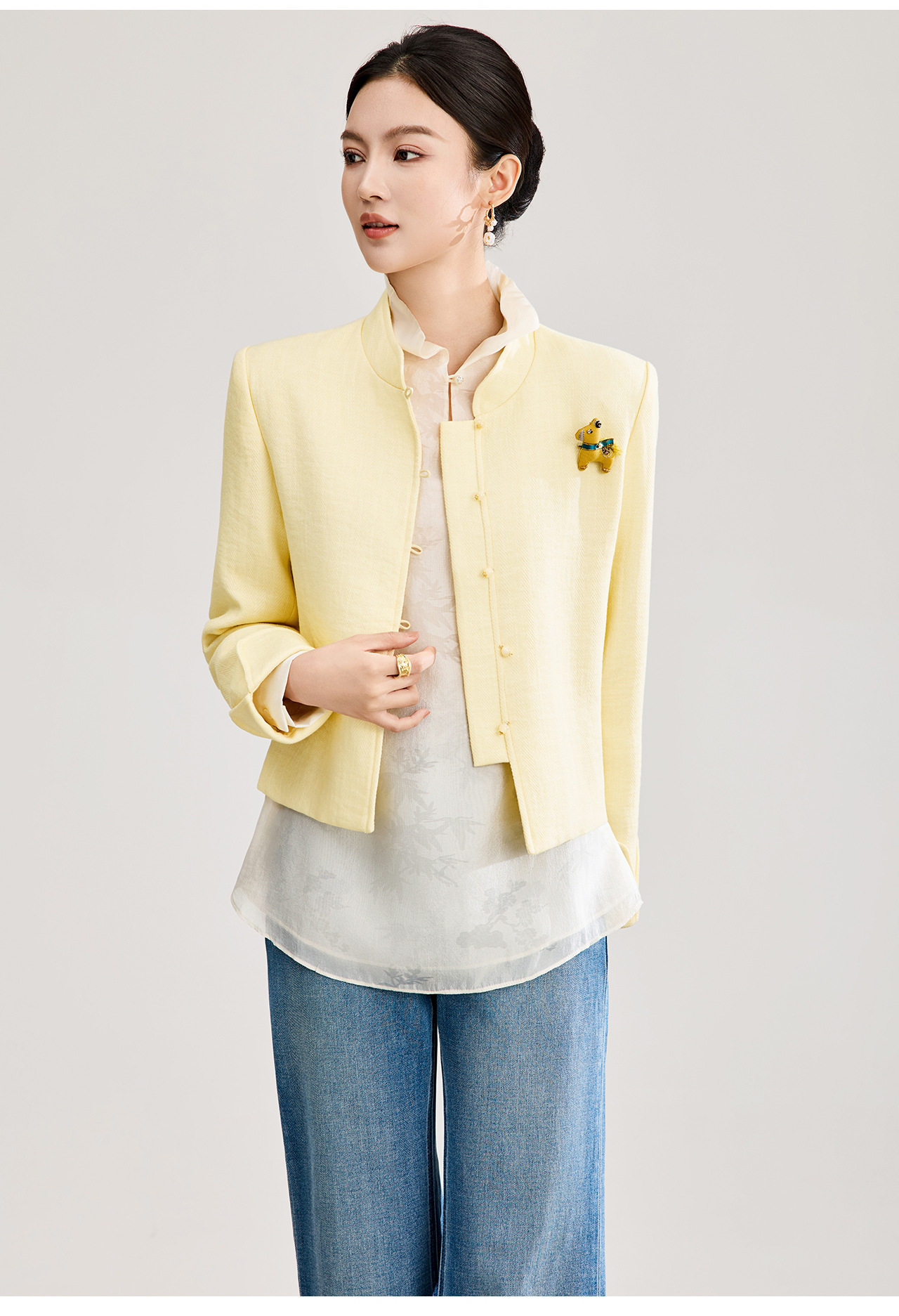 「高货wl」全新升级【铂金会员339/天猫459/差价120】(53807)洛诗琳气质人字纹立领外套2026春季国风小马胸针短外套