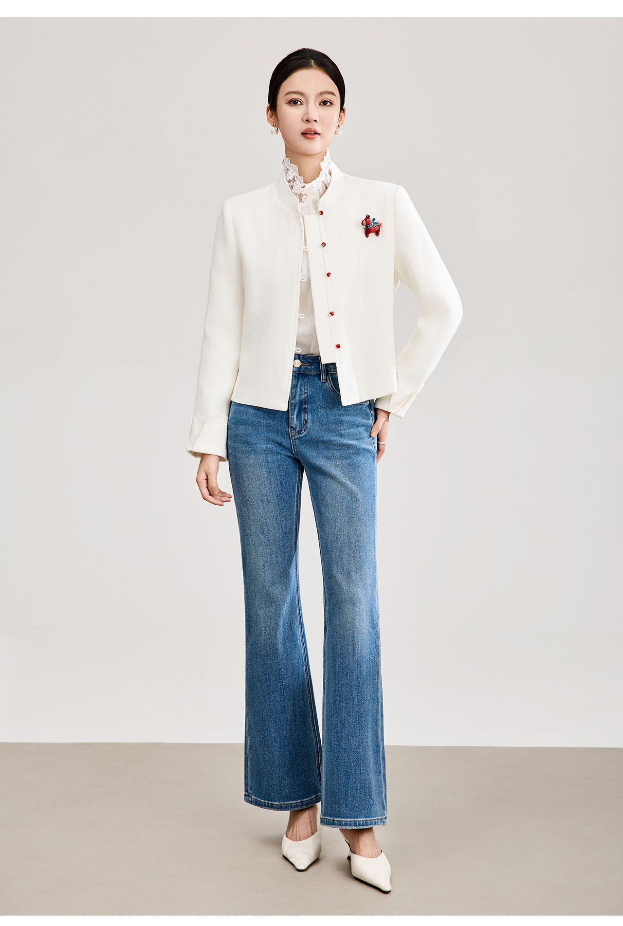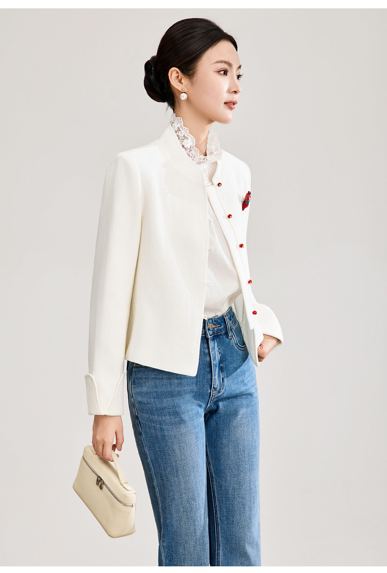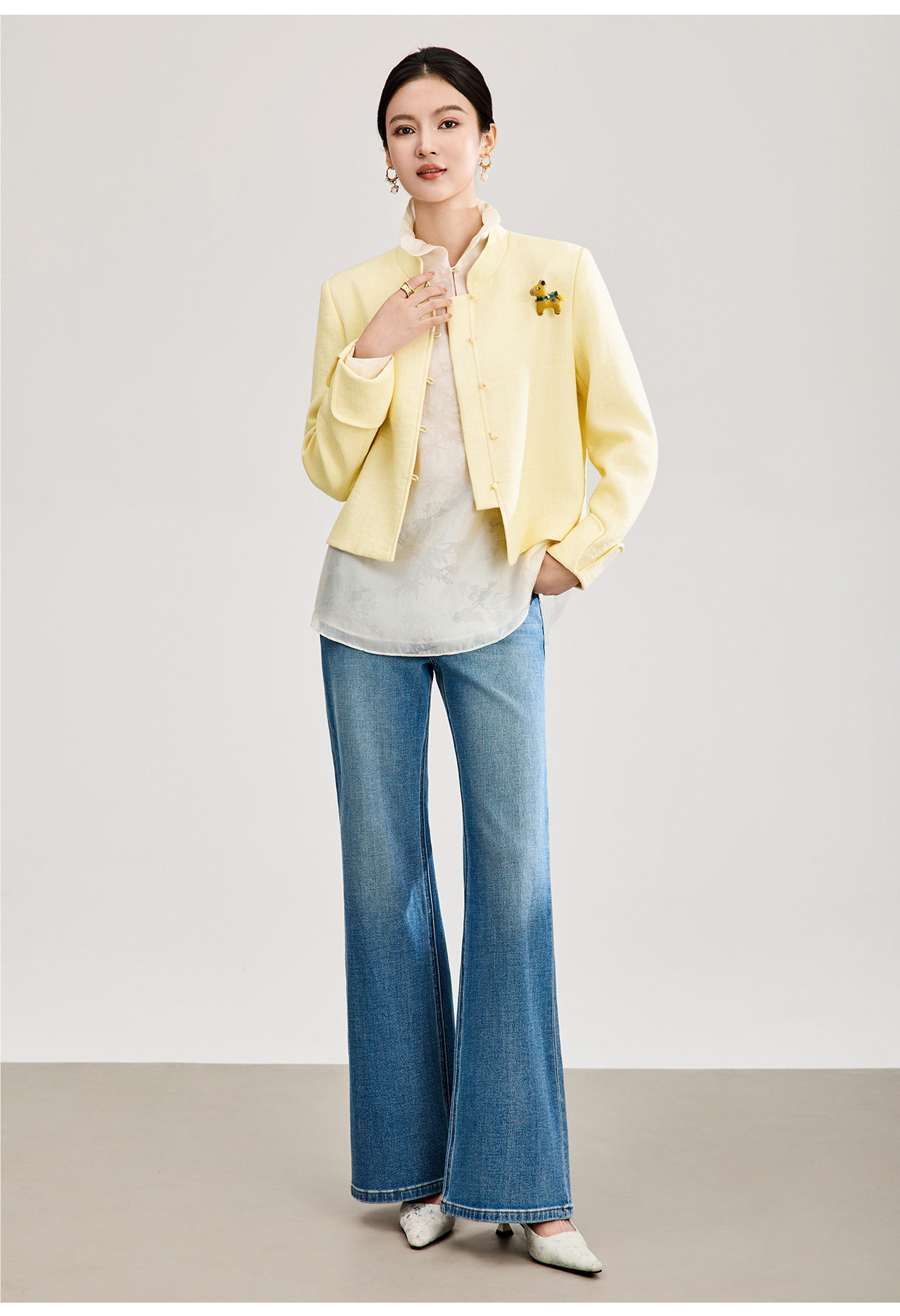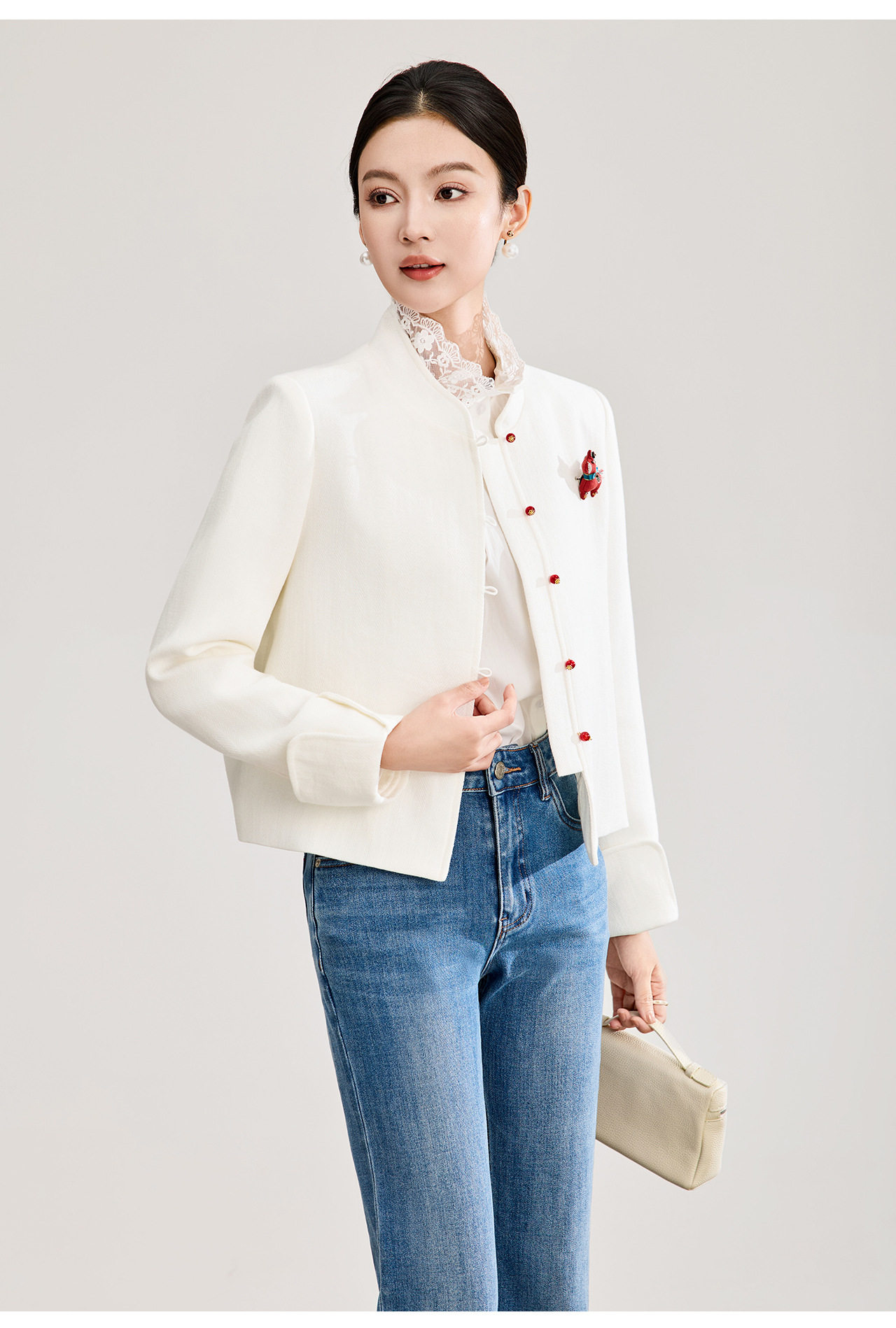 「高货wl」全新升级【铂金会员339/天猫459/差价120】(53807)洛诗琳气质人字纹立领外套2026春季国风小马胸针短外套