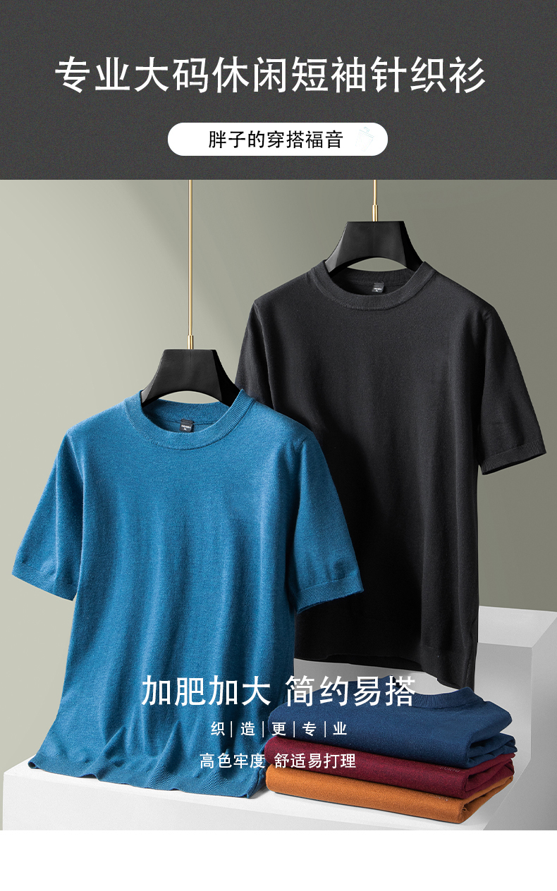 【新款DDS】大依优型大码男装圆领短袖毛衫线衣针织衫休闲加肥加大男士胖子大码内搭上衣毛衣