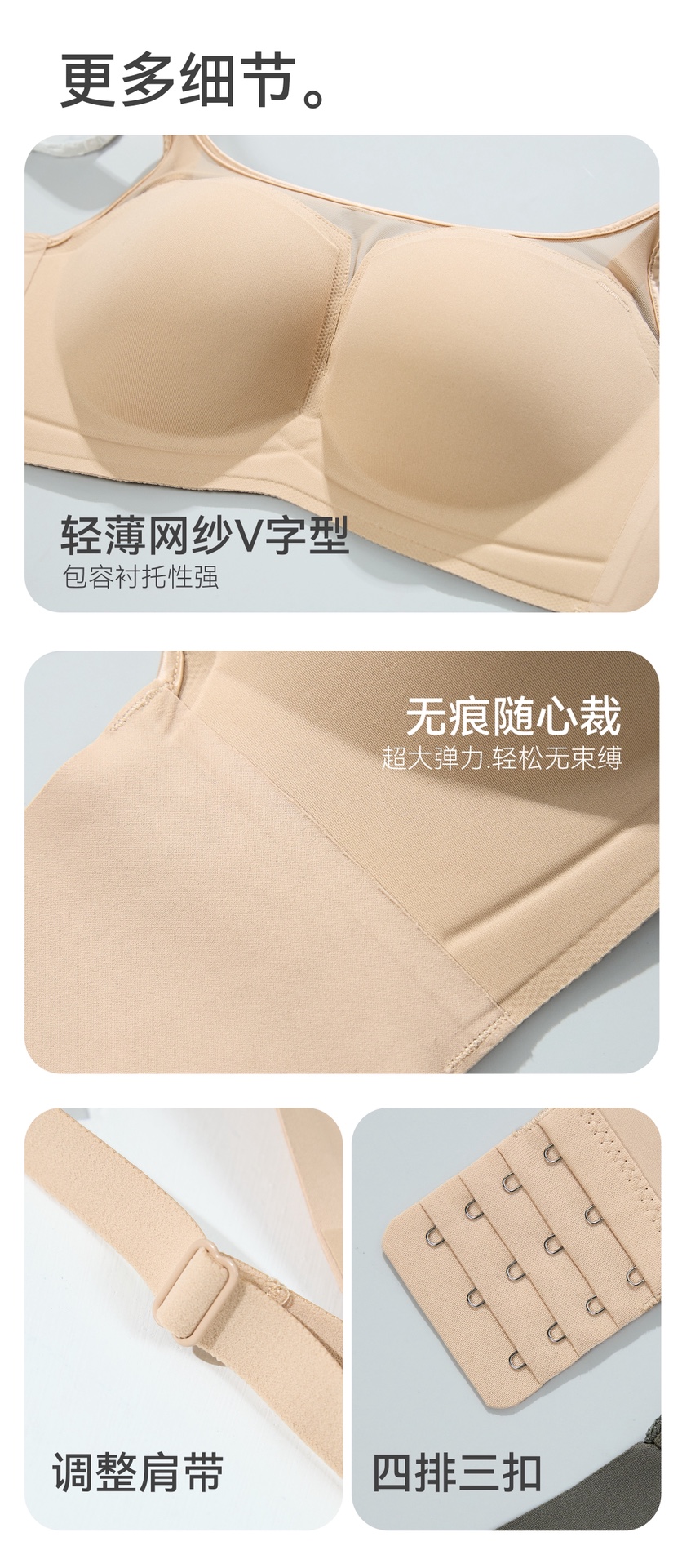 62 爱慕 家贴贴防走光聚拢收副乳无钢圈文胸到货!有颜有料,聚拢深沟甜甜饱满感!够立体!小胸一穿聚拢圆润!清透柔软,性感与肤感同频!轻薄网纱V型设计,勾勒精致颈肩线条!3D立体杯型,聚拢显大,罩杯光面无痕,穿衣隐形不尴尬!U型美背设计,舒适无痕解锁露背穿搭!加高侧收副乳 舒适不勒痕!防滑纹肩带:久穿不滑!大货3个色:黑色,粉底液肤,米灰白!大货3个码:34/75,36/80,38/85(特别说明:此款适合AB杯的小胸妹子,不适合CD杯)