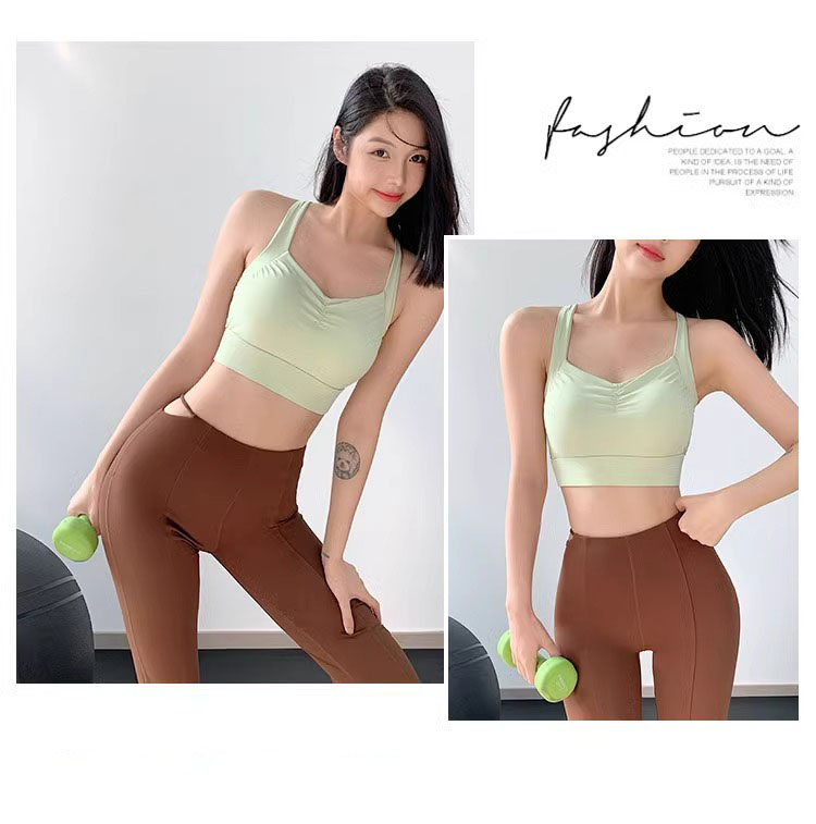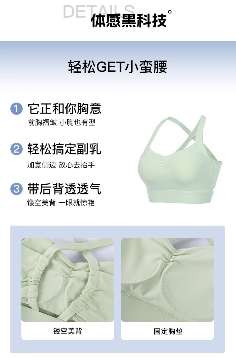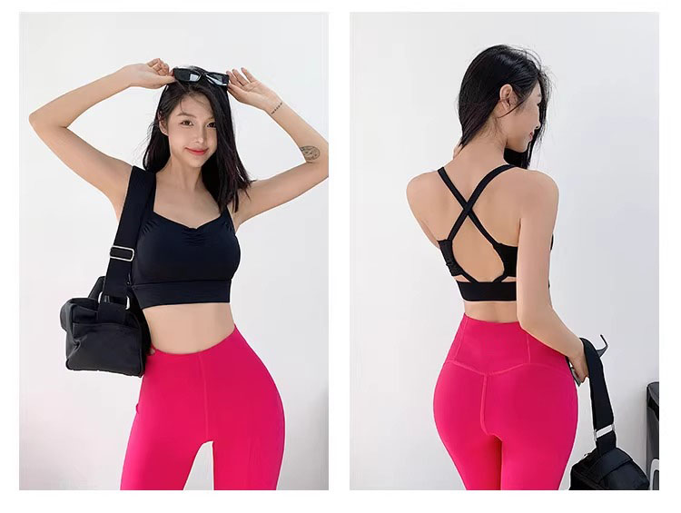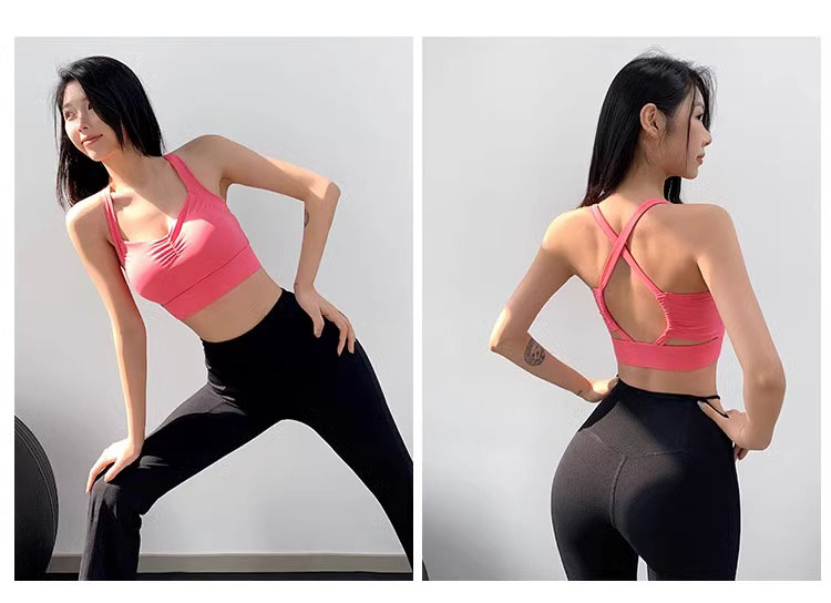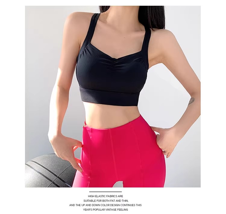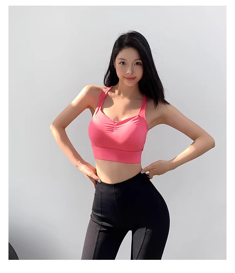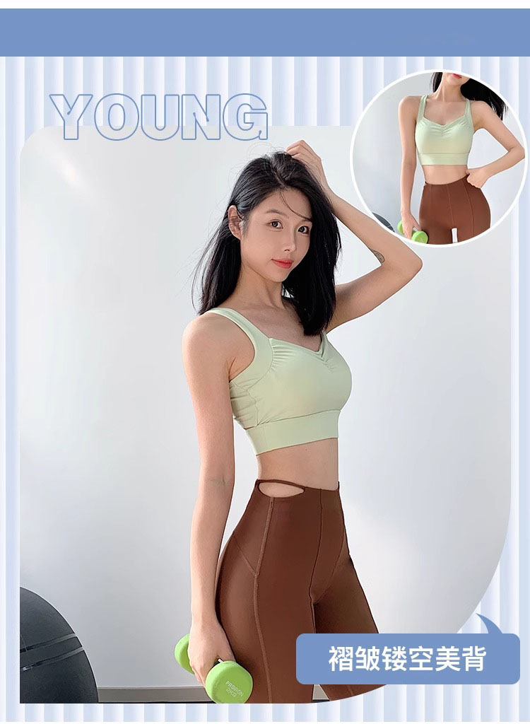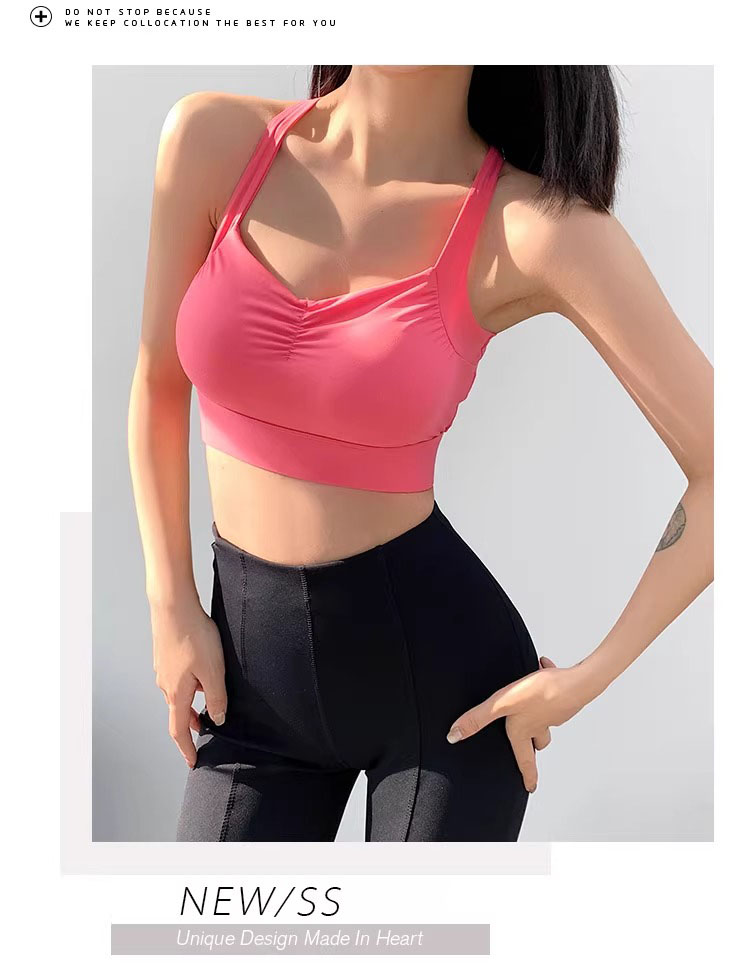 【限时秒】YOGACODE【火树银花系列】运动背心女带胸垫前胸抽褶聚拢蜜桃胸美背DWB115019