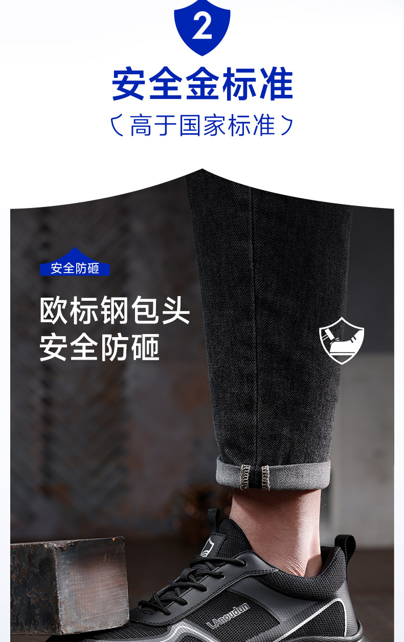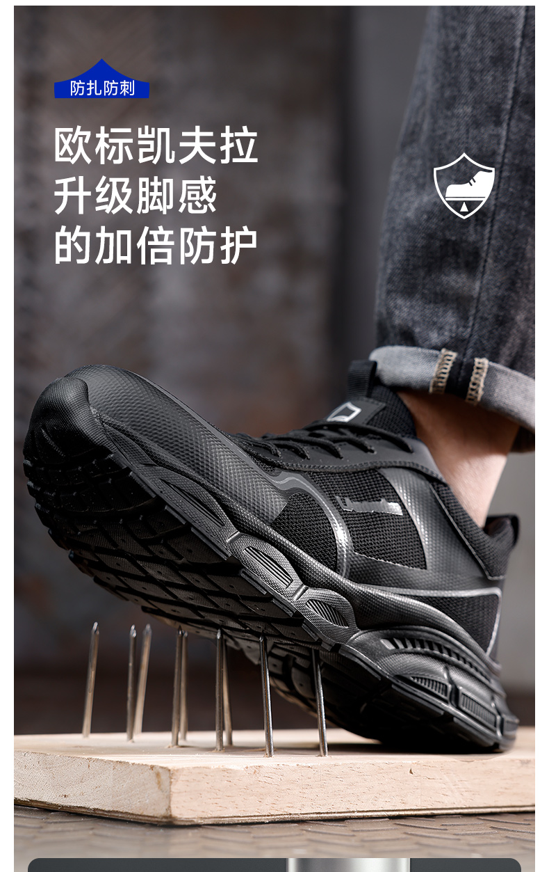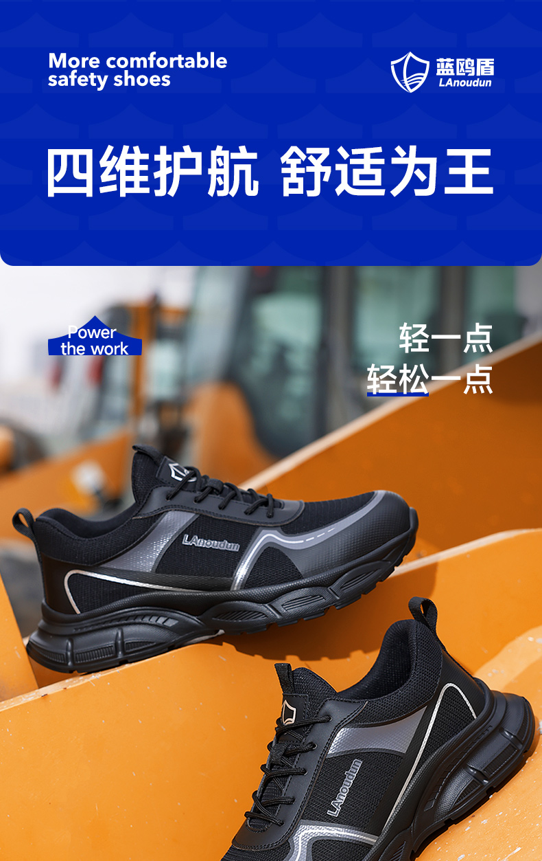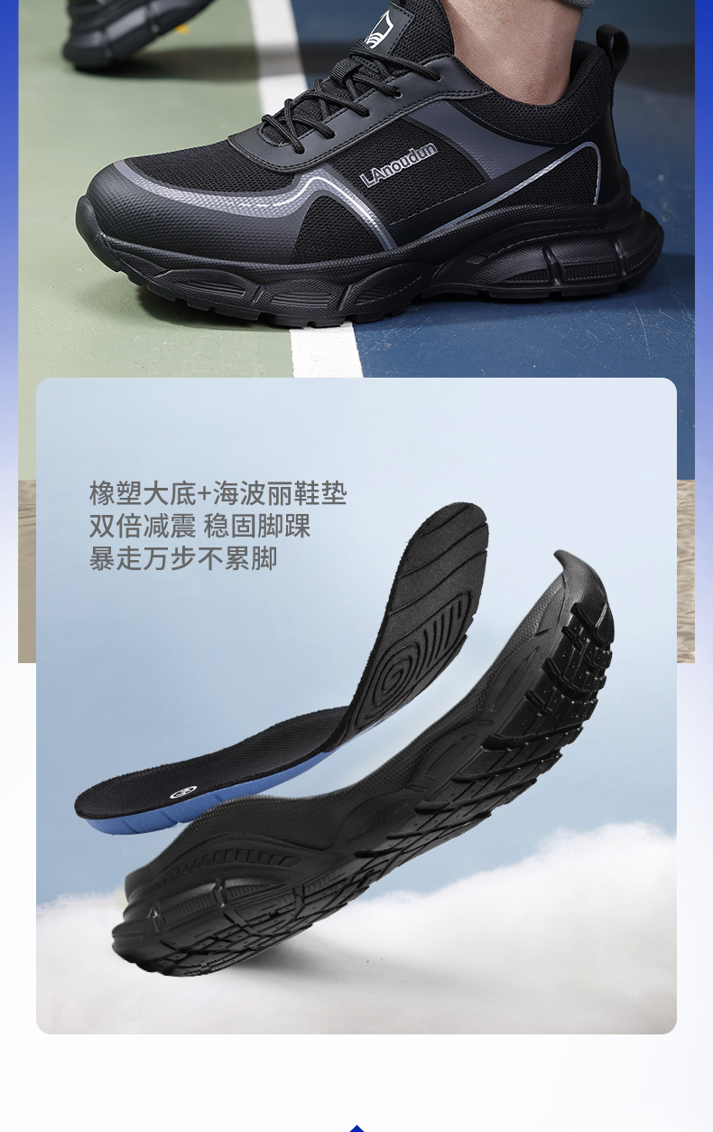 蓝鸥盾春季新品透气劳保鞋男防砸防刺网布工地安全鞋实心底耐磨抗造