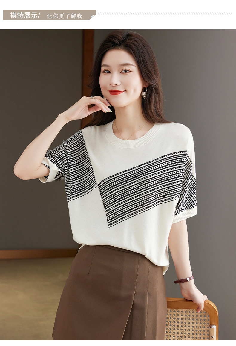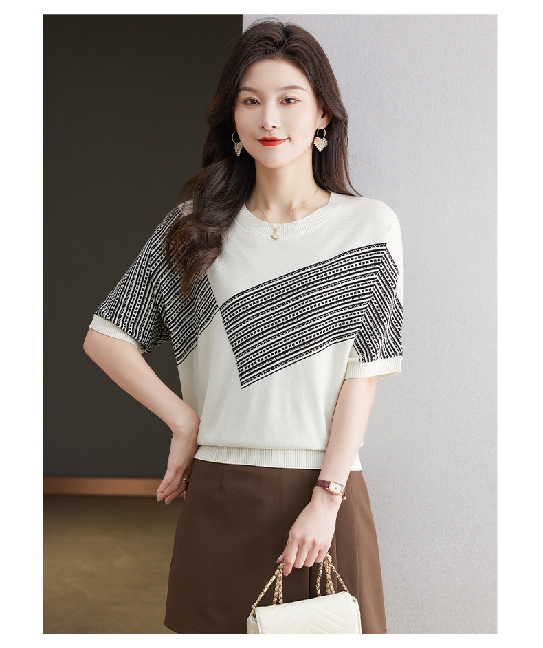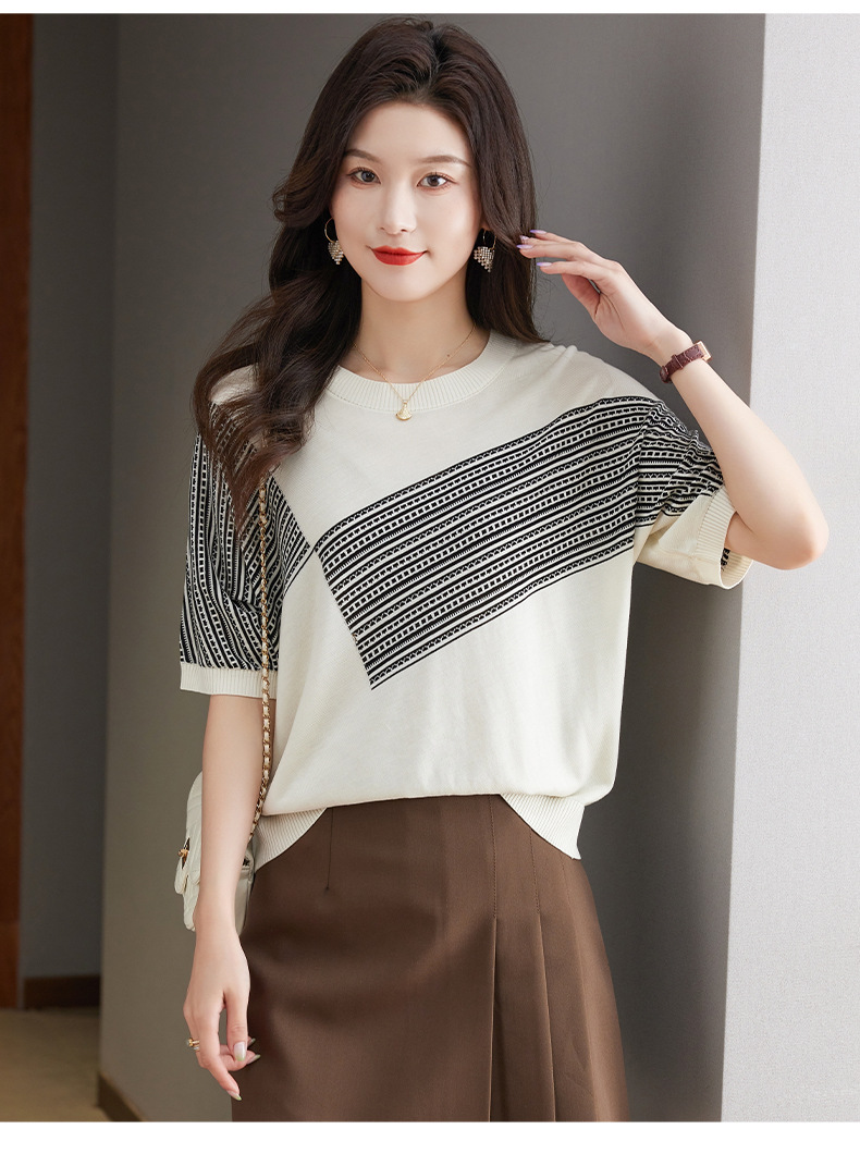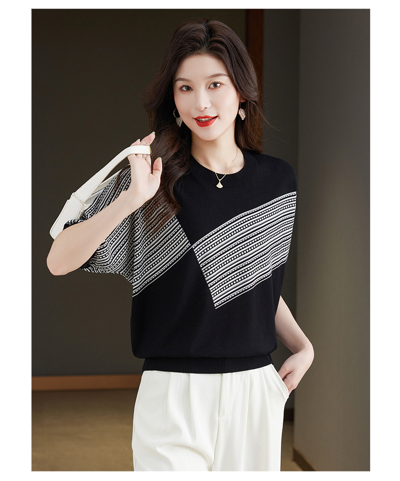 宽松短袖针织衫,圆领蝙蝠袖女上衣13-6859