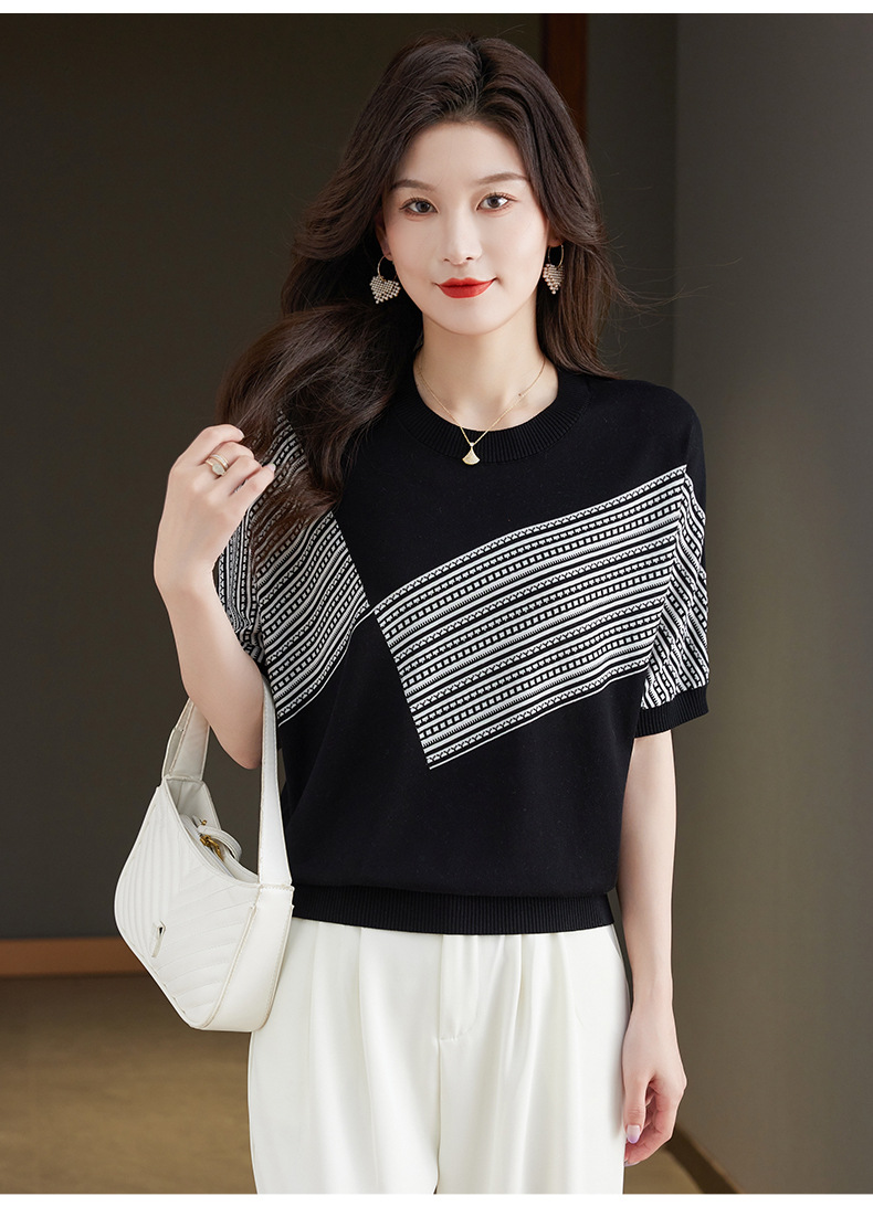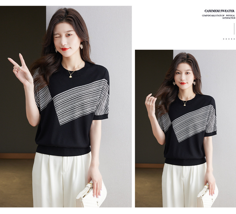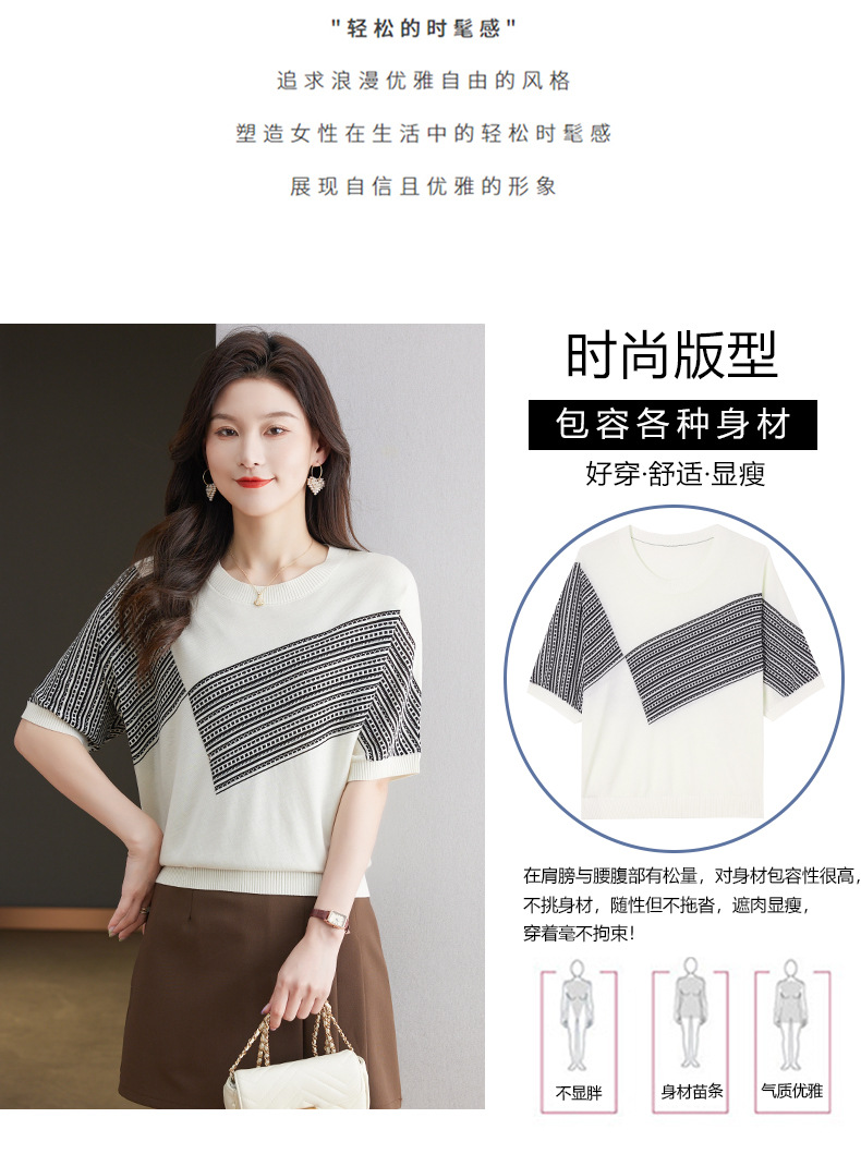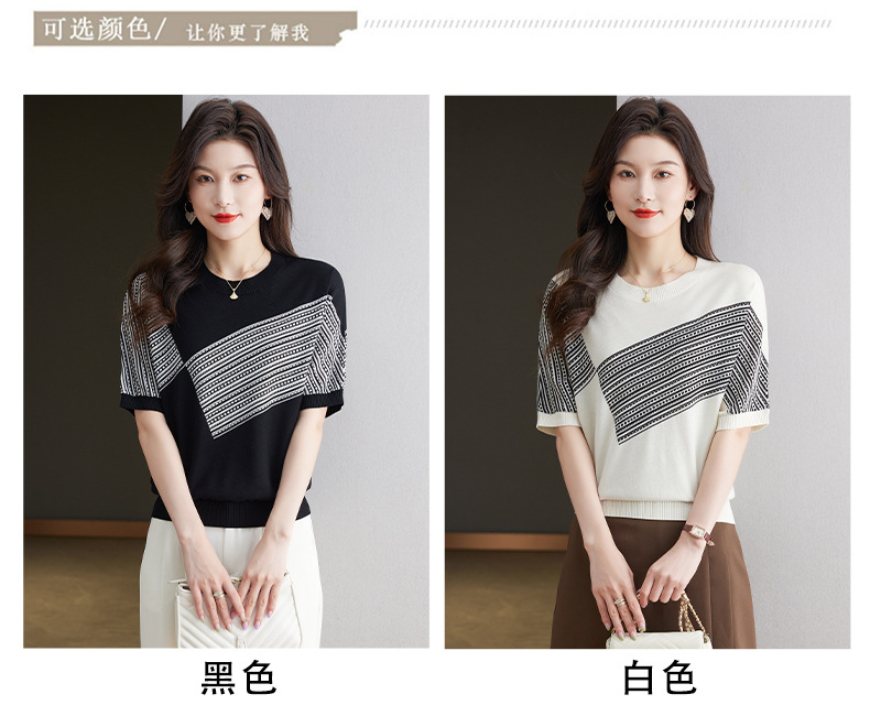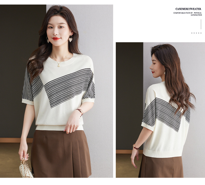 宽松短袖针织衫,圆领蝙蝠袖女上衣13-6859