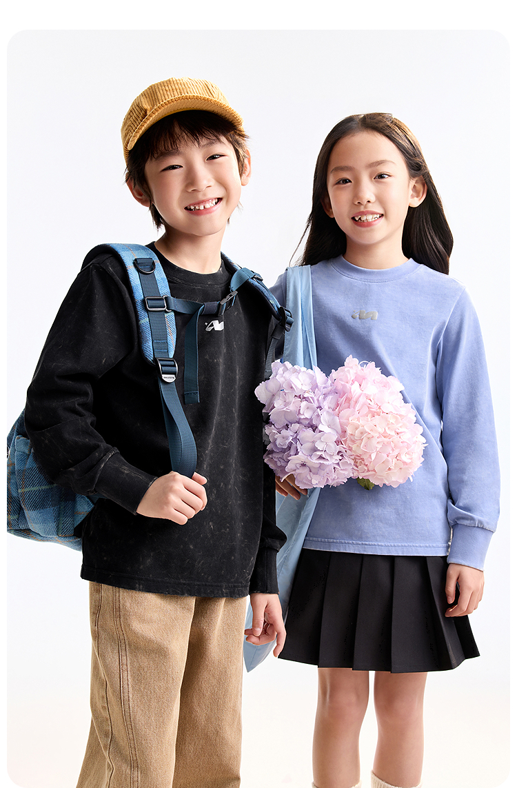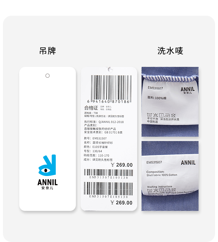 男女童圆领长袖针织衫秋季新款安奈儿童装EM531507