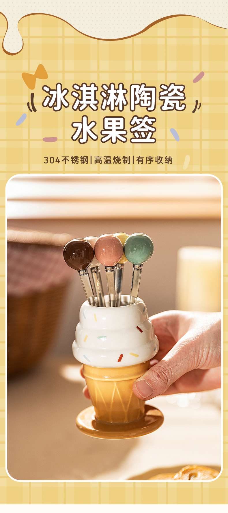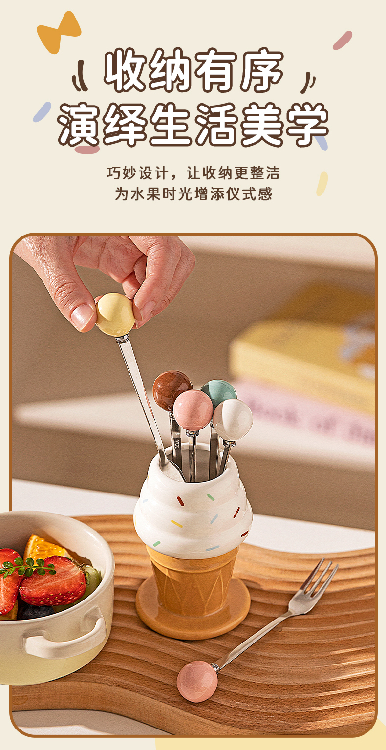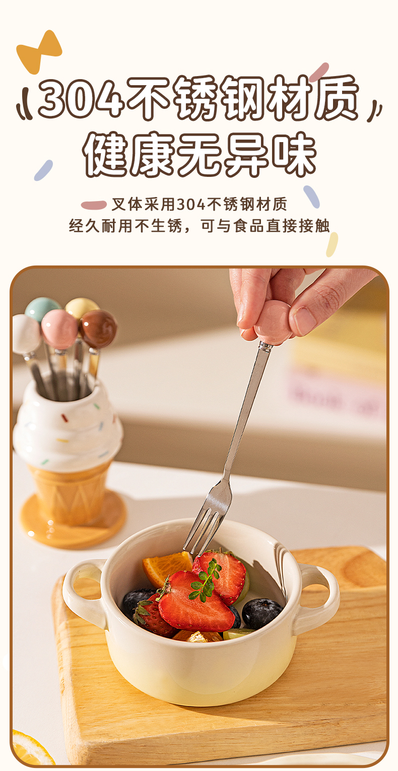 摩登主妇水果叉子套装家用儿童安全水果签收纳罐不锈钢甜品小叉子