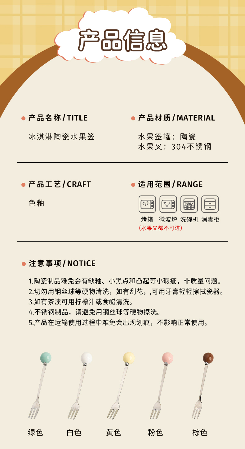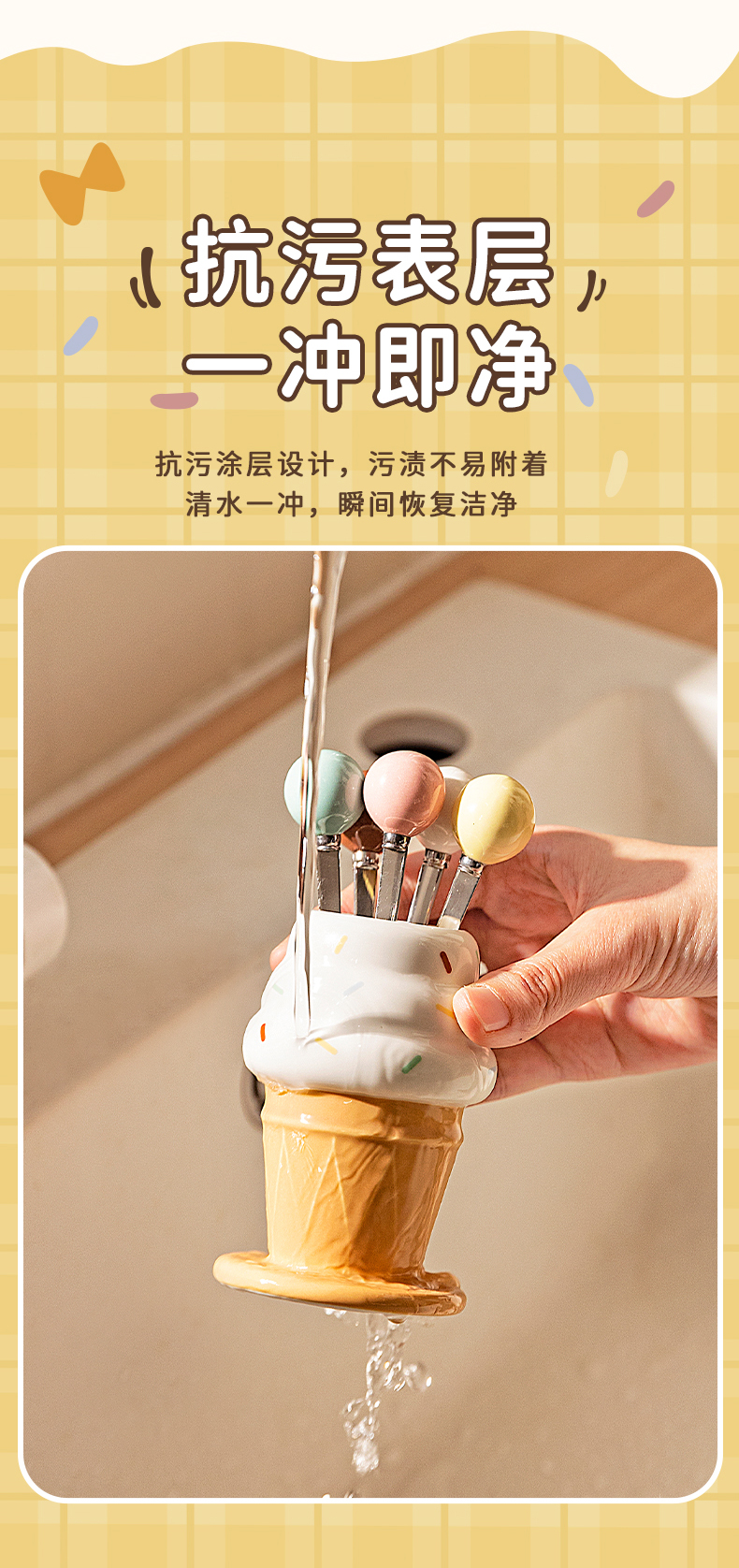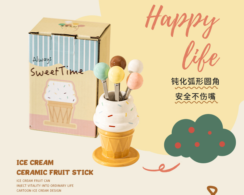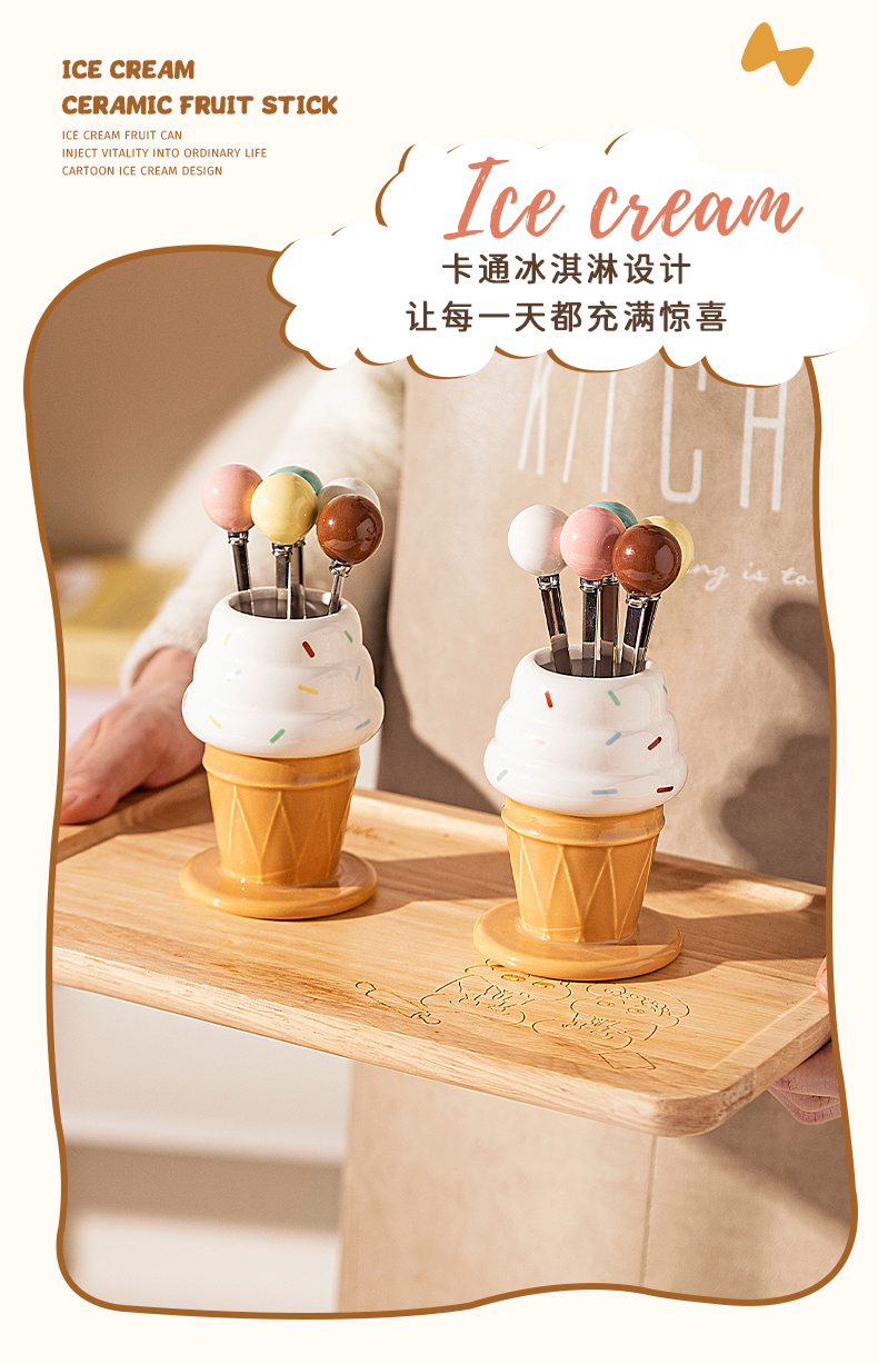 摩登主妇水果叉子套装家用儿童安全水果签收纳罐不锈钢甜品小叉子
