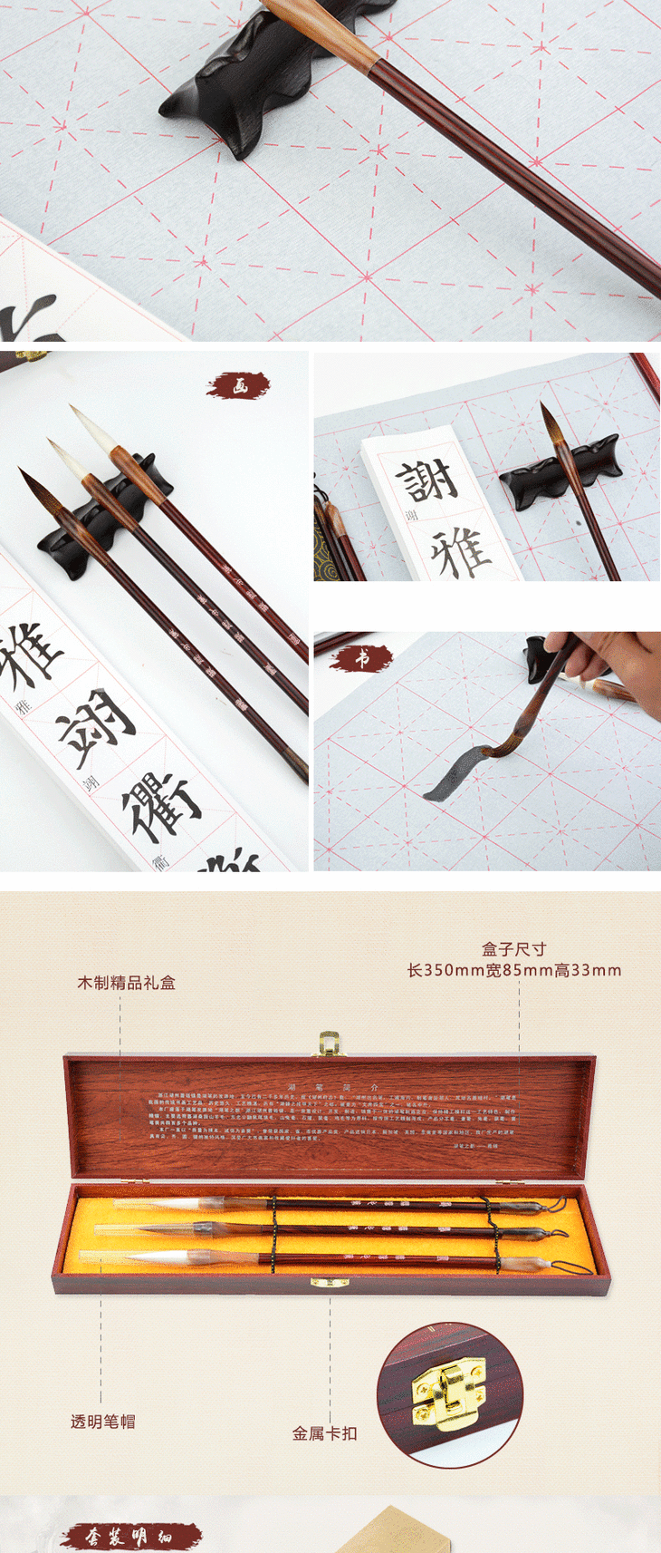 UNISUN善琏湖笔高档毛笔套装大中小楷三支装 三支装毛笔套装送水洗布+书画毡+水盘+100ml墨汁