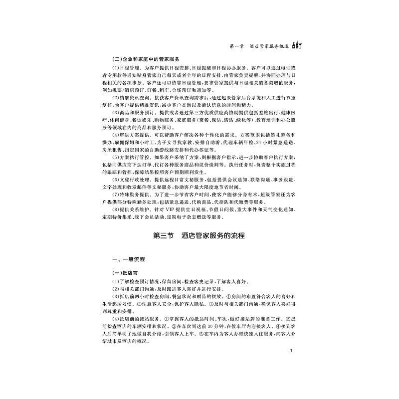 全书包括三个模块:模块一,酒店管家服务的基础知识,包括酒店管家服务起源与现状、酒店管家服务的实质、酒店管家服务的标准、 酒店管家服务的行为准则;模块二,酒店管家的气质塑造,包括形象塑造、有效沟通、性格养成;模块三,酒店管家的服务技能,包括礼宾服务技能、房间整理技能、衣物护理技能、康乐服务技能、名品鉴赏技能、宴会专项技能、私人管家服务、急救专项技能、投诉处理技能。