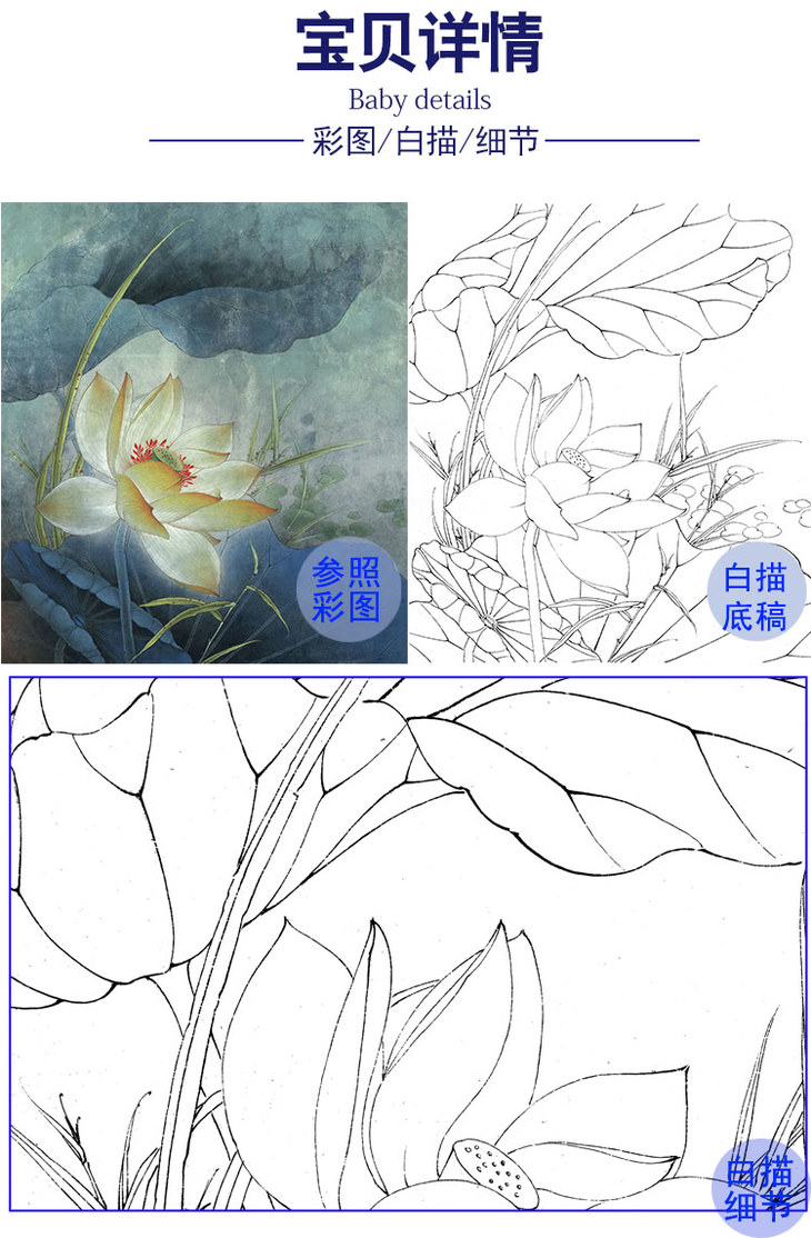 李晓明工笔花鸟白描底稿-荷香雅韵系列小品之六-荷花斗方小品册页-K100