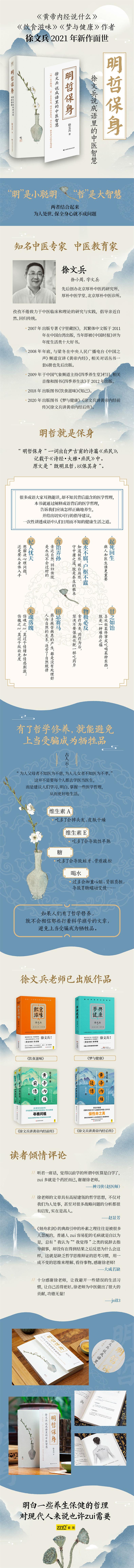 在本书中,徐文兵老师通过讲解成语故事蕴含的医学哲理,让人“明哲保身”——“明”是小聪明,“哲”是大智慧,两者结合起来为人处事,养生就不成问题。