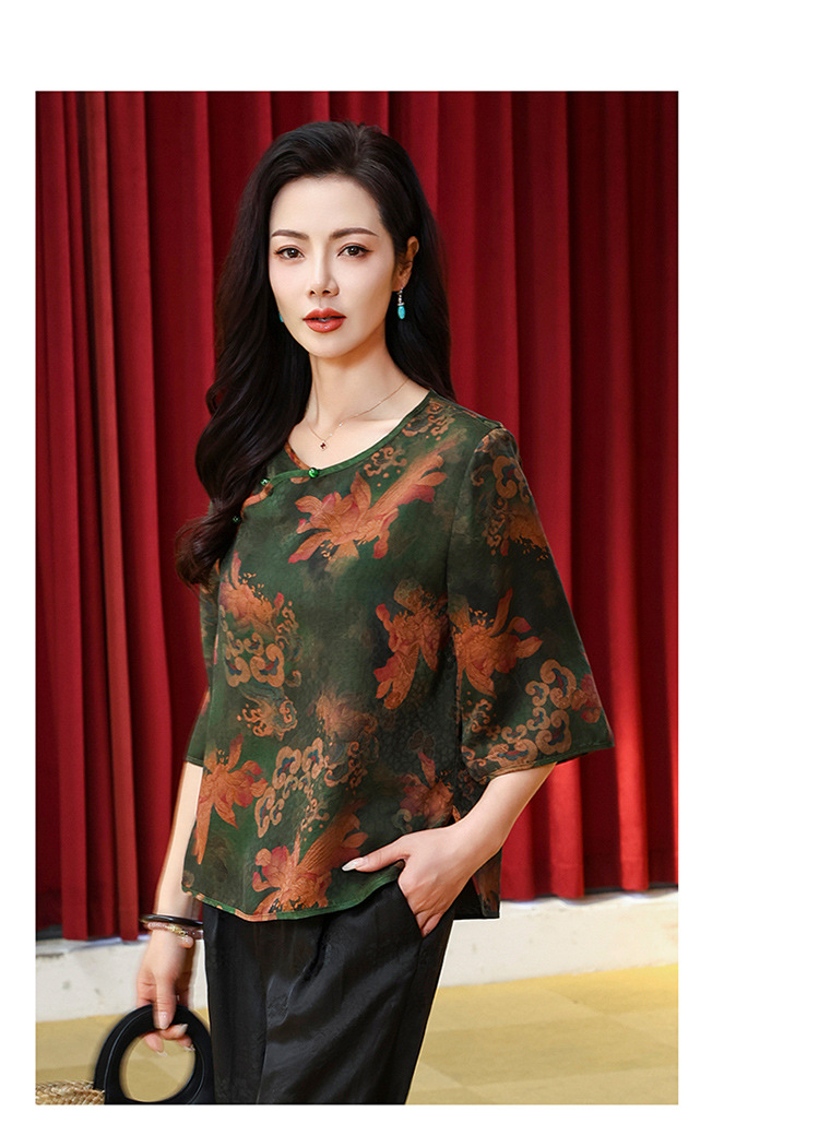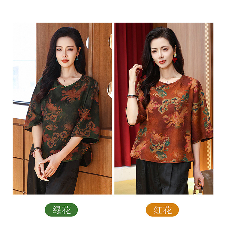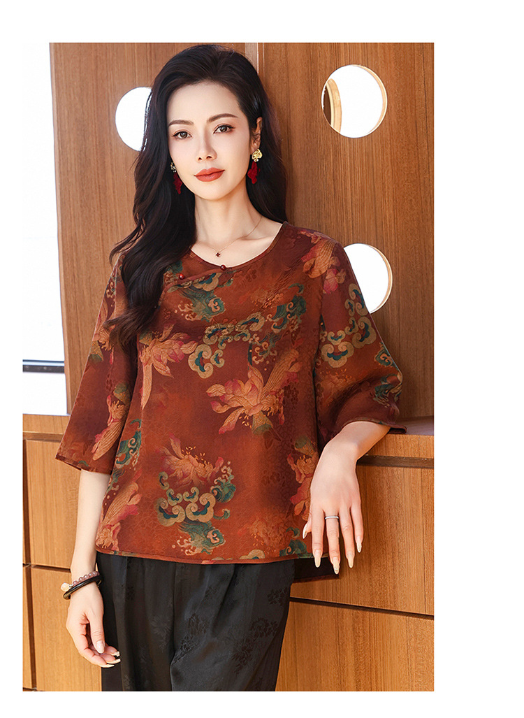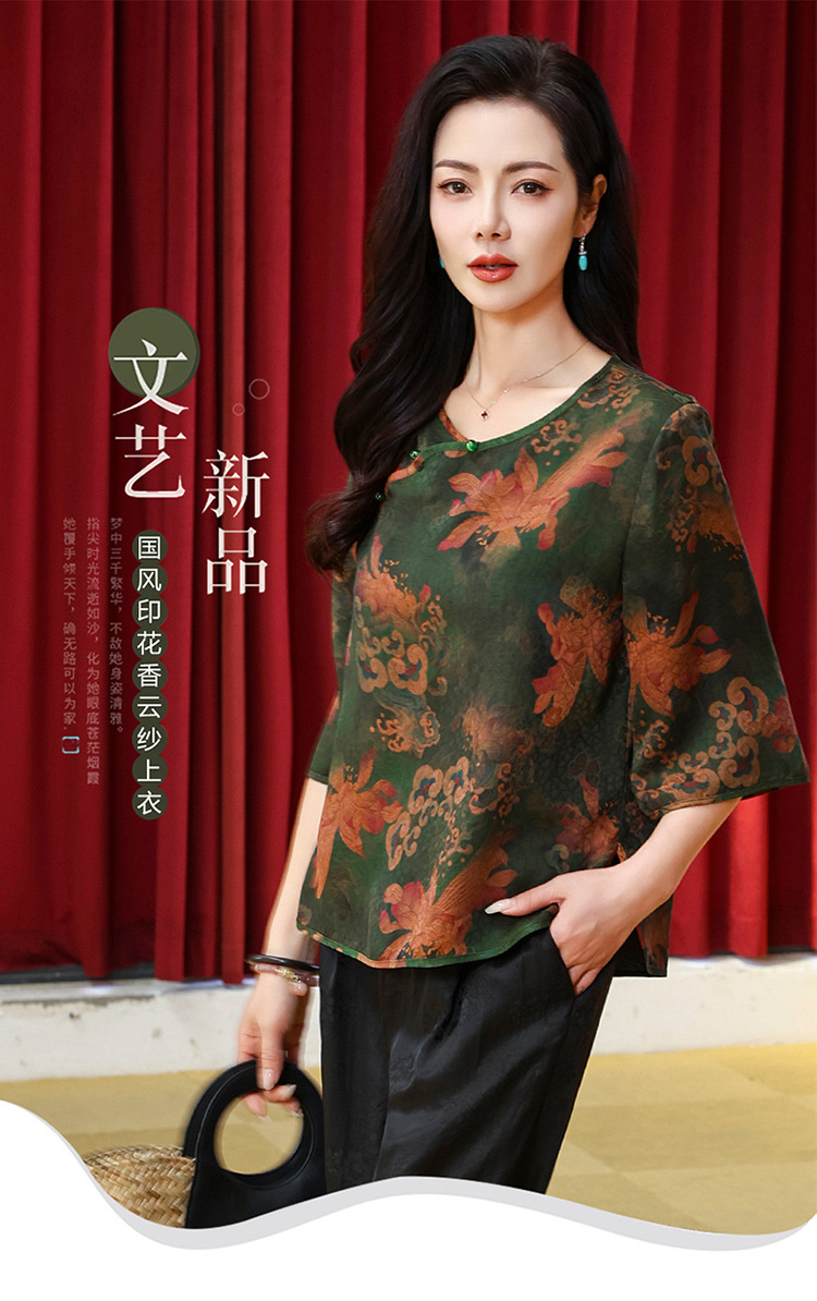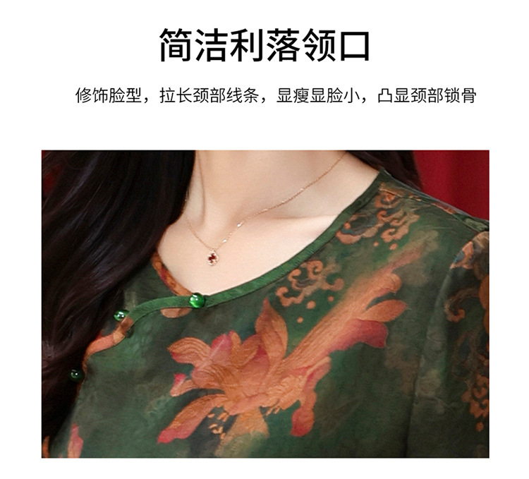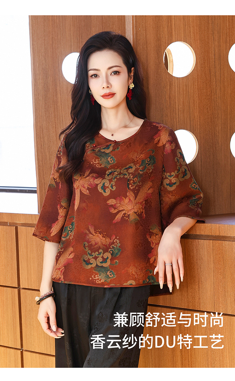 LS-LX2806高端花罗香云纱上衣女2025新款中式大码洋气桑蚕丝真丝衬衫