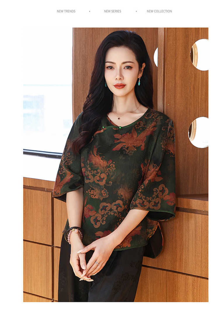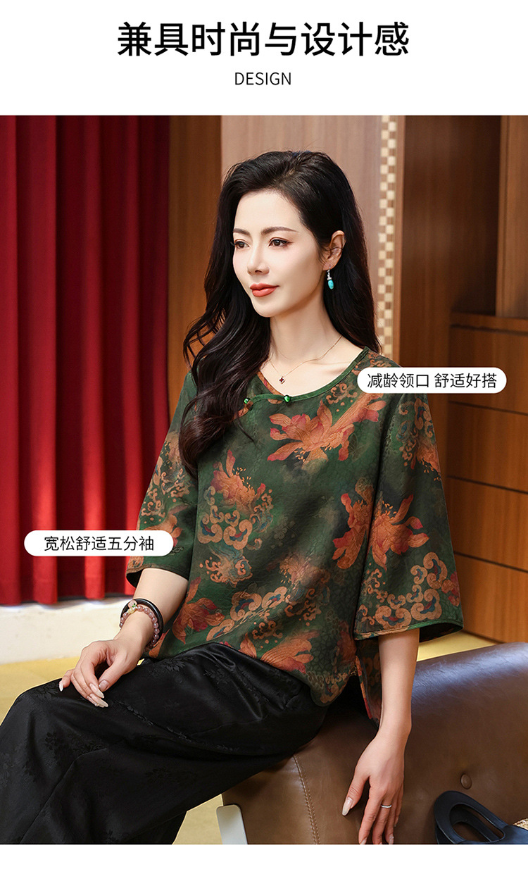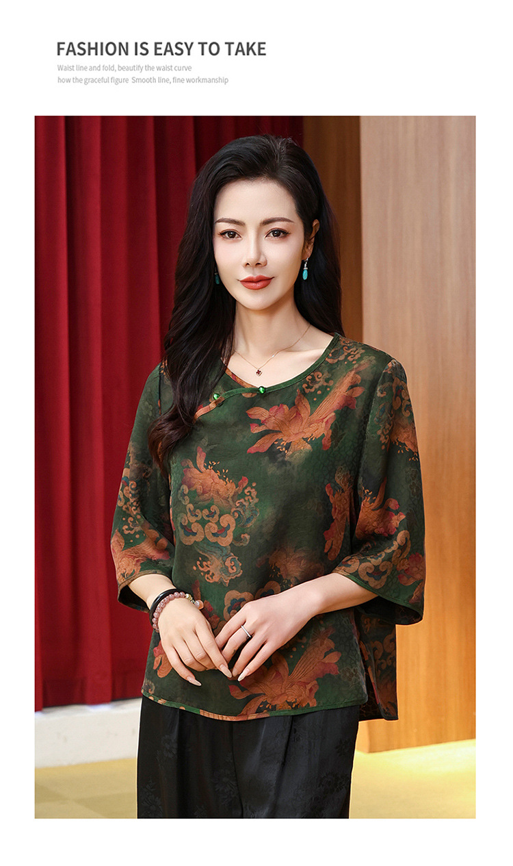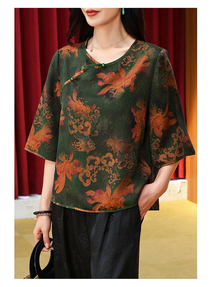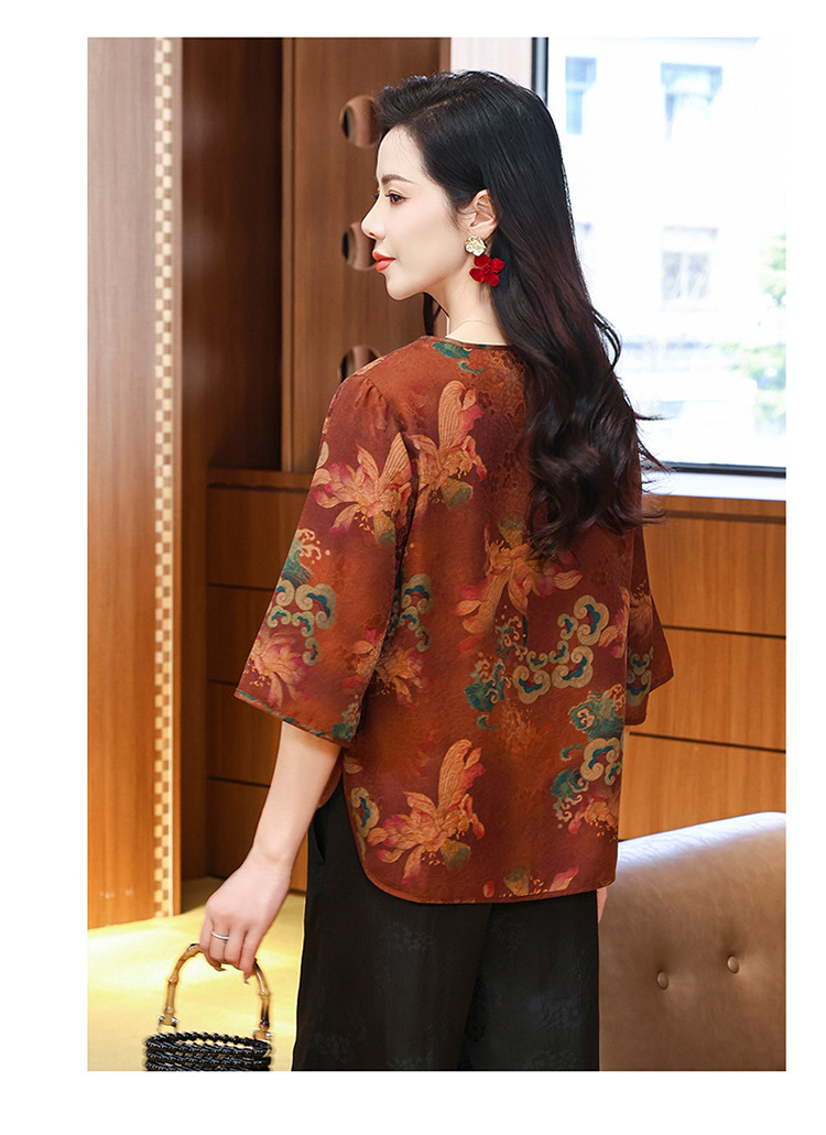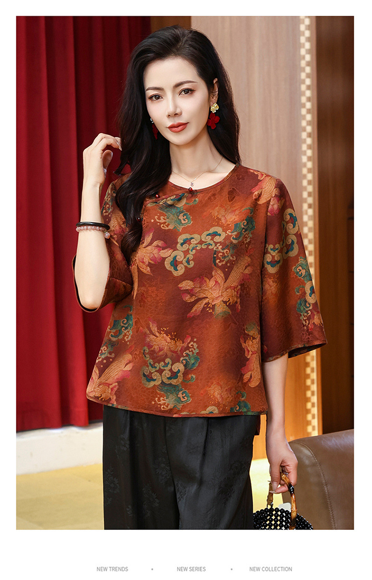 LS-LX2806高端花罗香云纱上衣女2025新款中式大码洋气桑蚕丝真丝衬衫