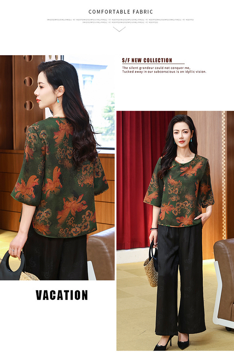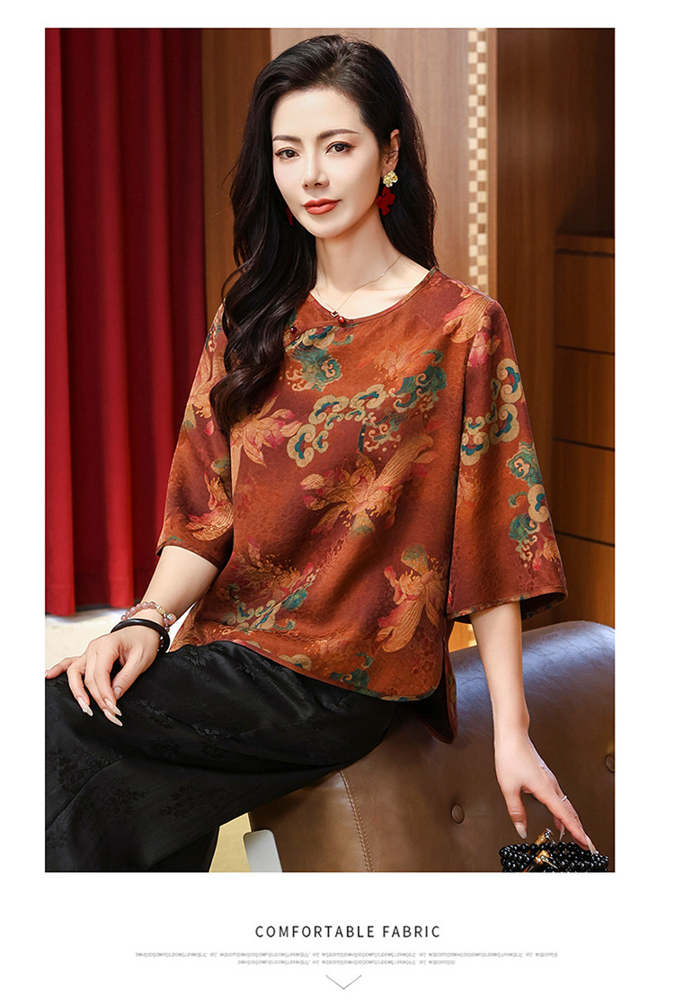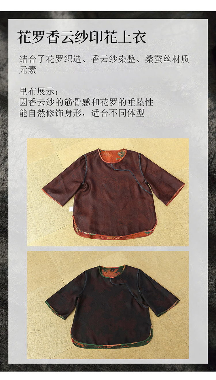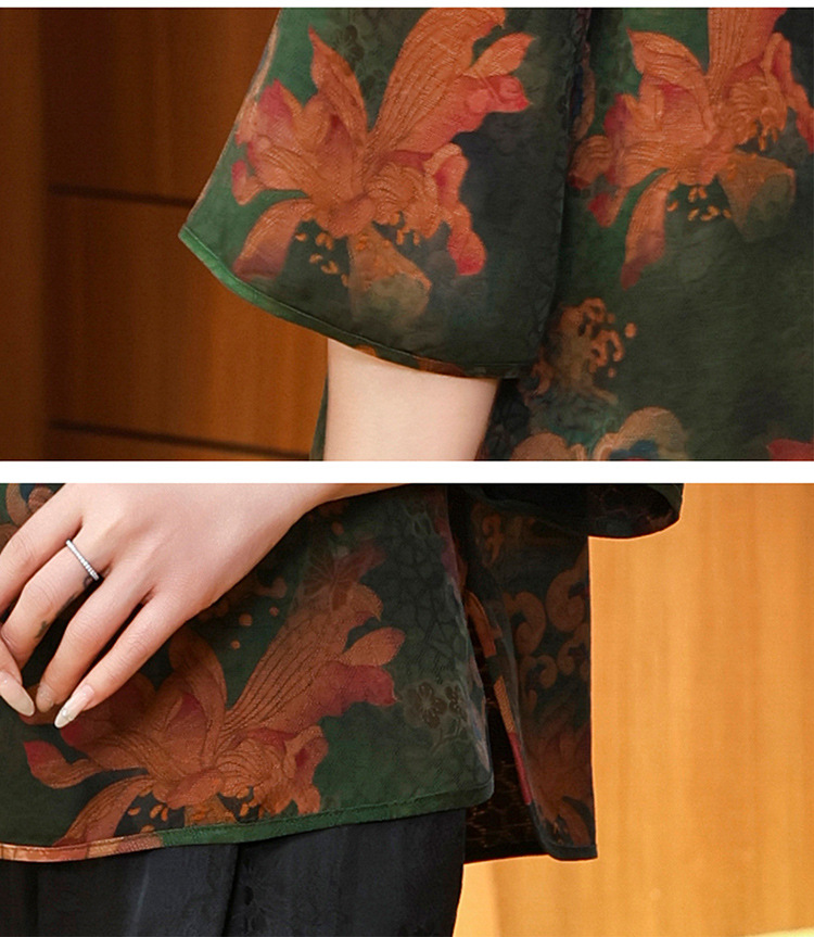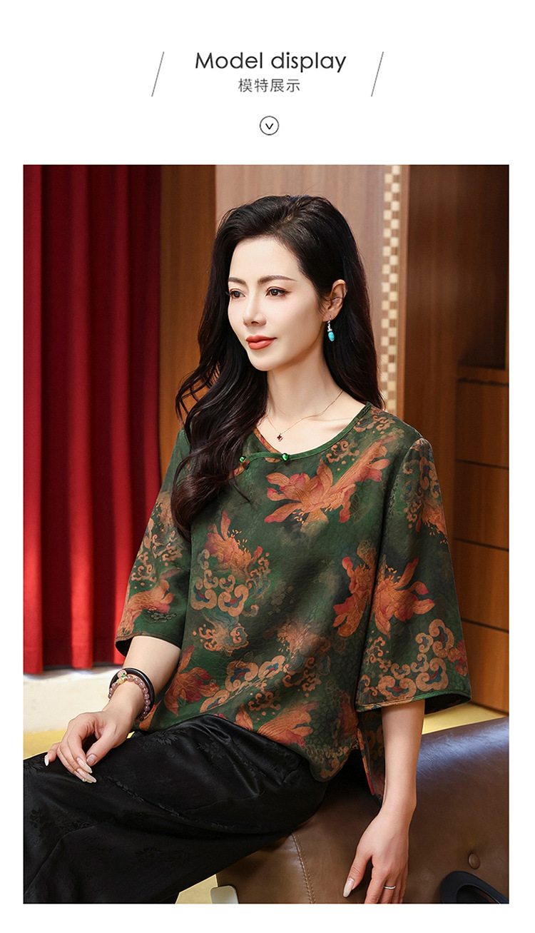 LS-LX2806高端花罗香云纱上衣女2025新款中式大码洋气桑蚕丝真丝衬衫