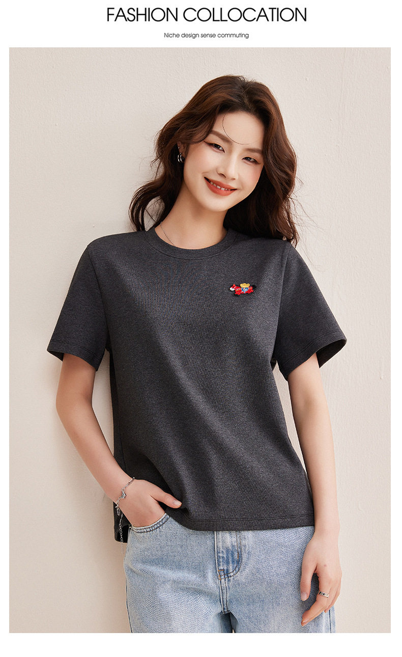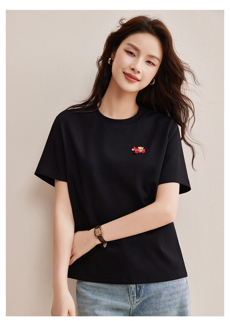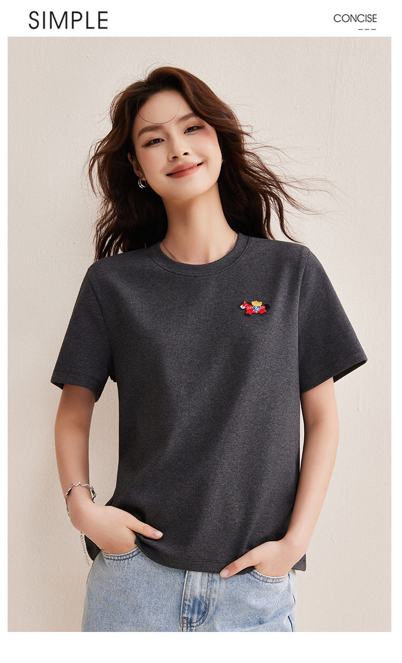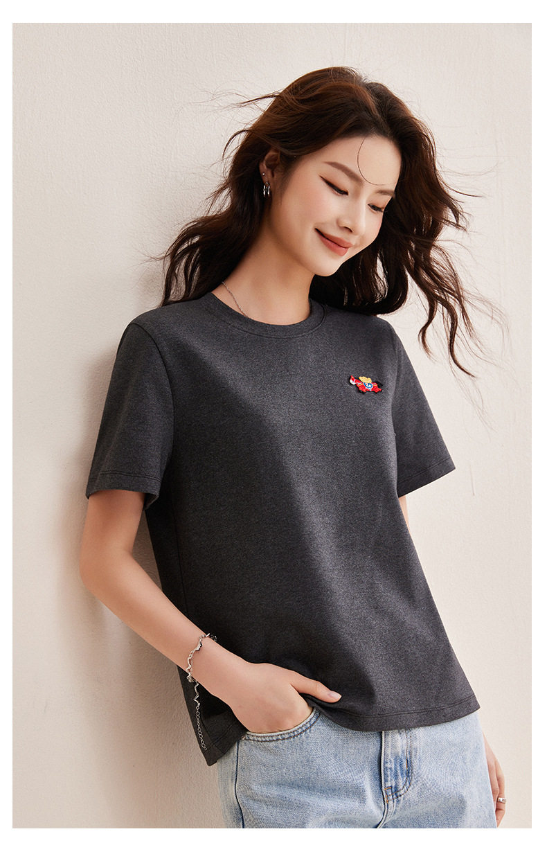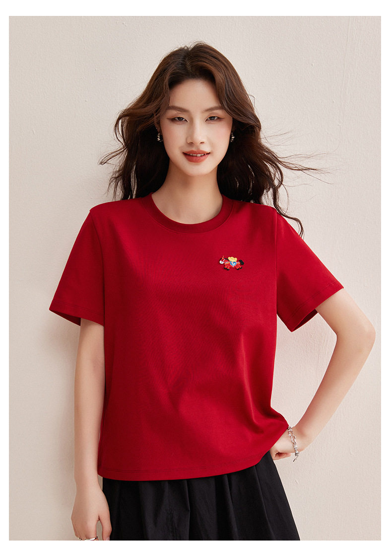 「自j」全新升级【铂金会员109/天猫149/差价40】(03955)洛诗琳小马刺绣纯棉短袖2026春季新款百搭正肩通勤T恤女