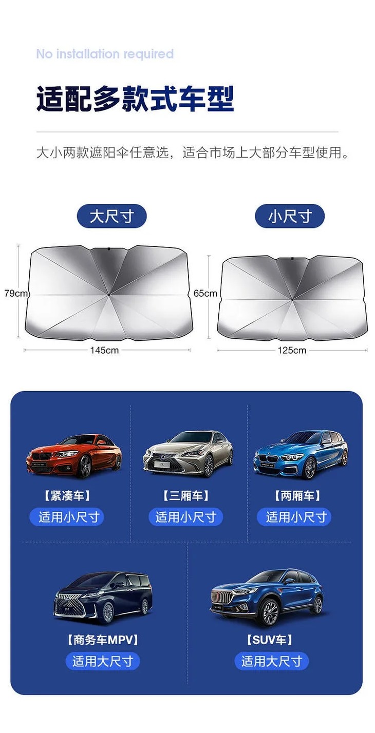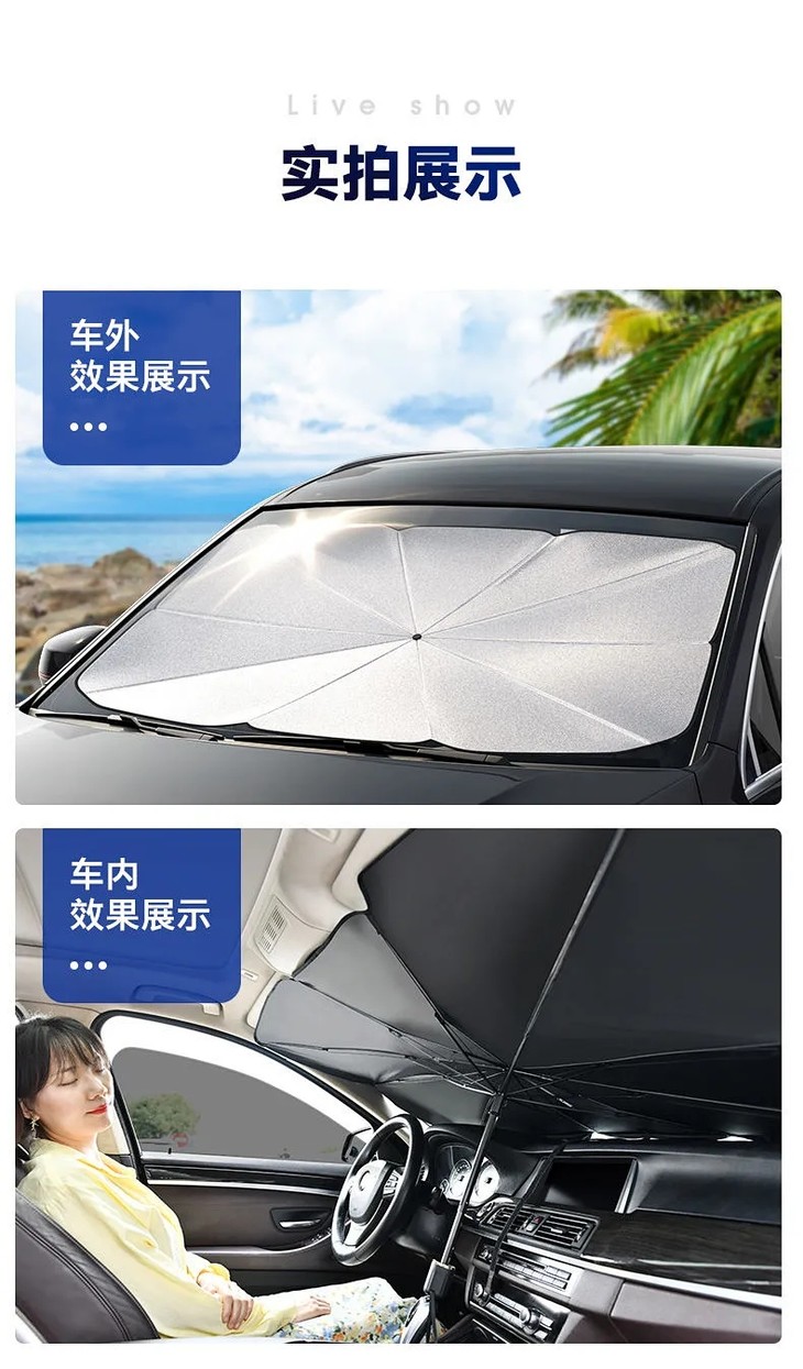 【防晒隔热免安装,零透光汽车遮阳伞】汽车遮阳伞遮阳挡光板,伸缩防晒隔热降温前挡风玻璃车内遮阳雨伞